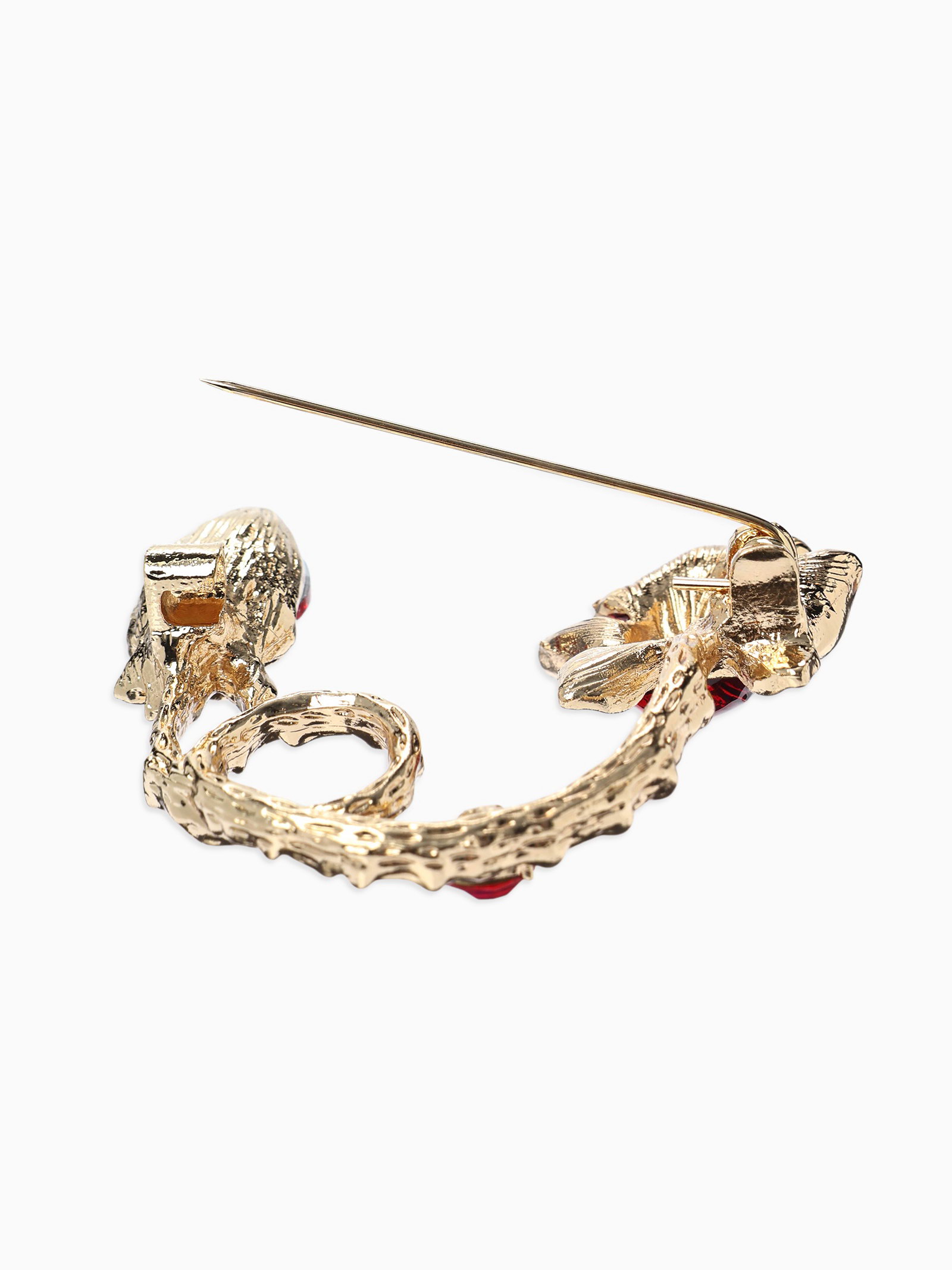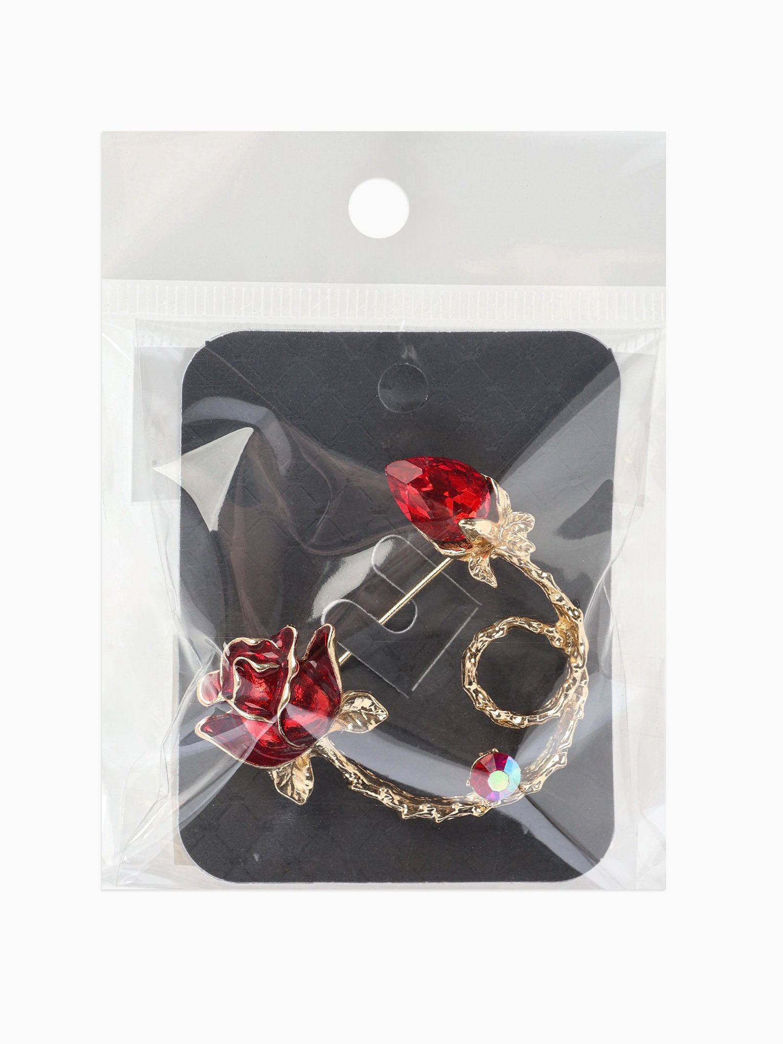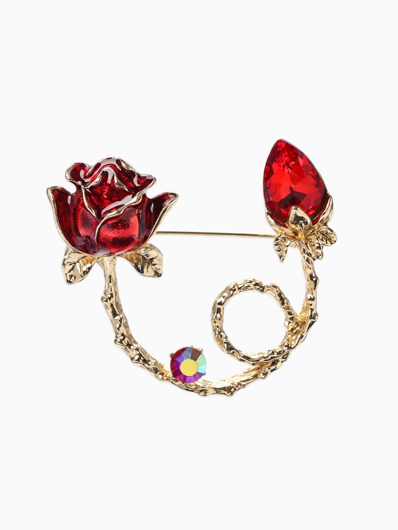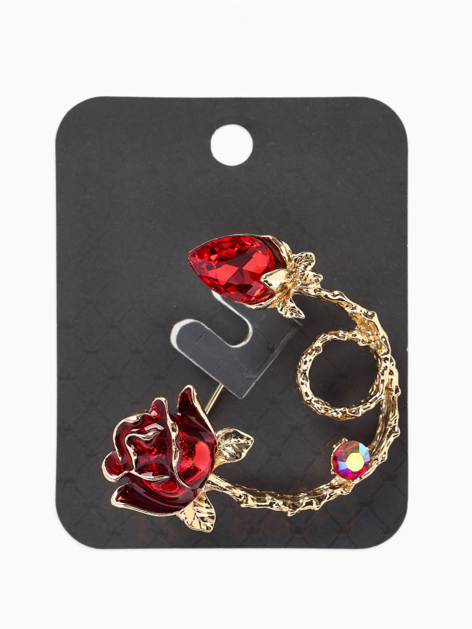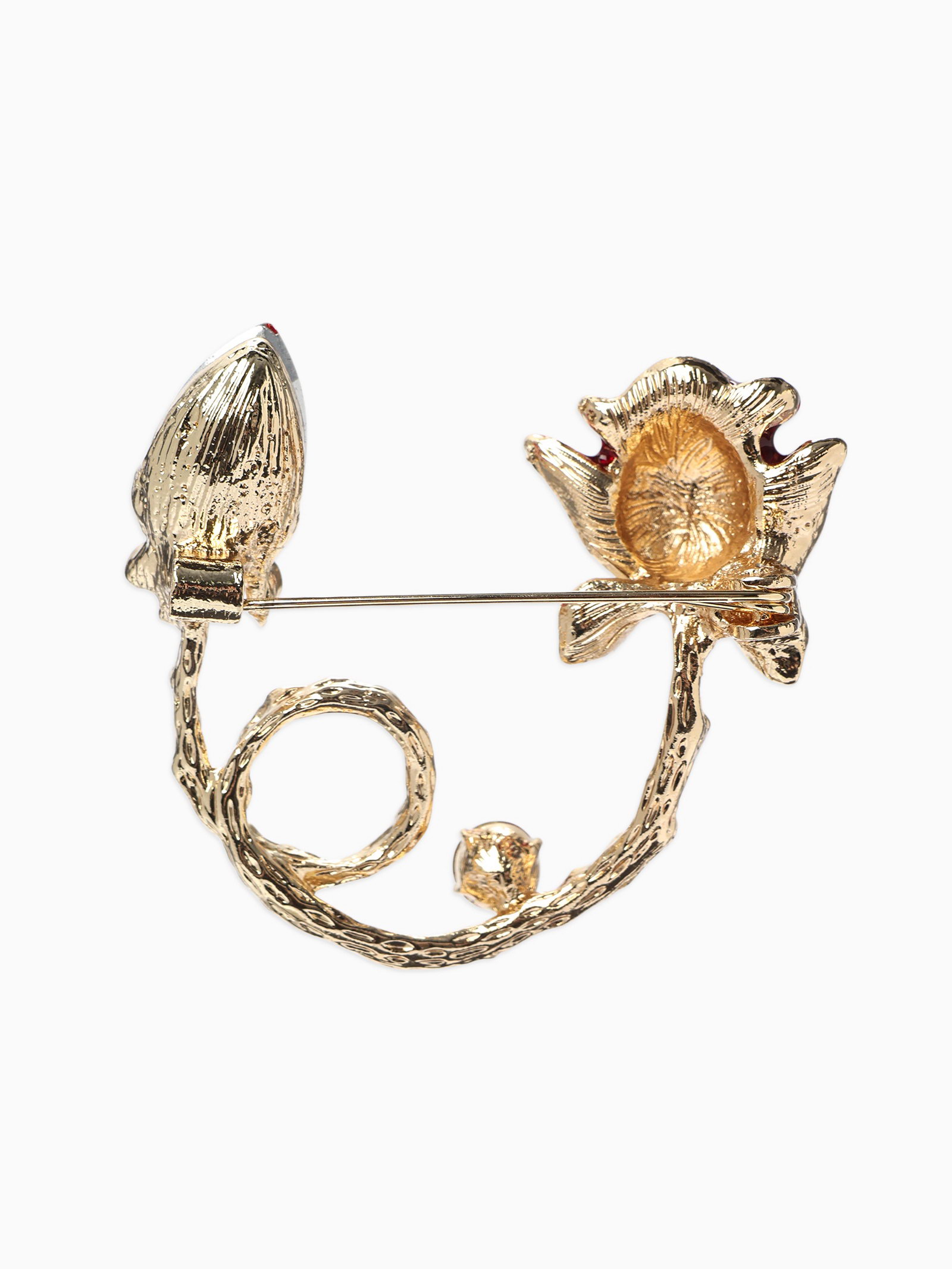 Брошь "Цветок бутон розы", красная в золоте, 5x4.5x0.5 см., QF, Китай