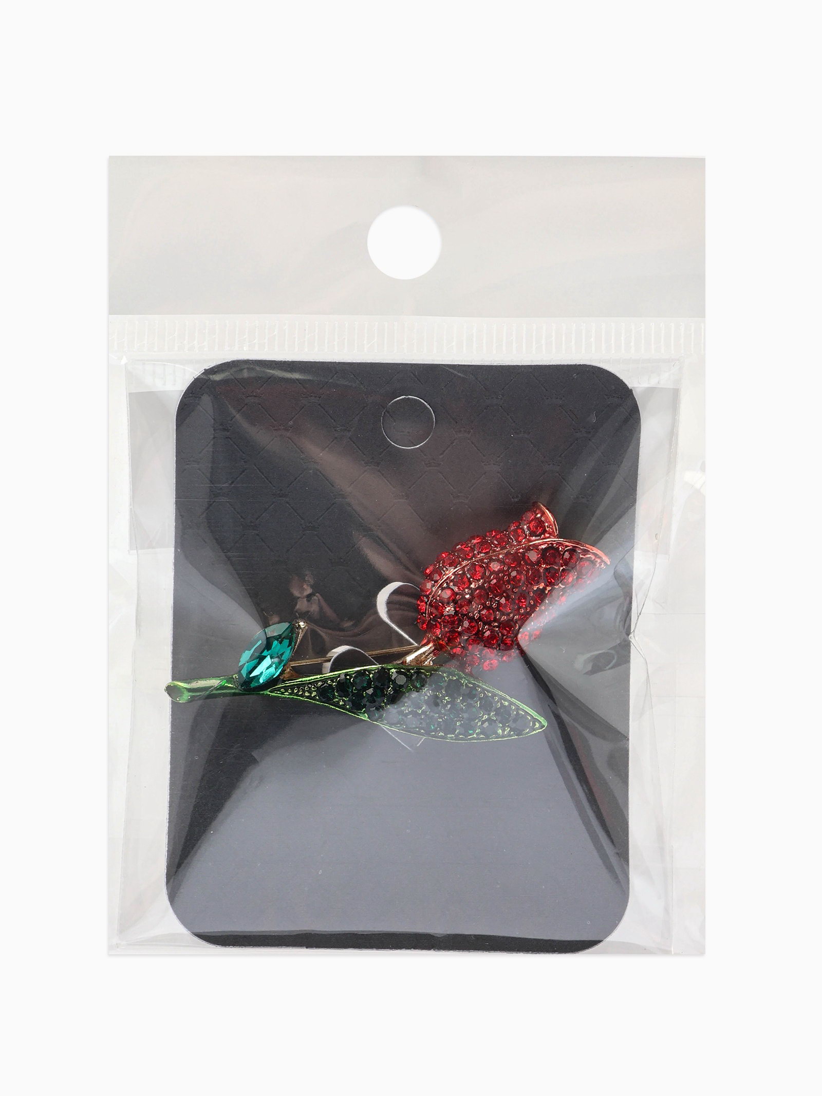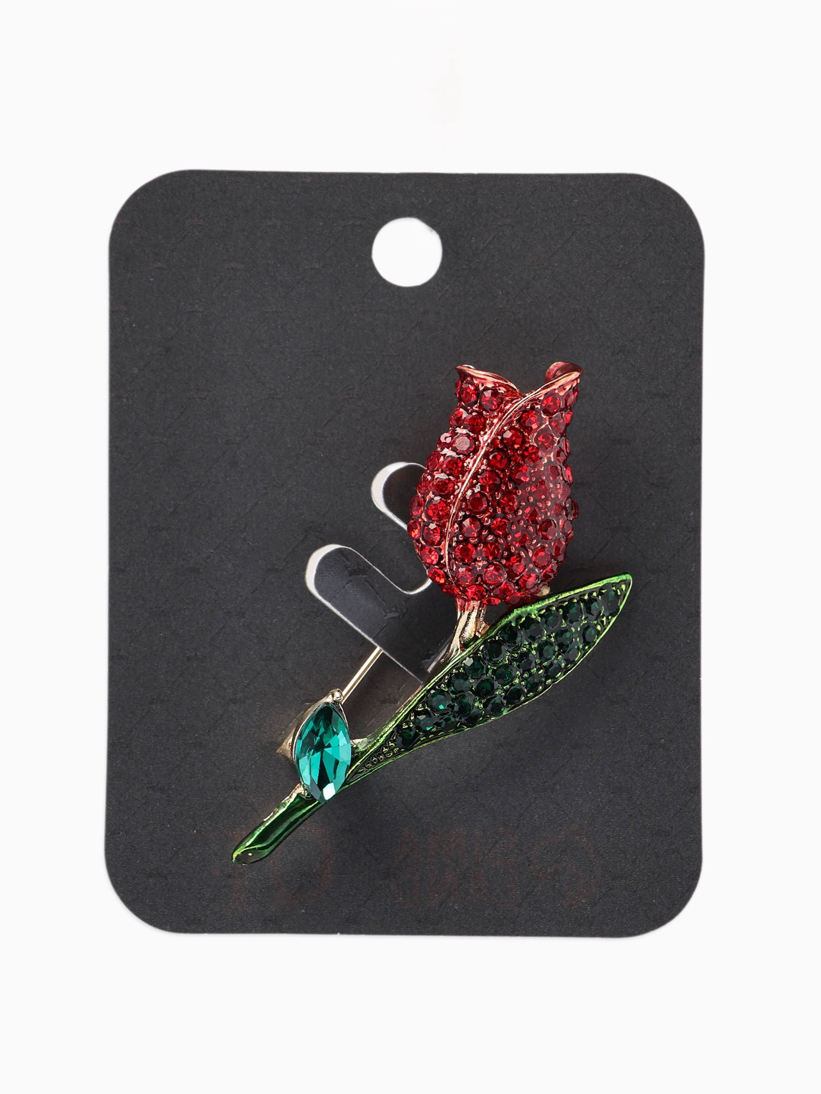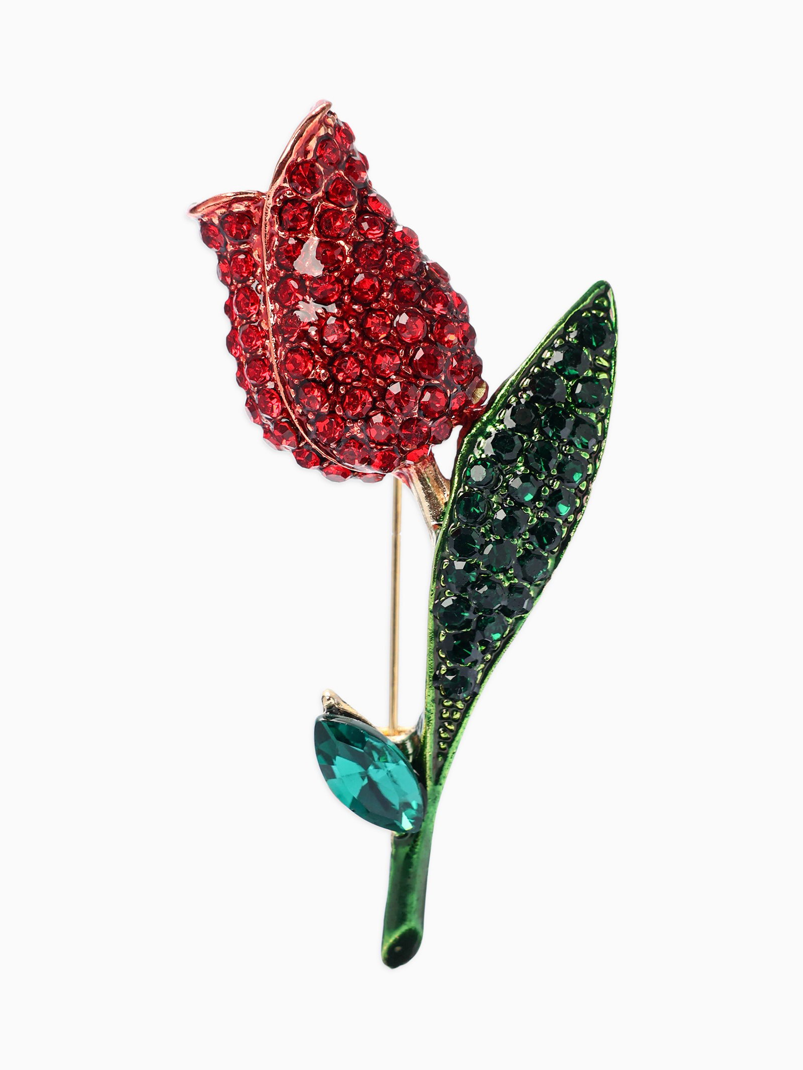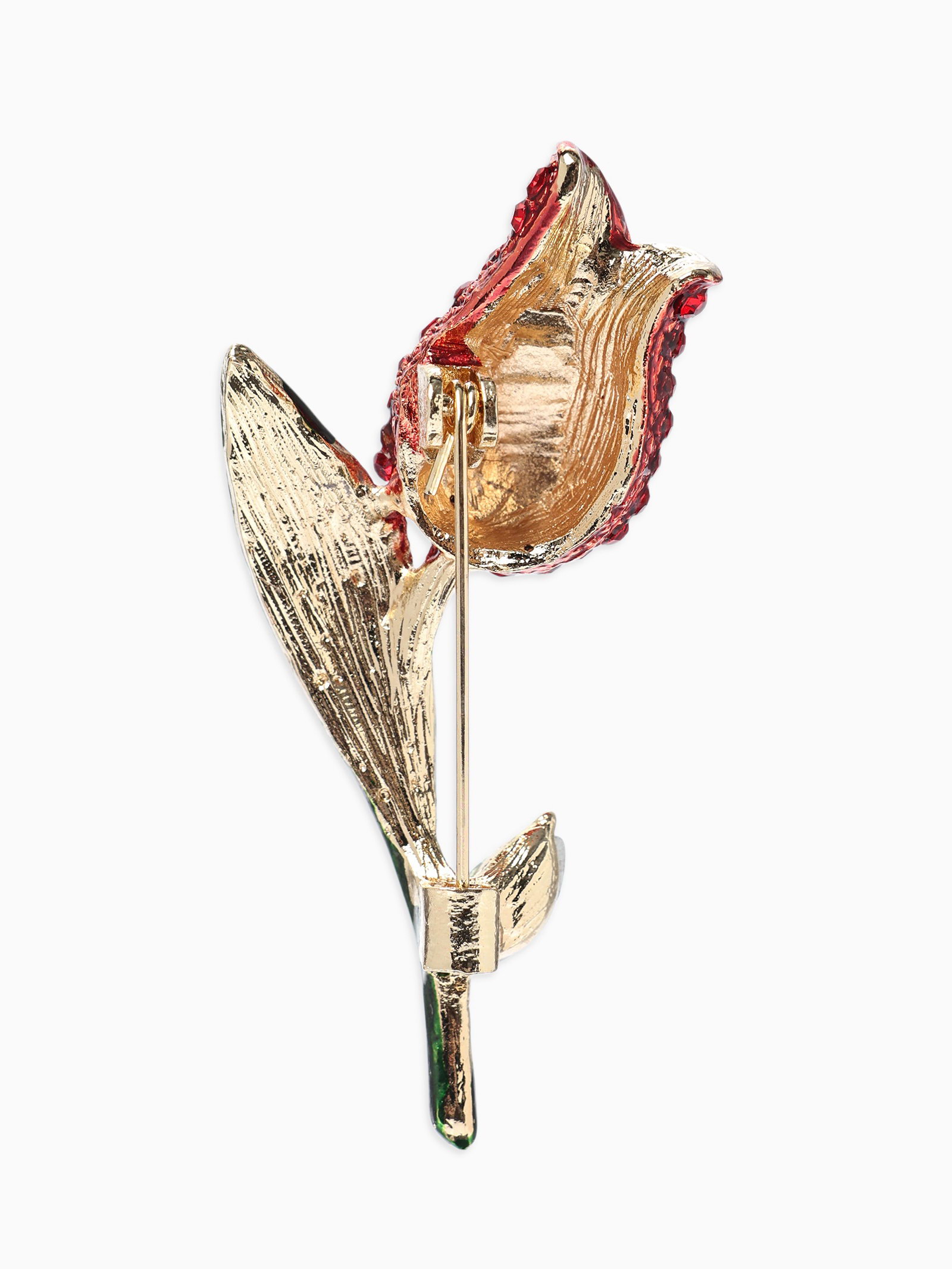 Брошь "Цветок Тюльпан", стразы, красная, зелёная в золоте, 3x4x0.5 см., QF, Китай