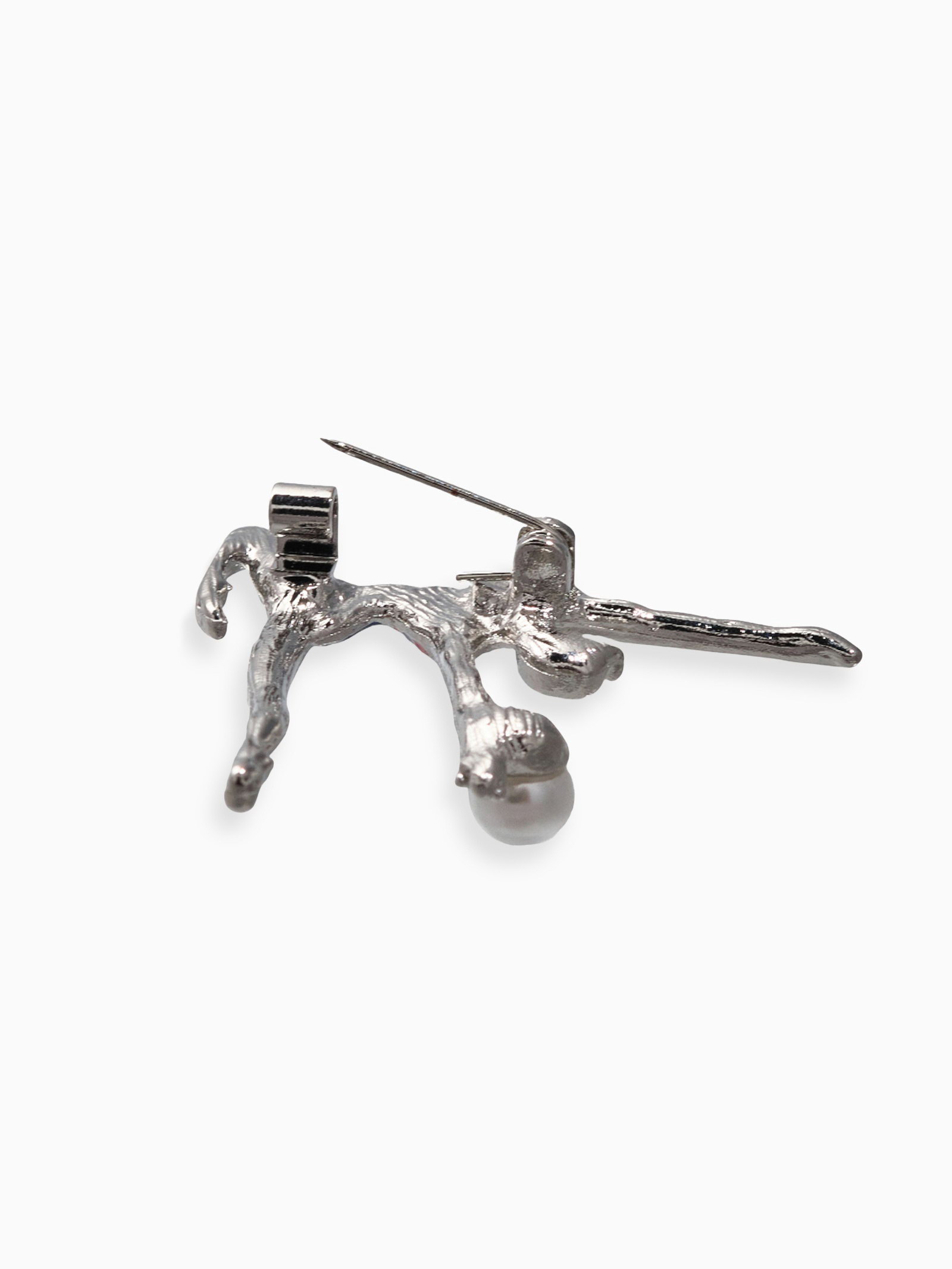 Брошь "Гимнастка с мячом", цвет красно-синий в серебре, 4x4.5x1.5 см., QF, Китай