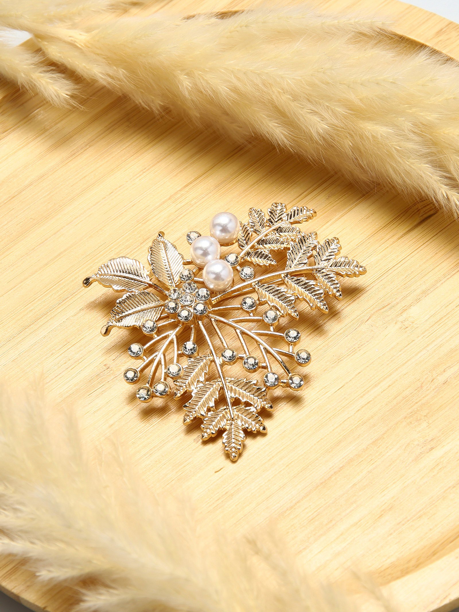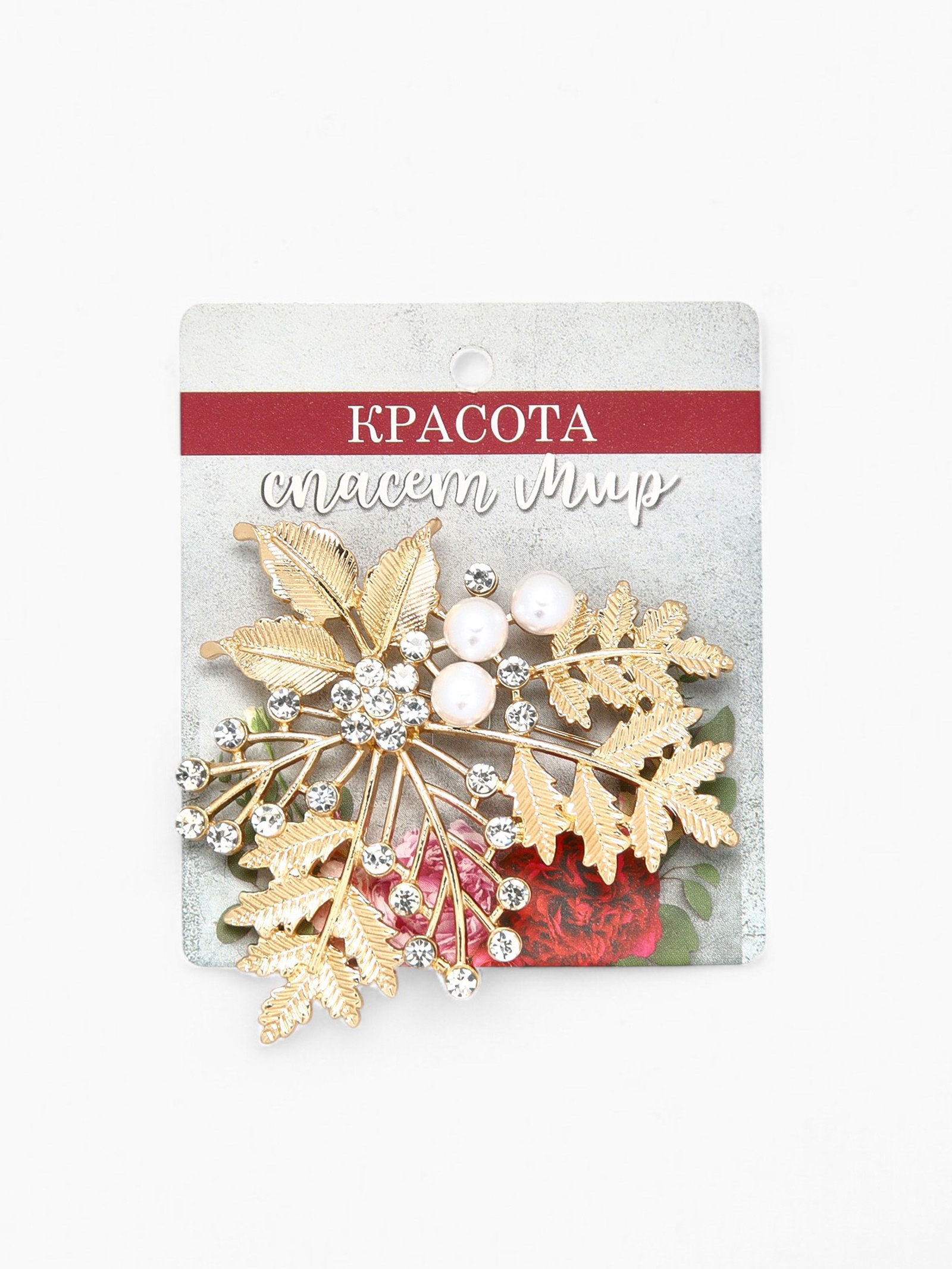 Брошь "Папоротник", цвет белый в золоте, 7x6.5x1 см., QF, Китай