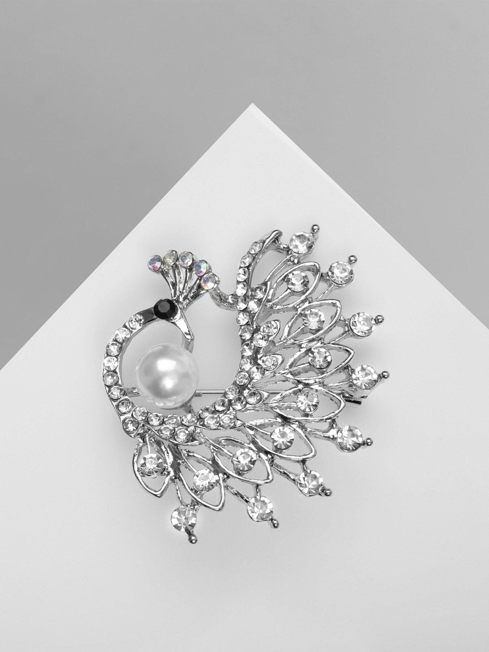 Брошь "Жар-птица" с жемчужиной, цвет бело-радужный в серебре, 6x4.5x1 см., QF, Китай