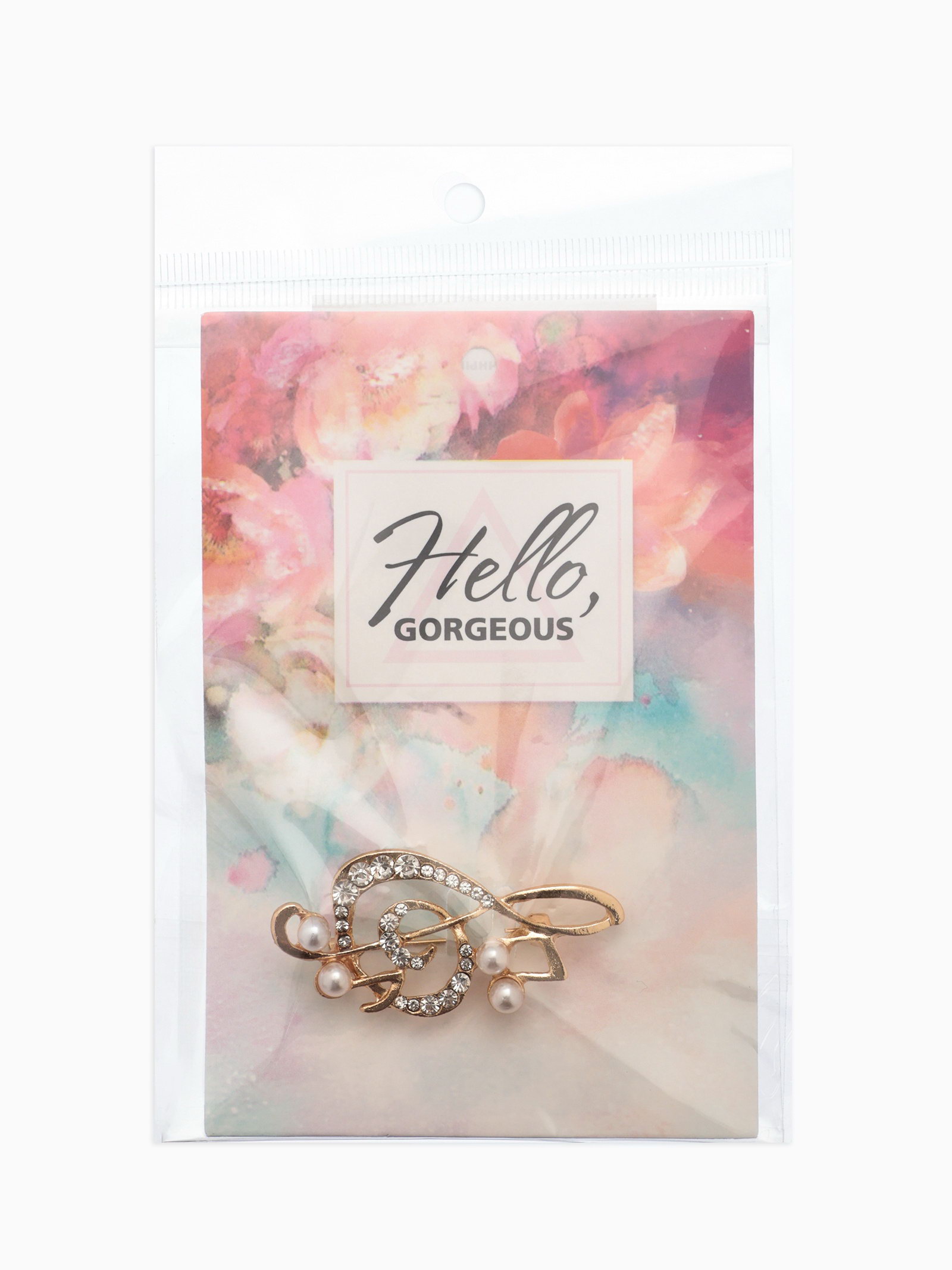 Брошь "Скрипичный ключ" с жемчужными нотками, цвет белый в золоте, 4x5.5x1 см., QF, Китай