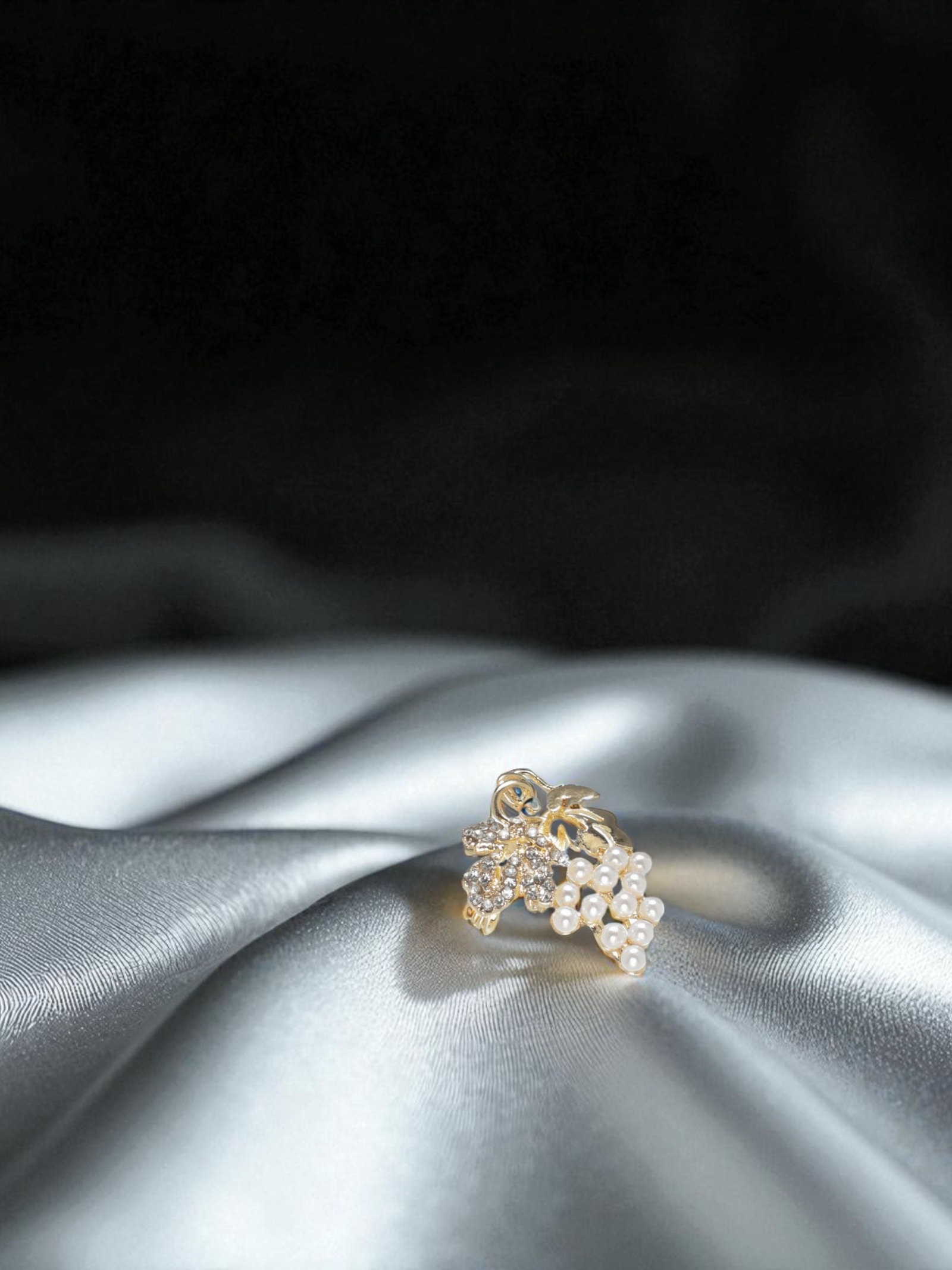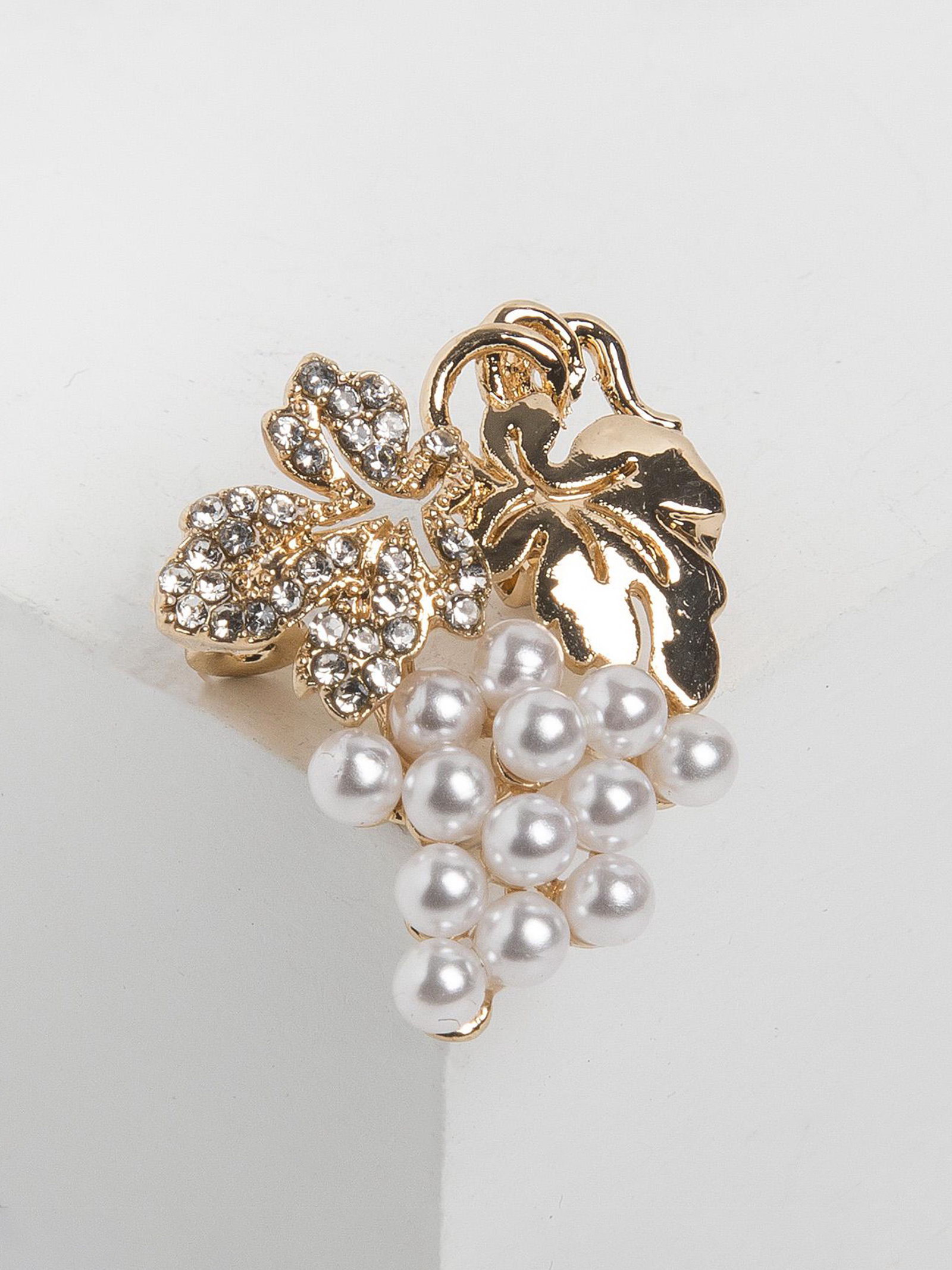 Брошь "Виноград" мини, цвет белый в золоте, 2x2.5x0.6 см., QF, Китай