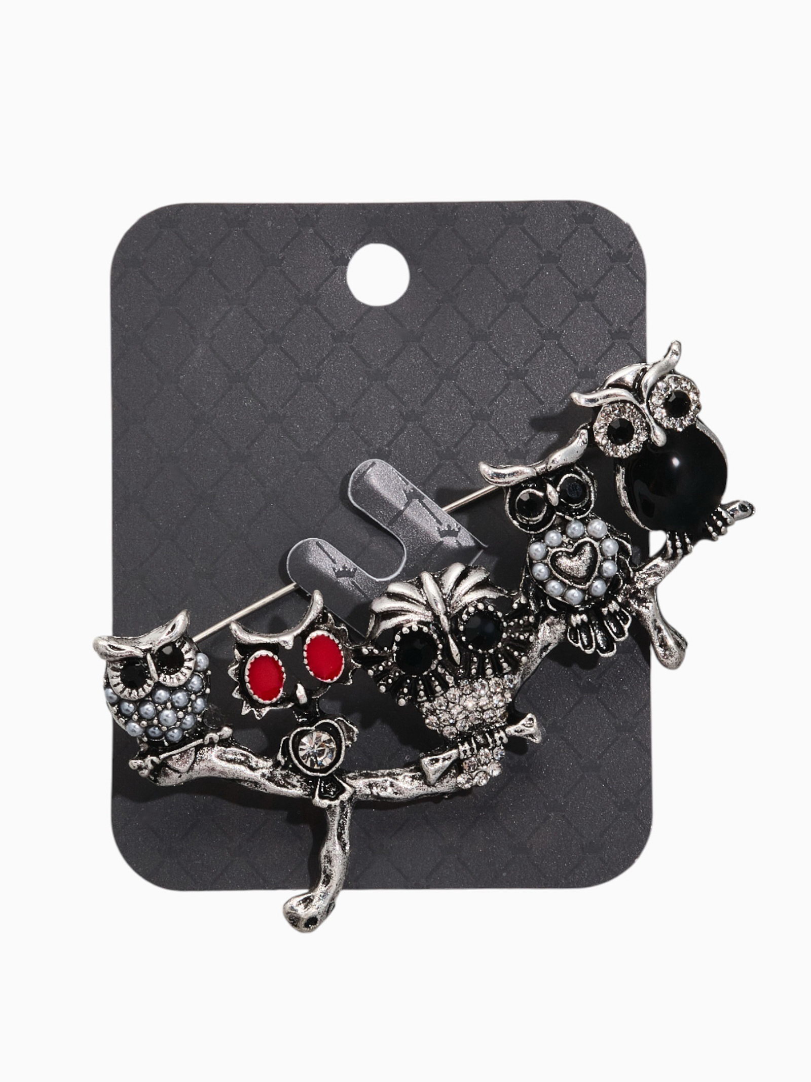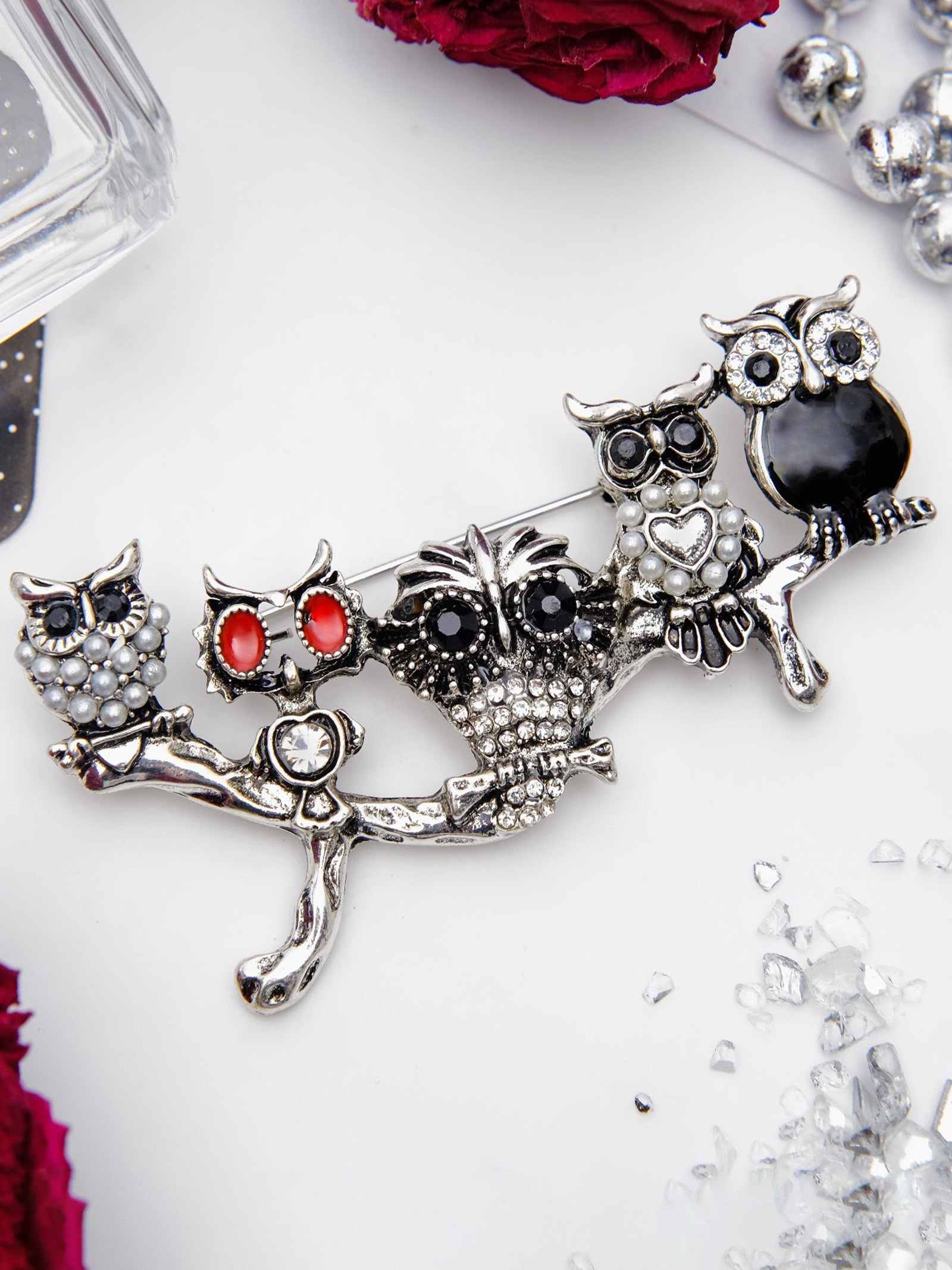 Брошь "Совиная ветвь", цветная в черненом серебре, 7.5x3.5x1.4 см., QF, Китай