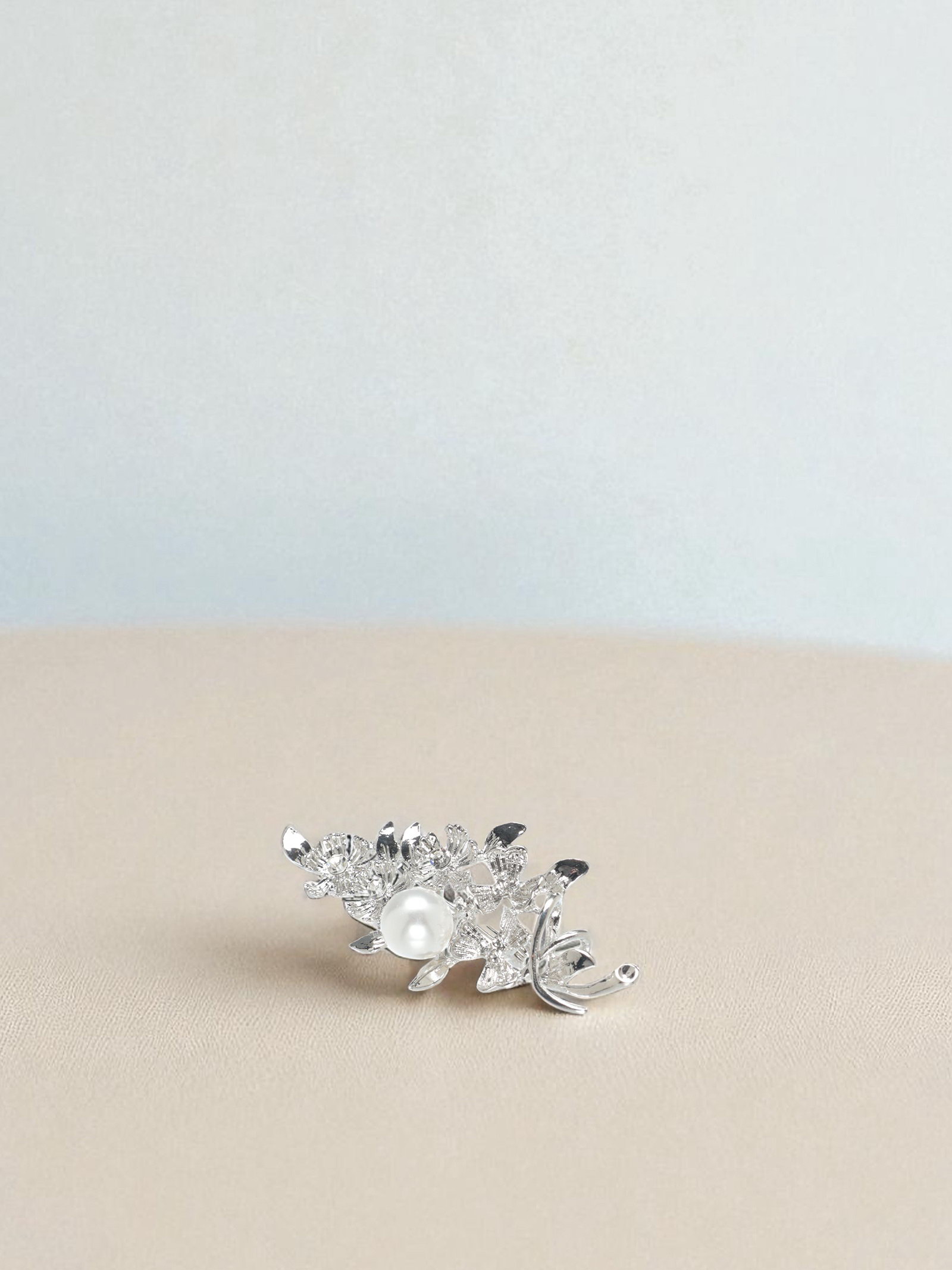 Брошь "Букет с жемчугом", цвет белый в серебре, 3x7x1.5 см., QF, Китай