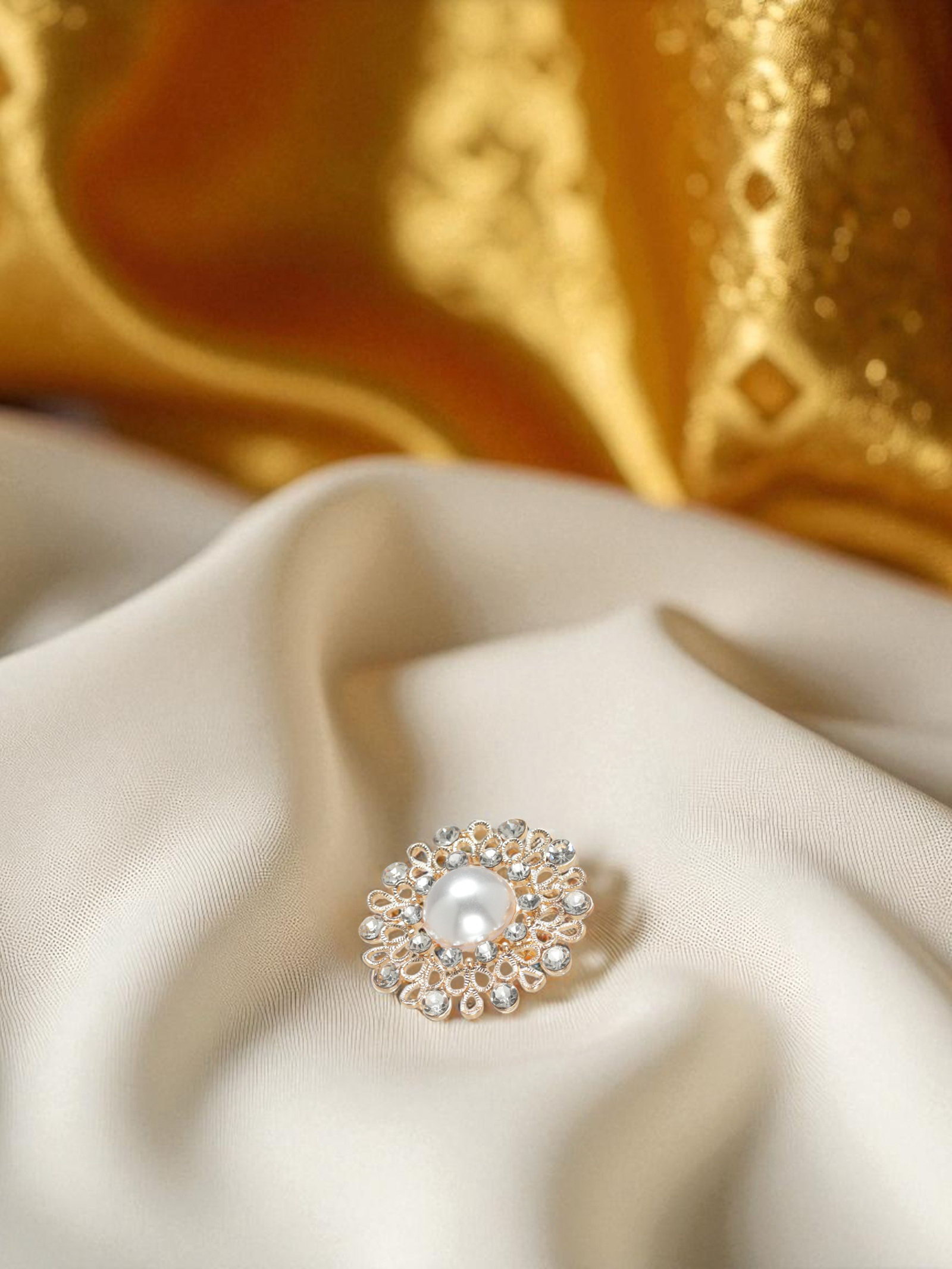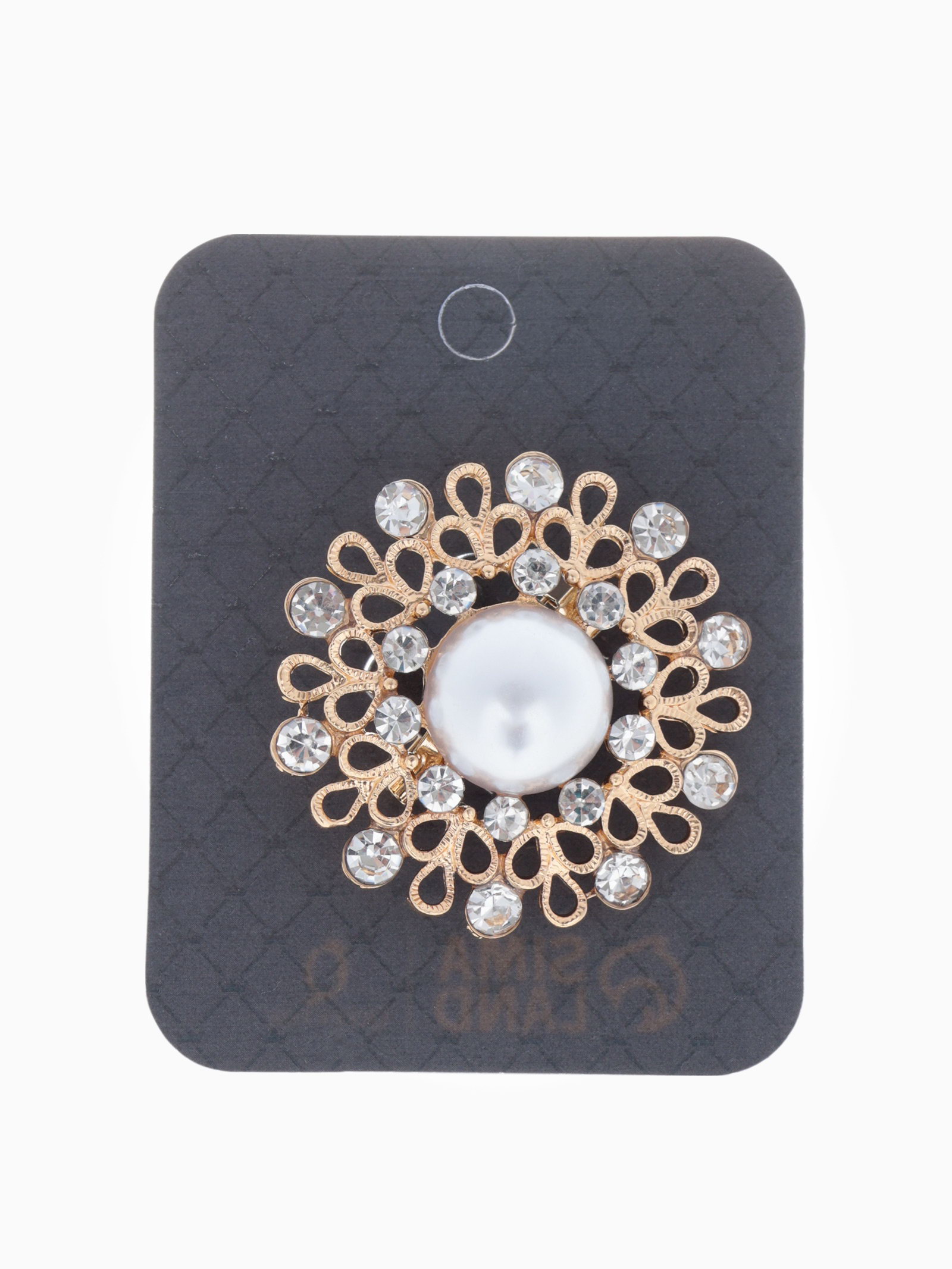 Брошь "Жемчужный цветок" плюмерия, белая в золоте, 4.2x4.2x1.5 см., QF, Китай