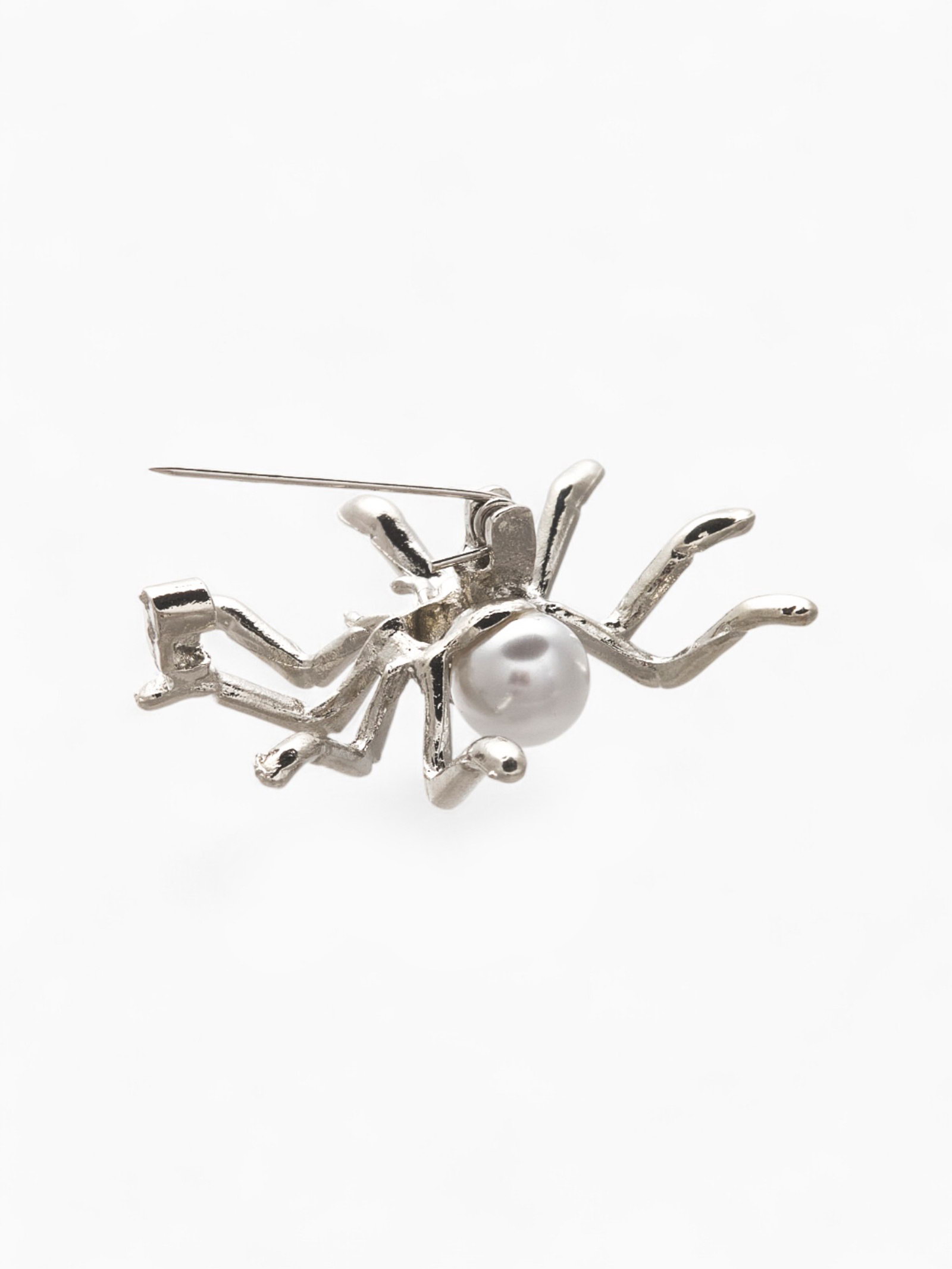 Брошь "Паук" жемчужинка, цвет белый в серебре, 5x4x1 см., QF, Китай