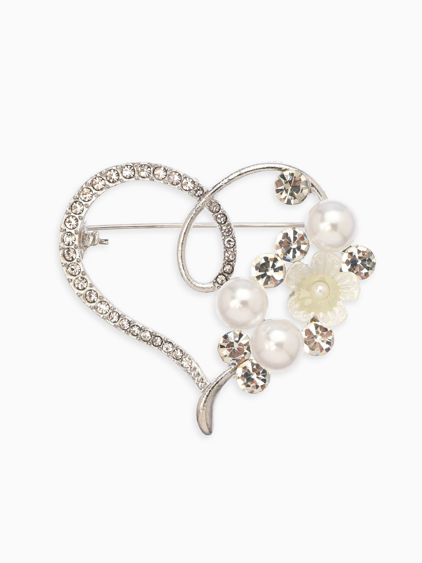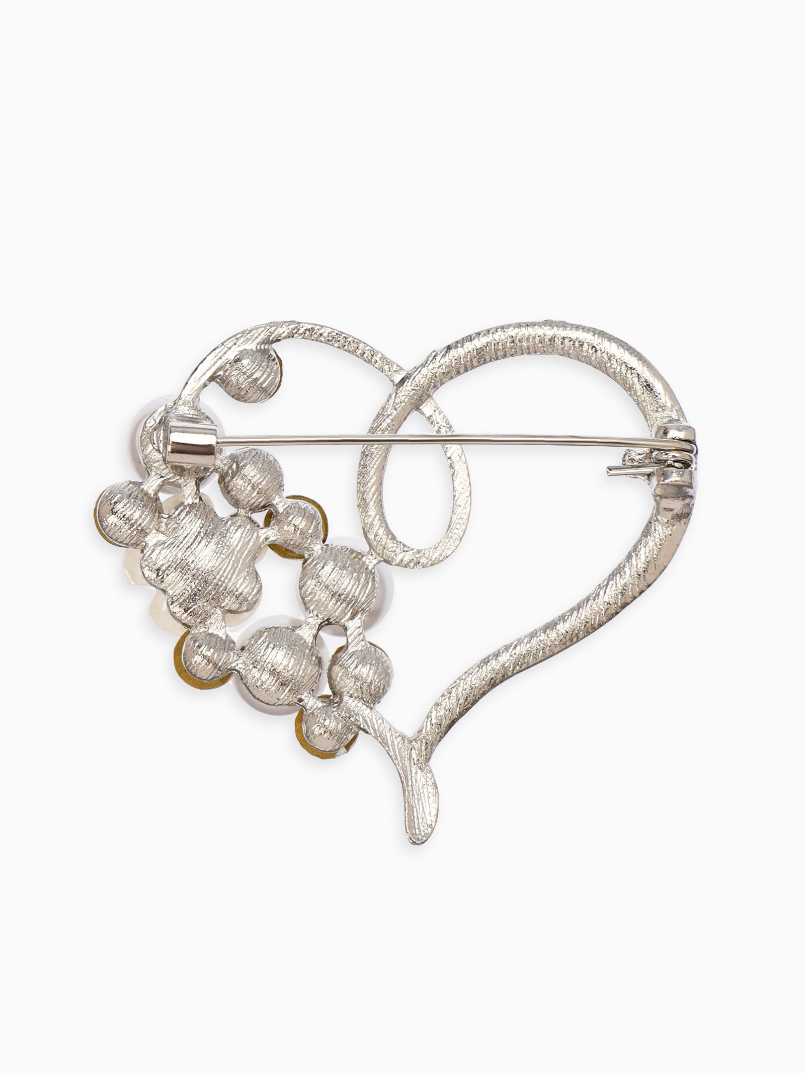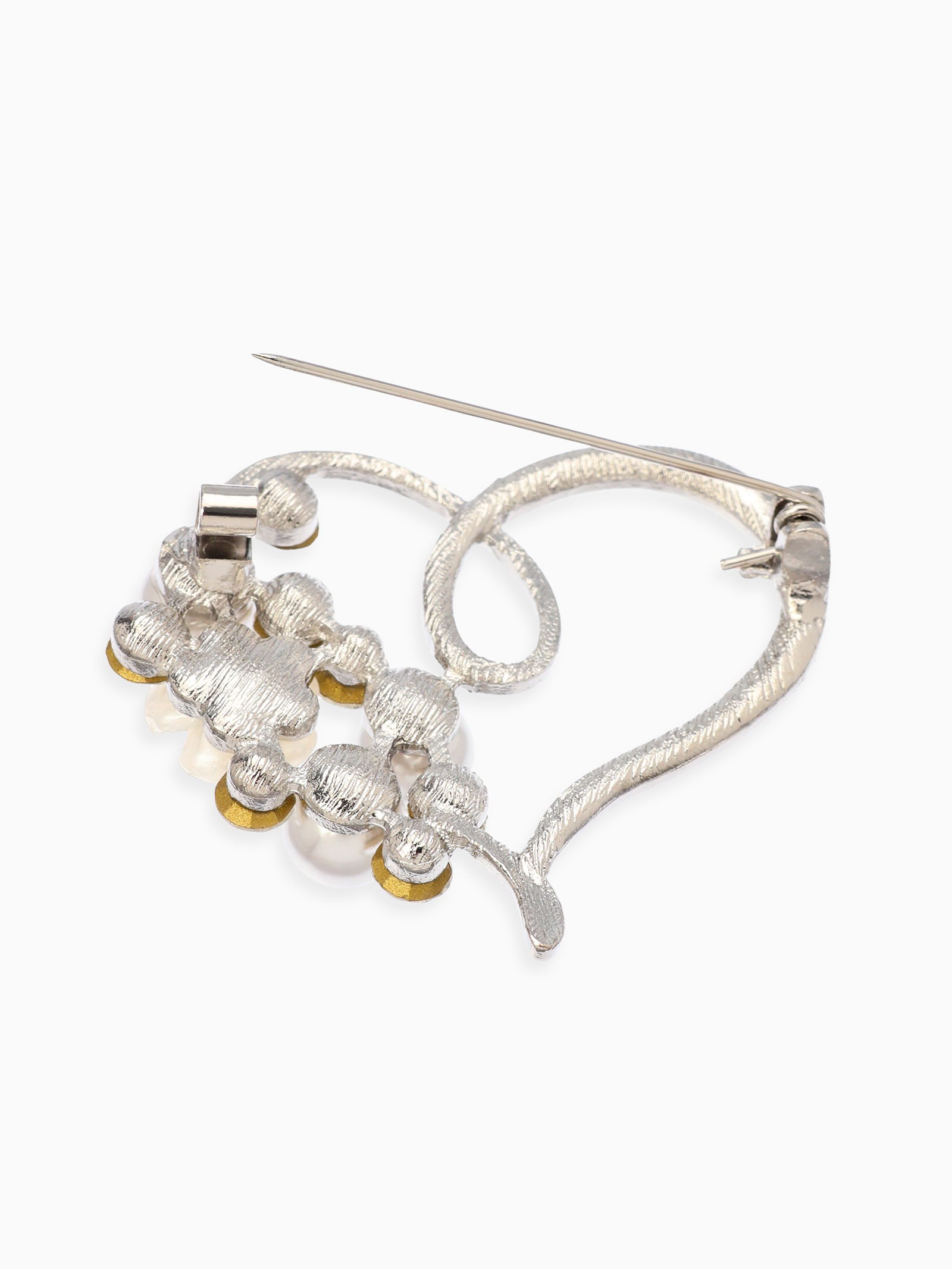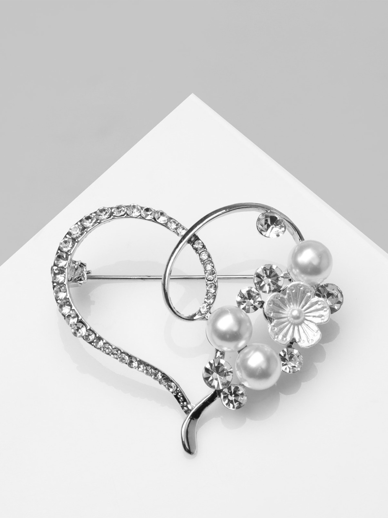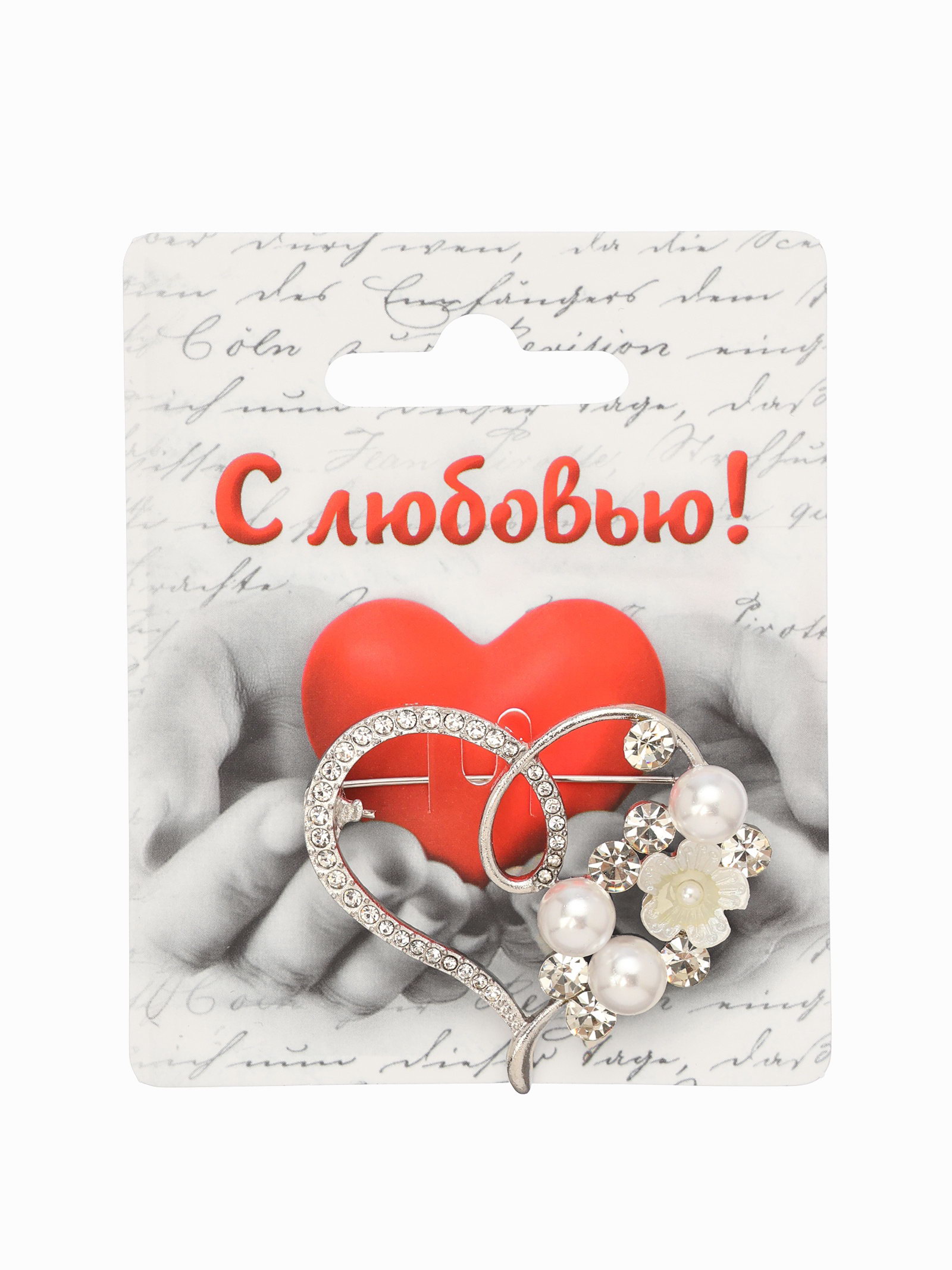 Брошь "Сердце" жемчужное, цвет белый в серебре, 4x4.5x0.5 см., QF, Китай