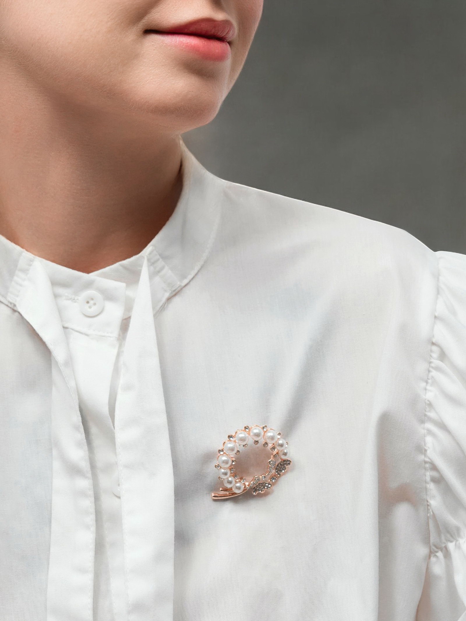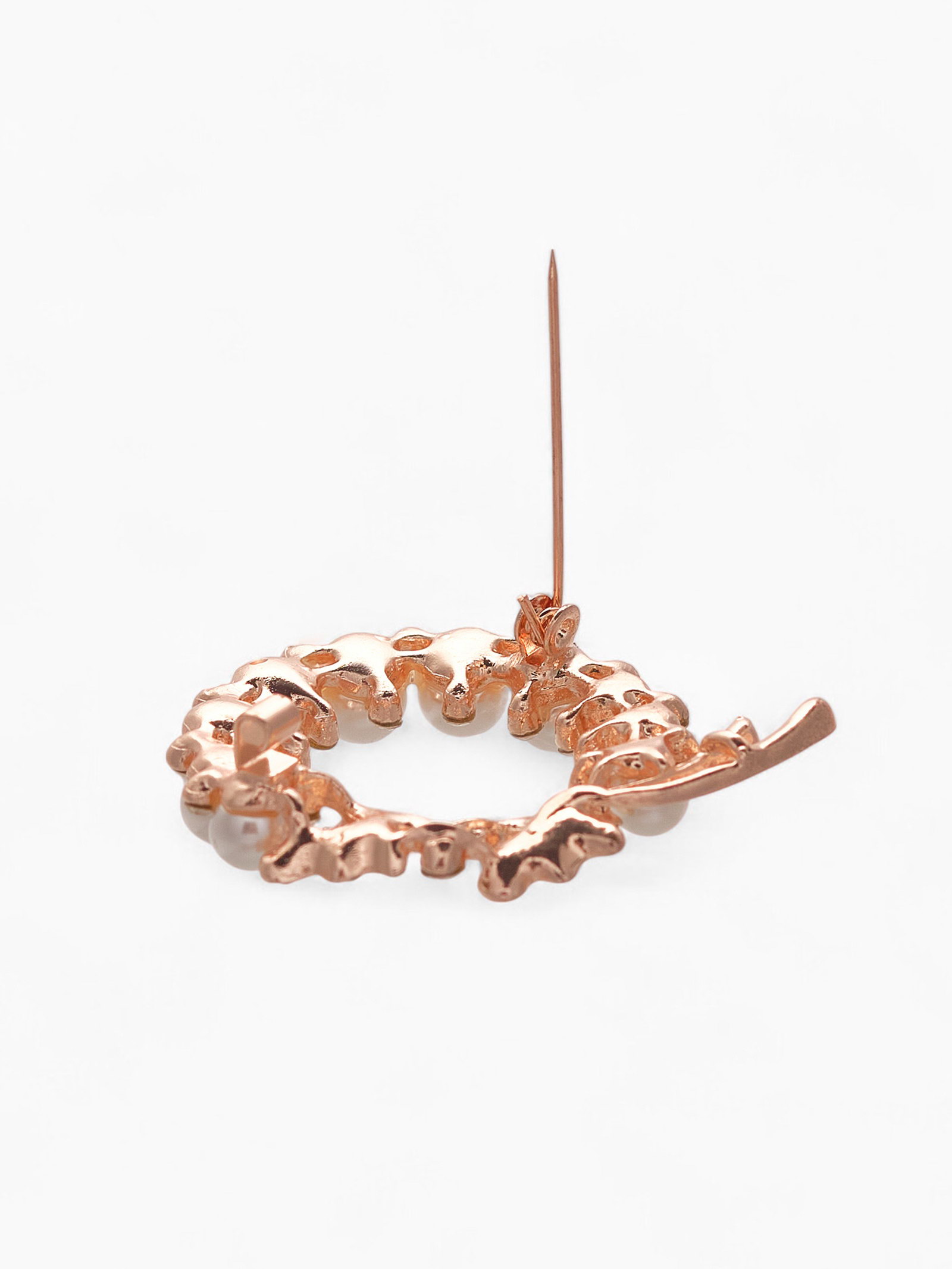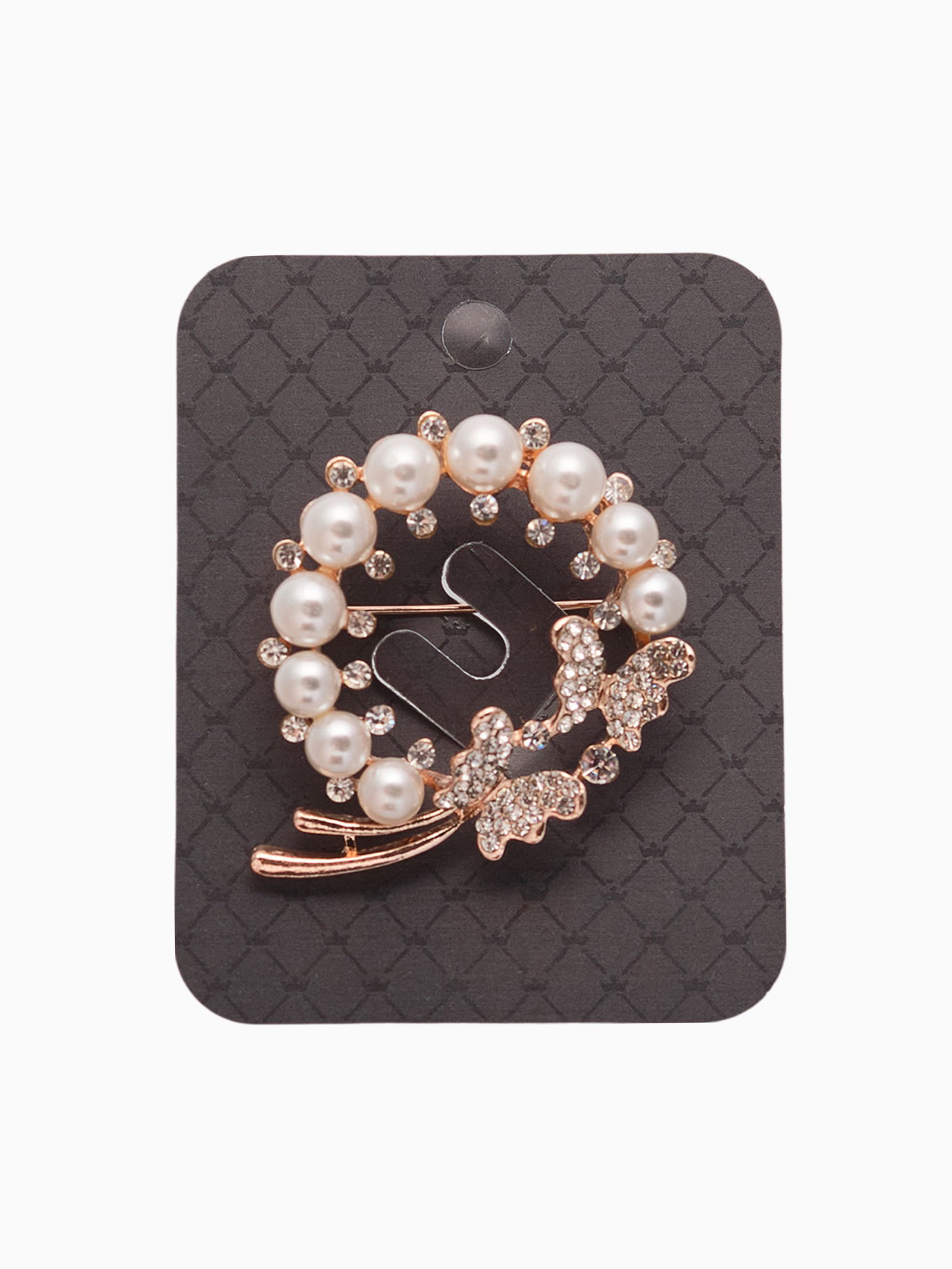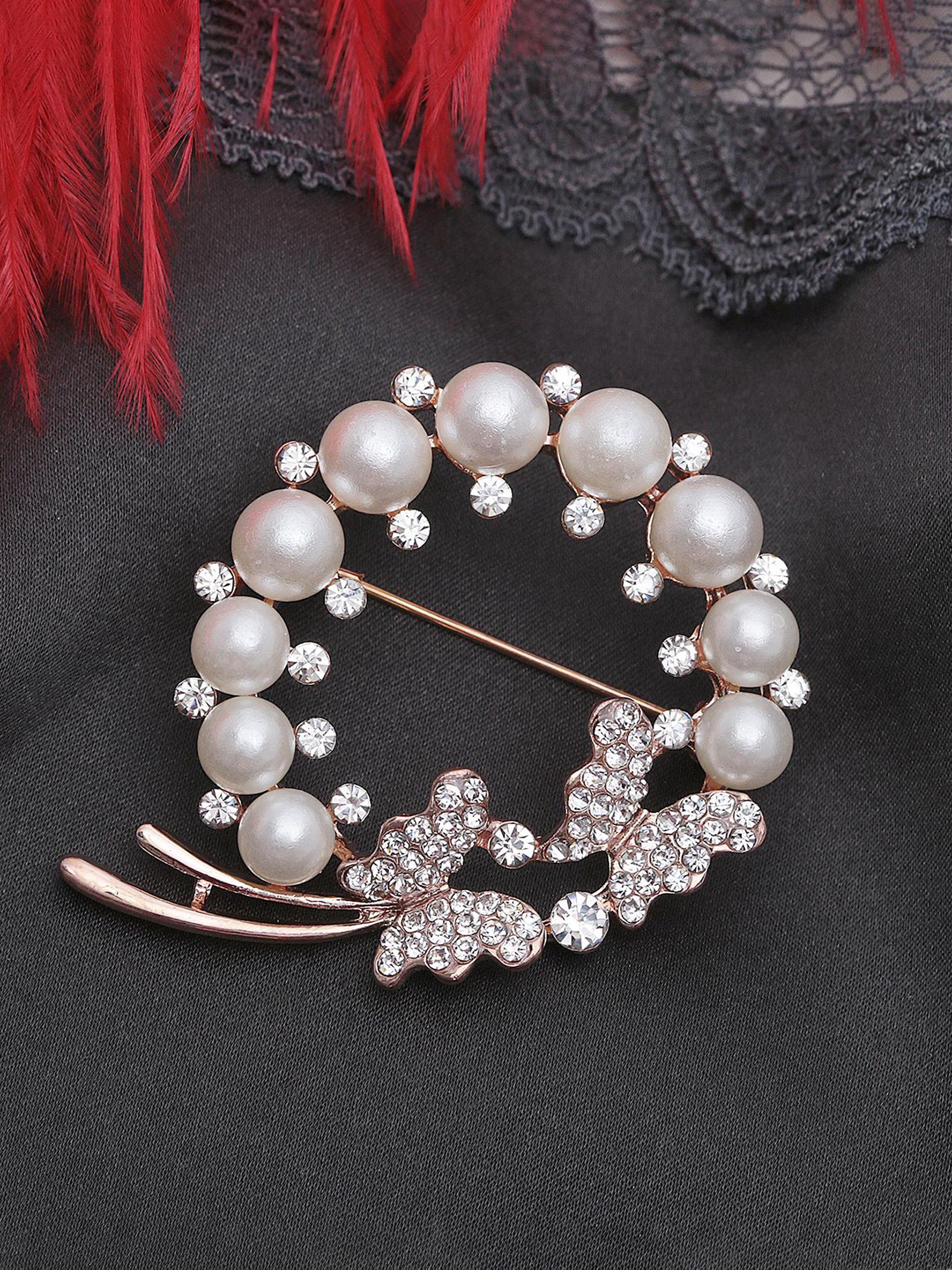 Брошь "Бабочки в жемчужном венке", цвет белый в розовом золоте, 5x5x1 см., QF, Китай