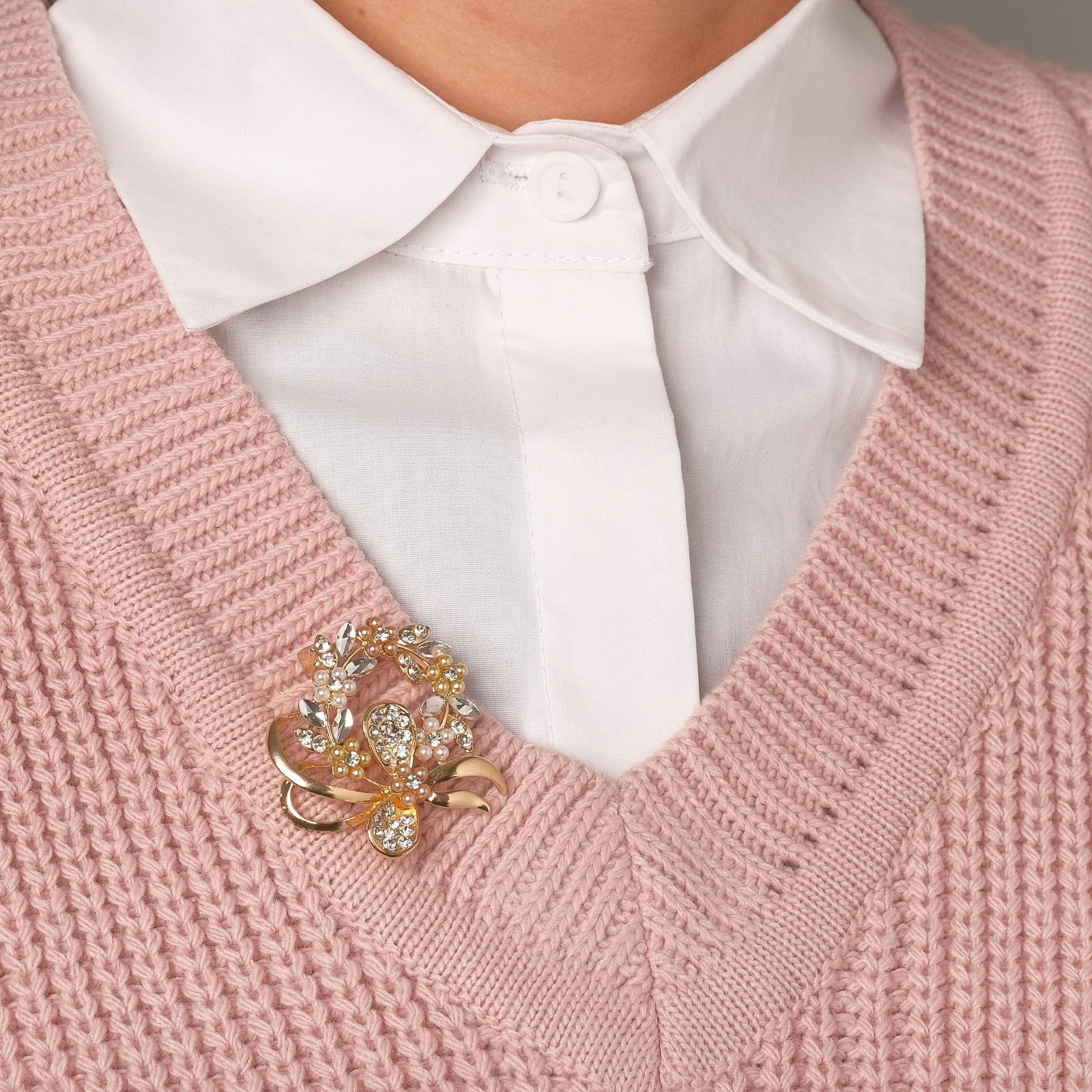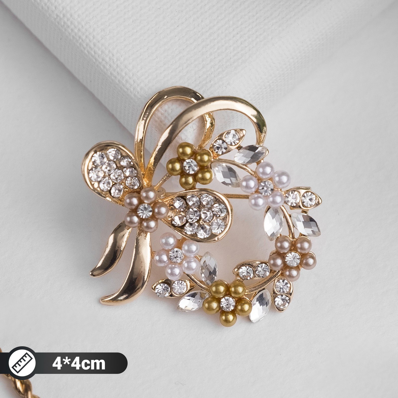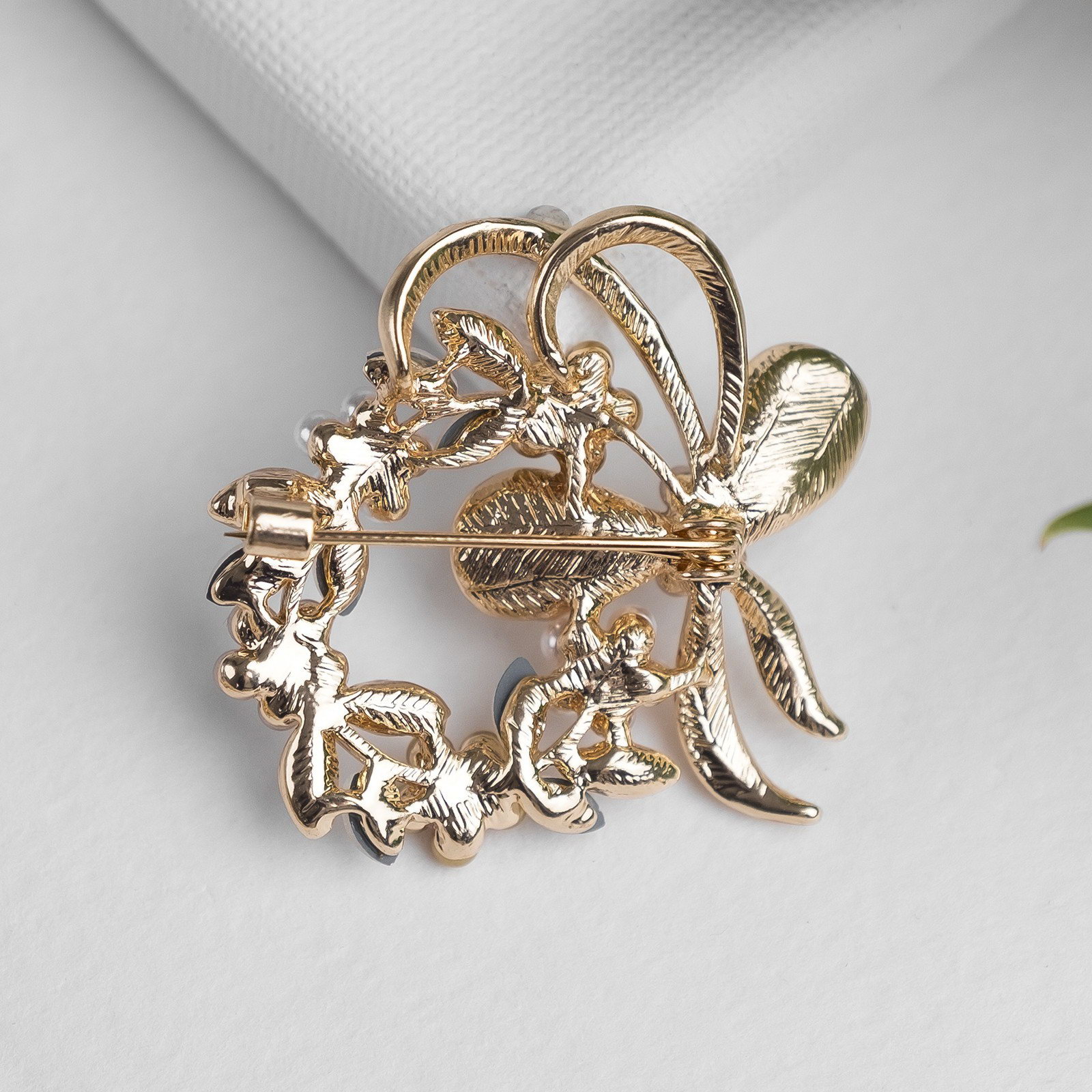 Брошь "Жемчужный венок" с бантом, цвет коричневый в золоте, 4x4x1 см., QF, Китай