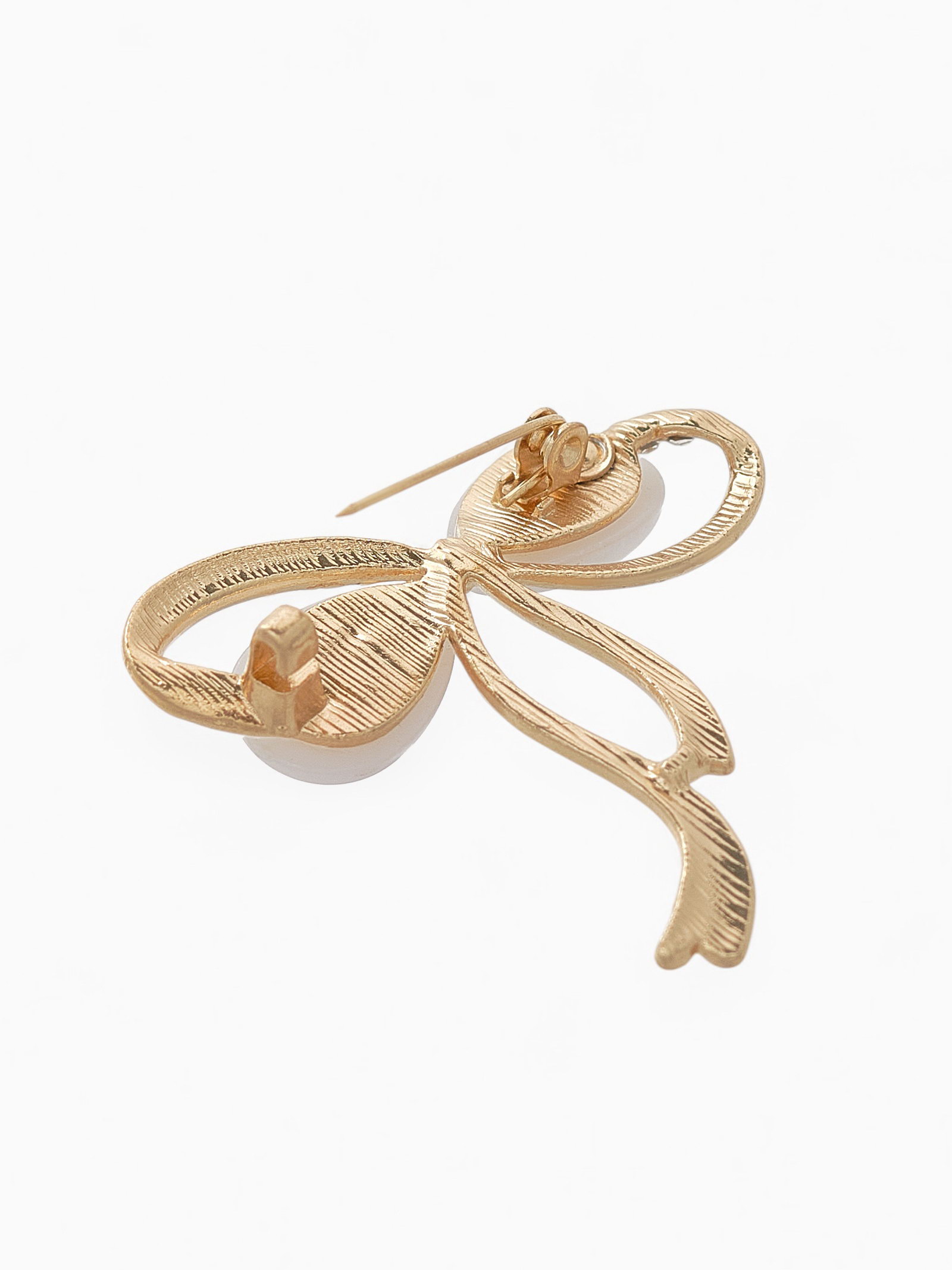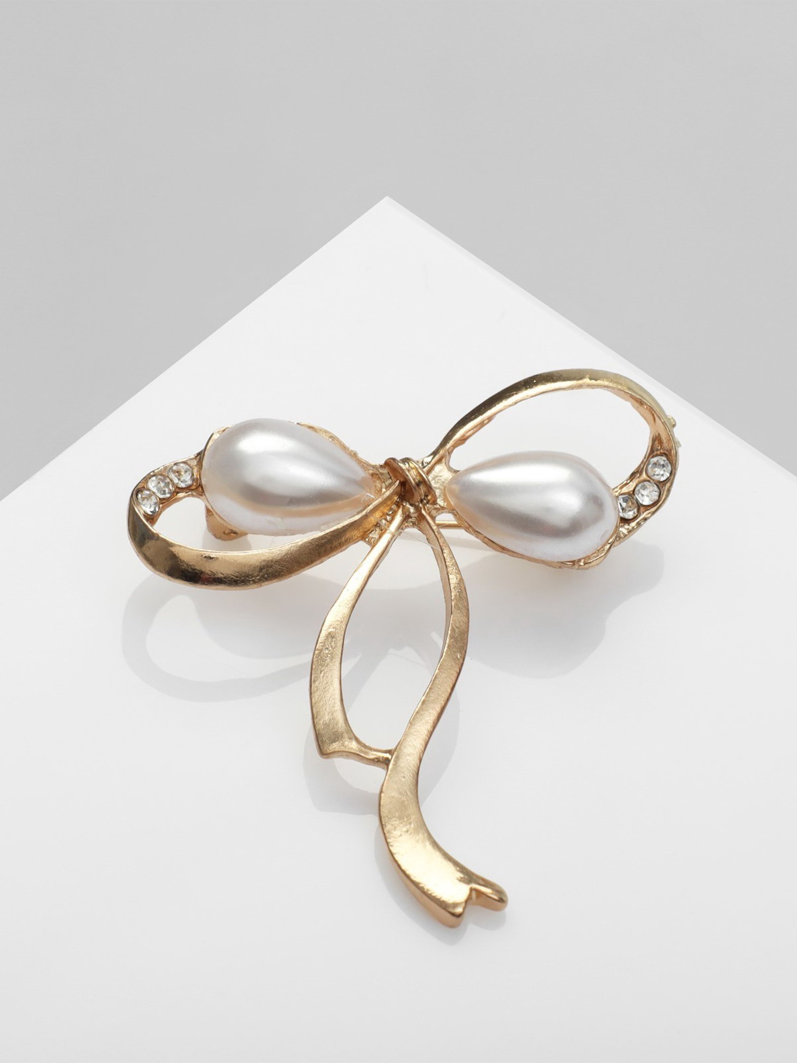 Брошь "Бантик" с жемчужинками, цвет белый в золоте, 1.3x3x1 см., QF, Китай