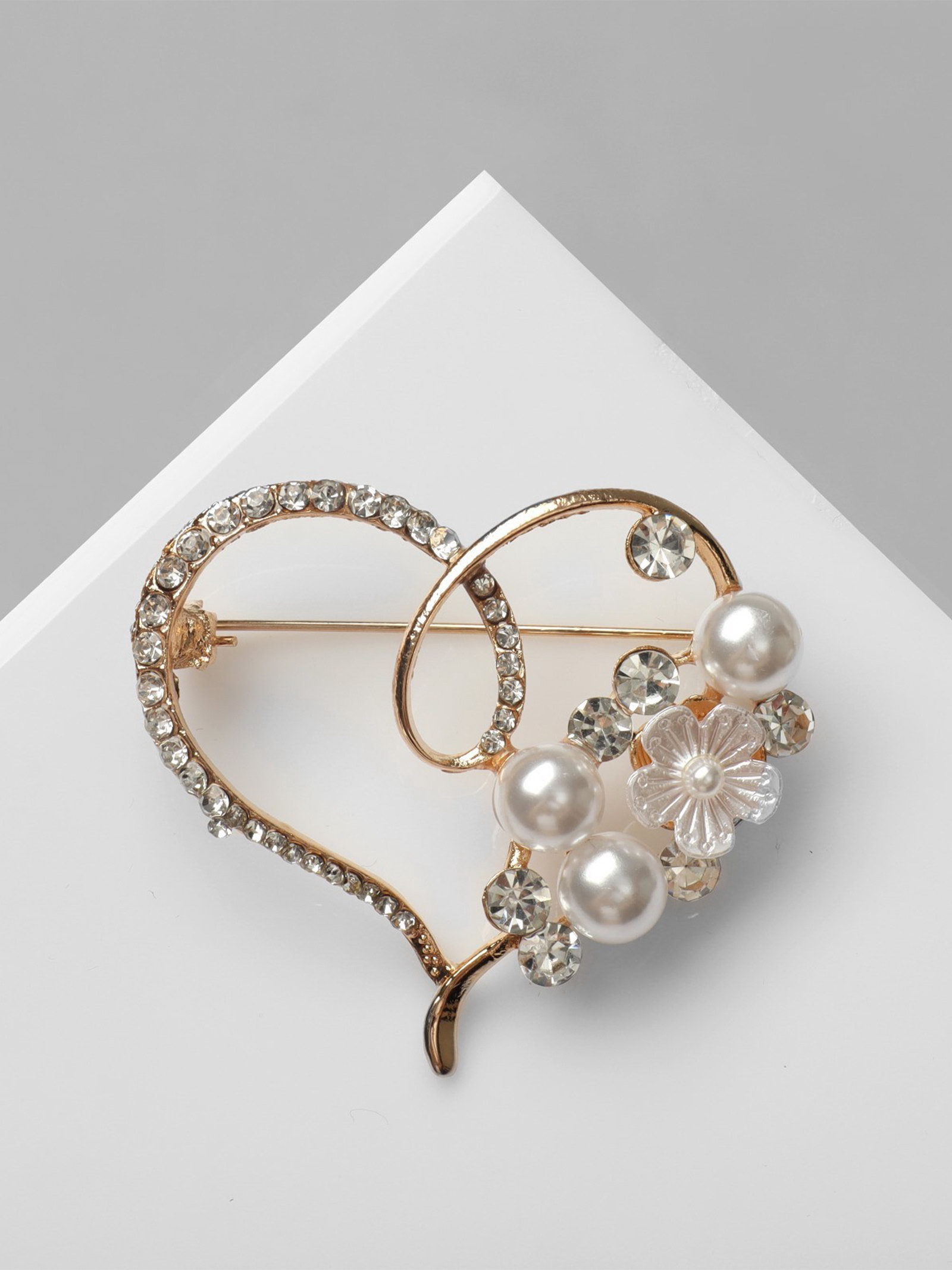 Брошь "Сердце" жемчужное, цвет белый в золоте, 4x4.5x1 см., QF, Китай