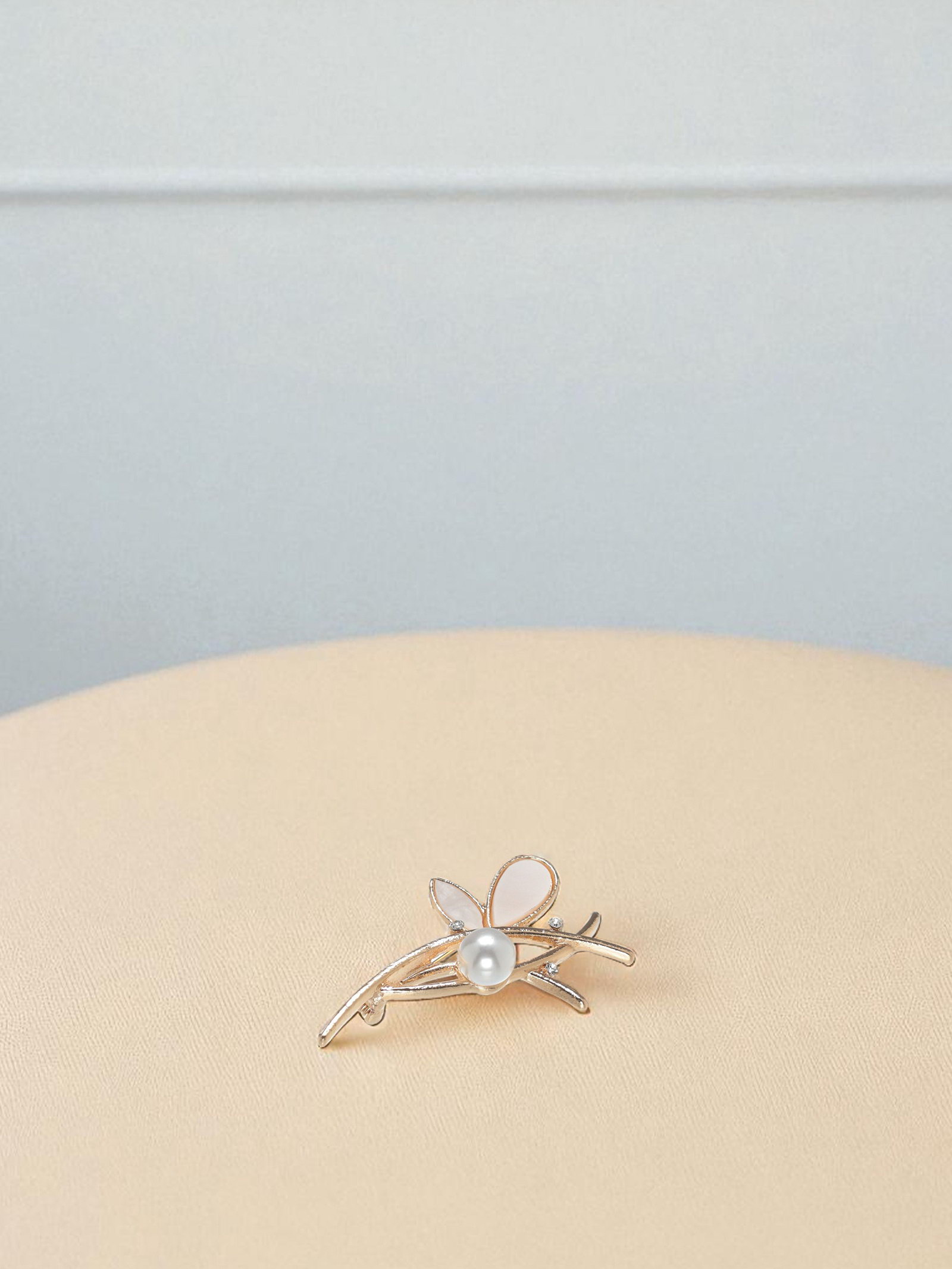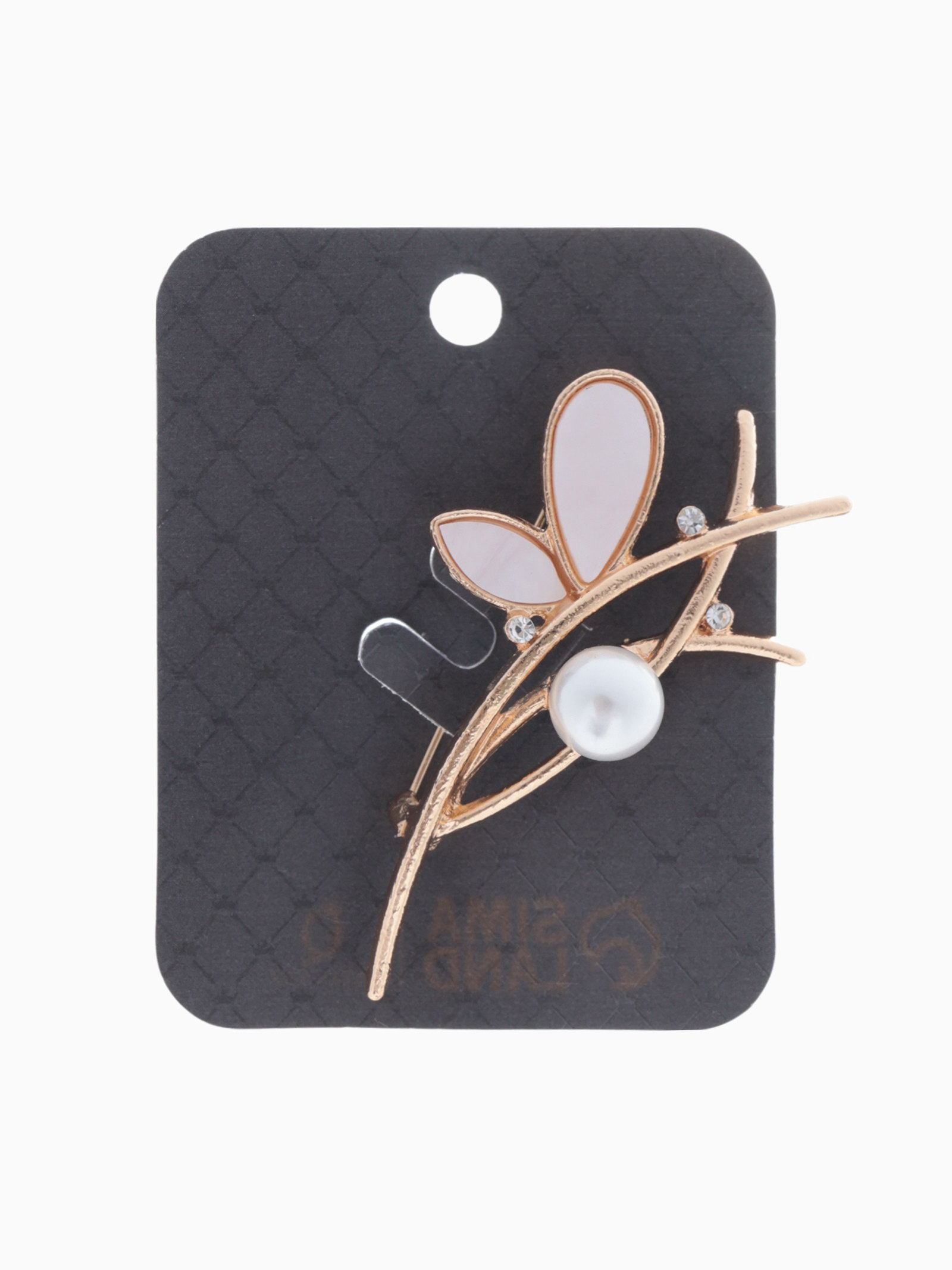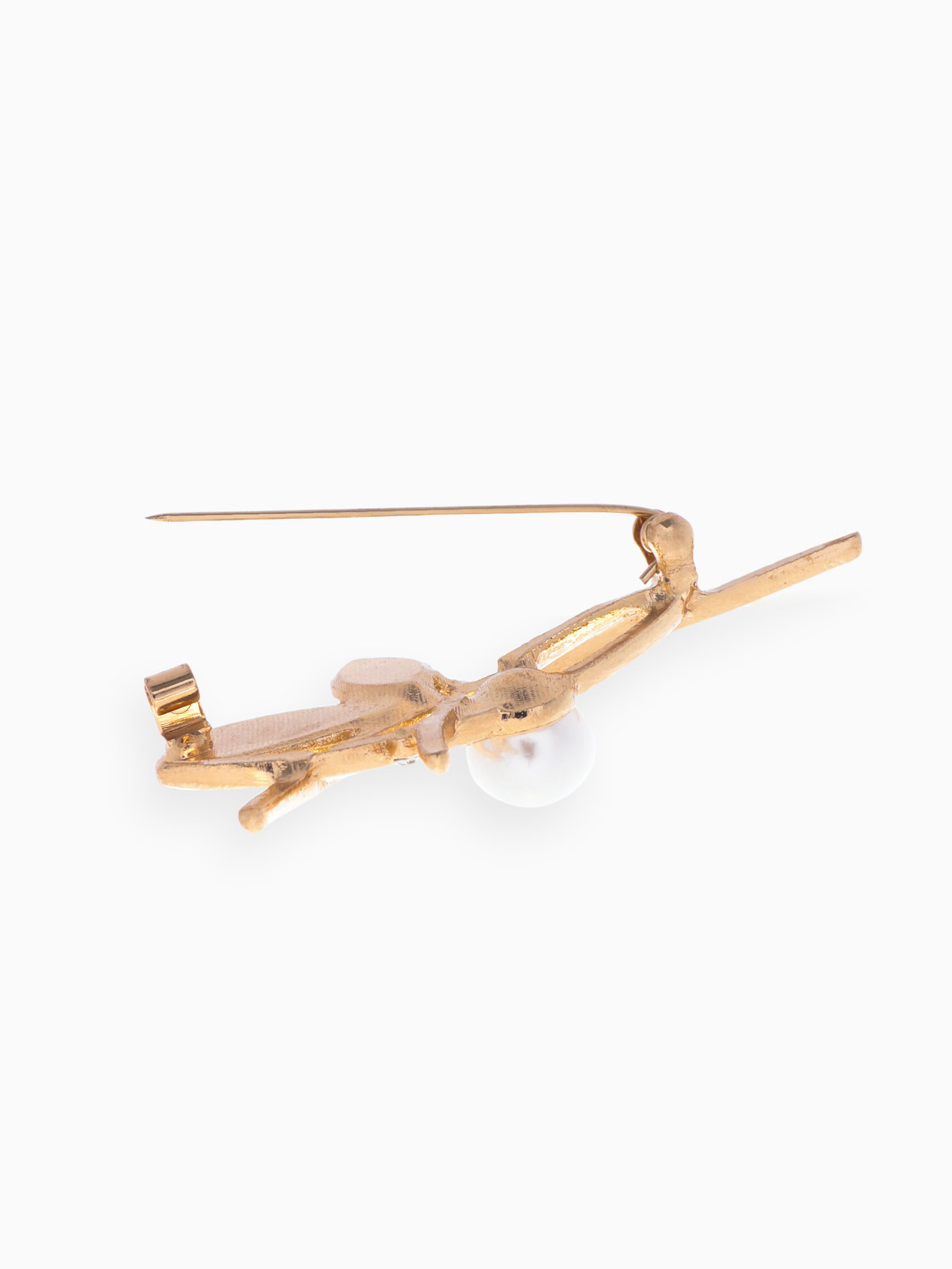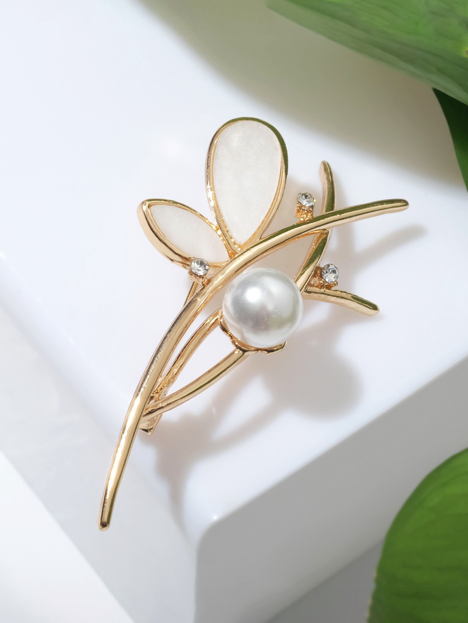 Брошь "Стрекоза" с бусиной, цвет белый в золоте, 3.5x6.5x1.5 см., QF, Китай