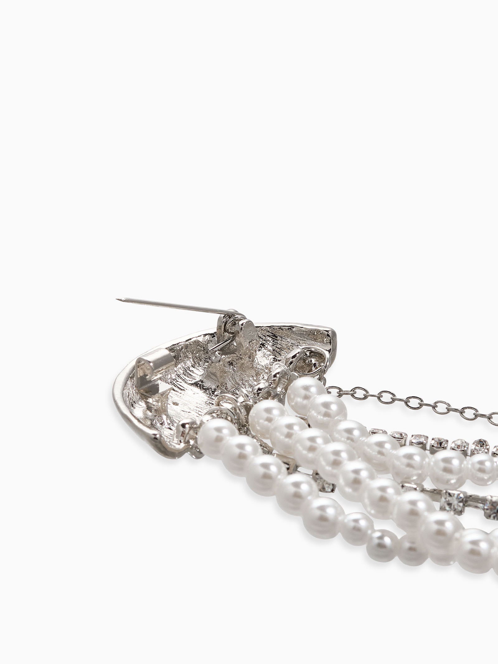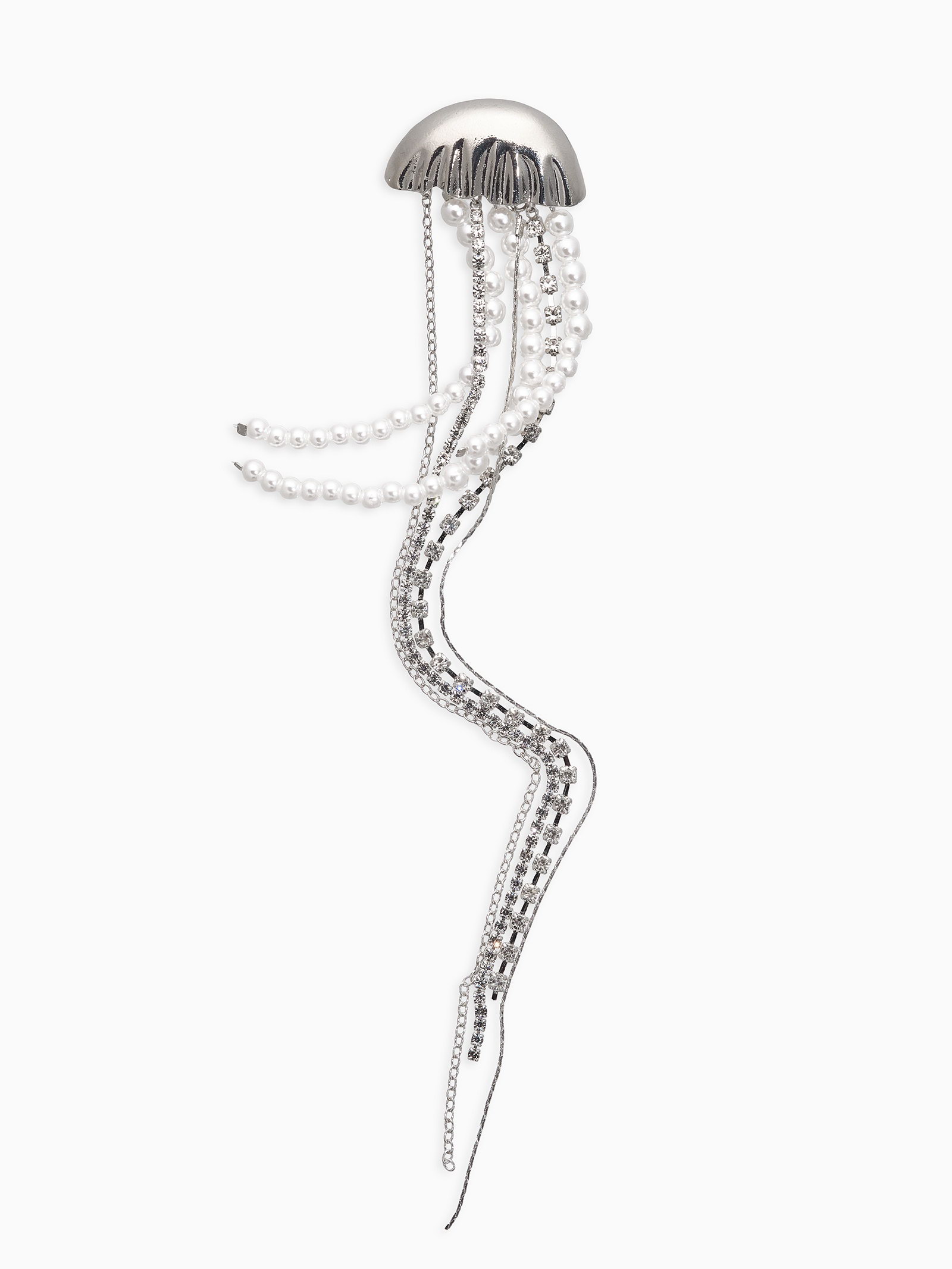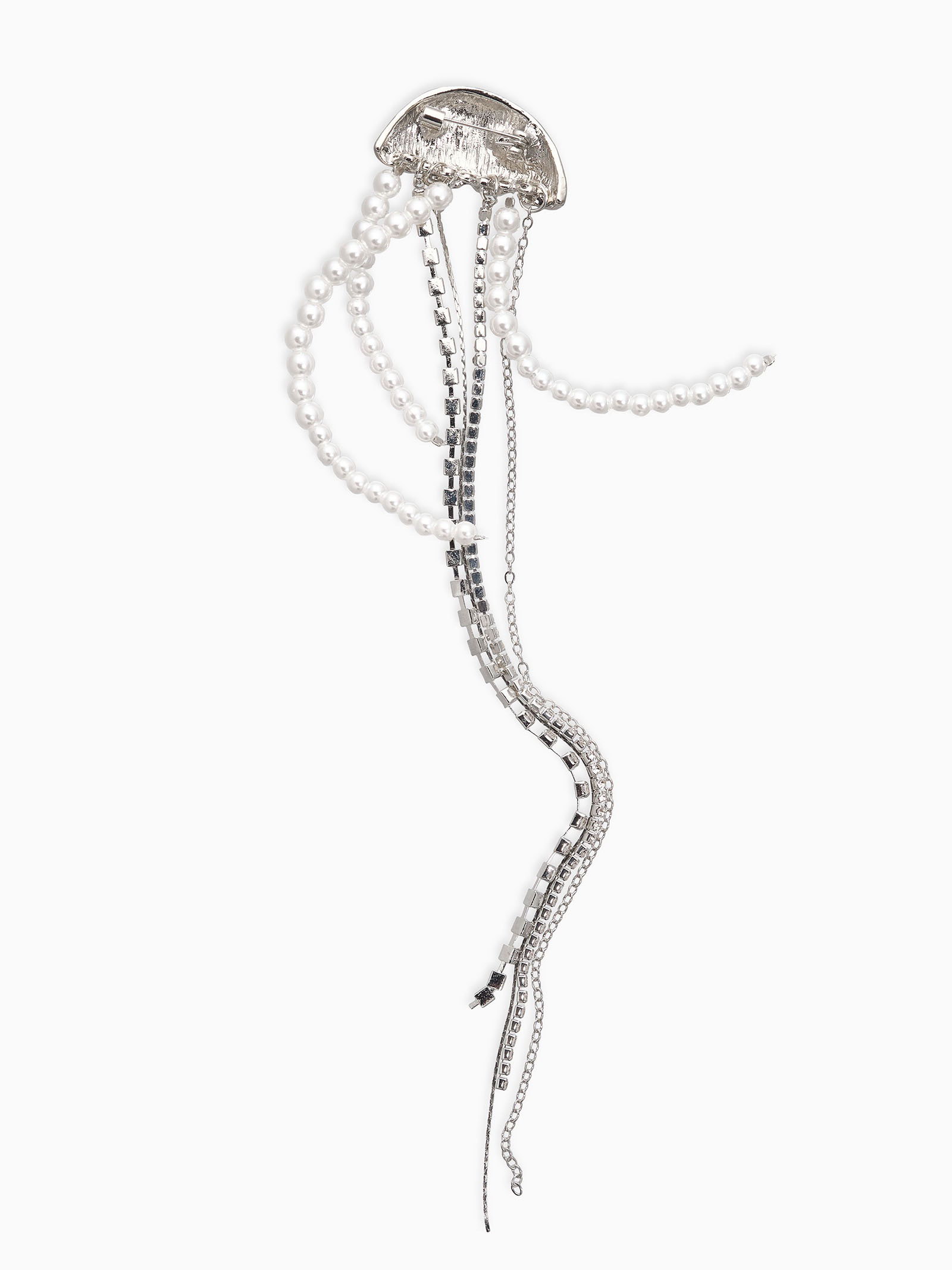 Брошь "Медуза", цвет белый в серебре, 3.3x19.5x1 см., QF, Китай