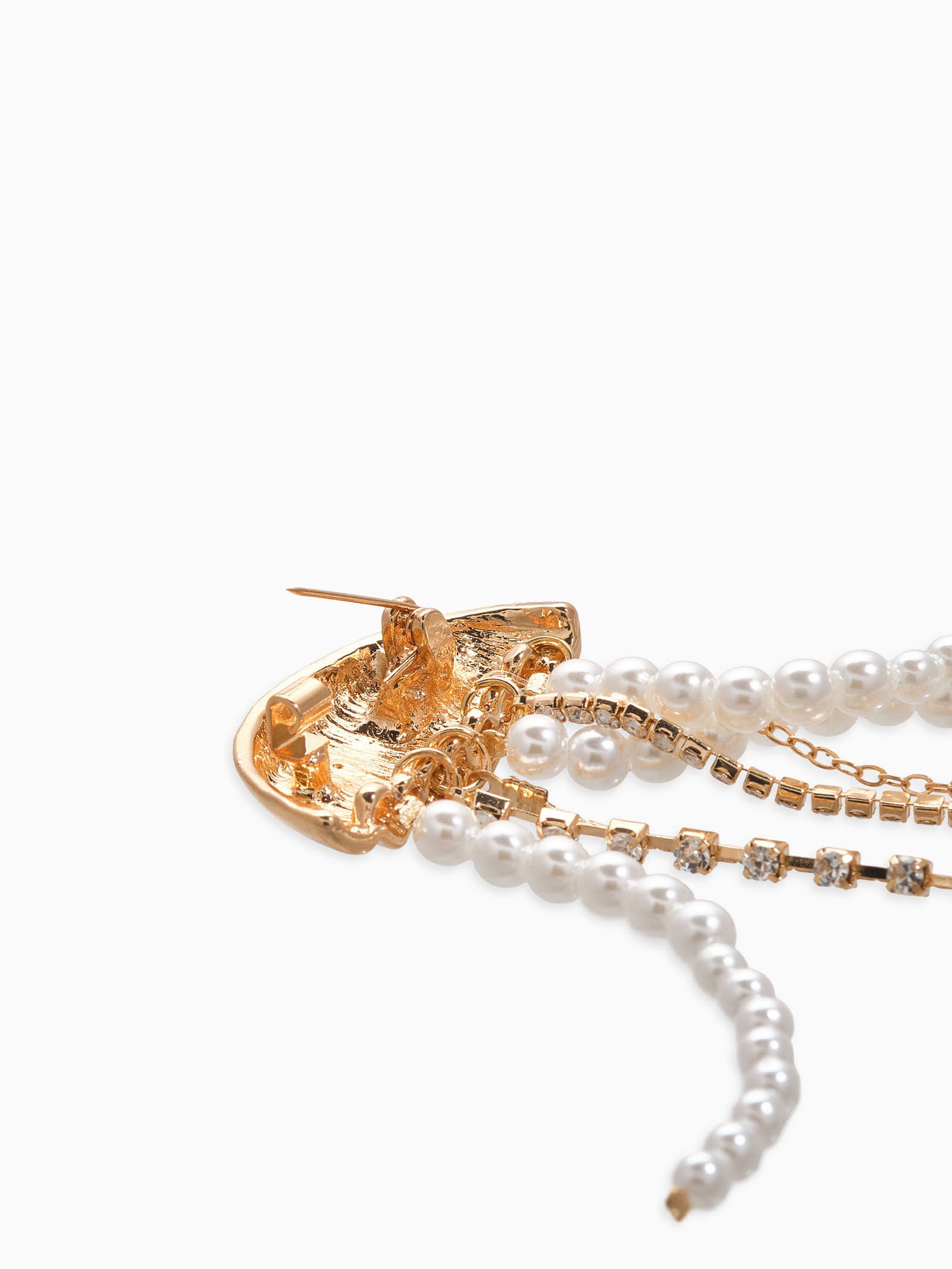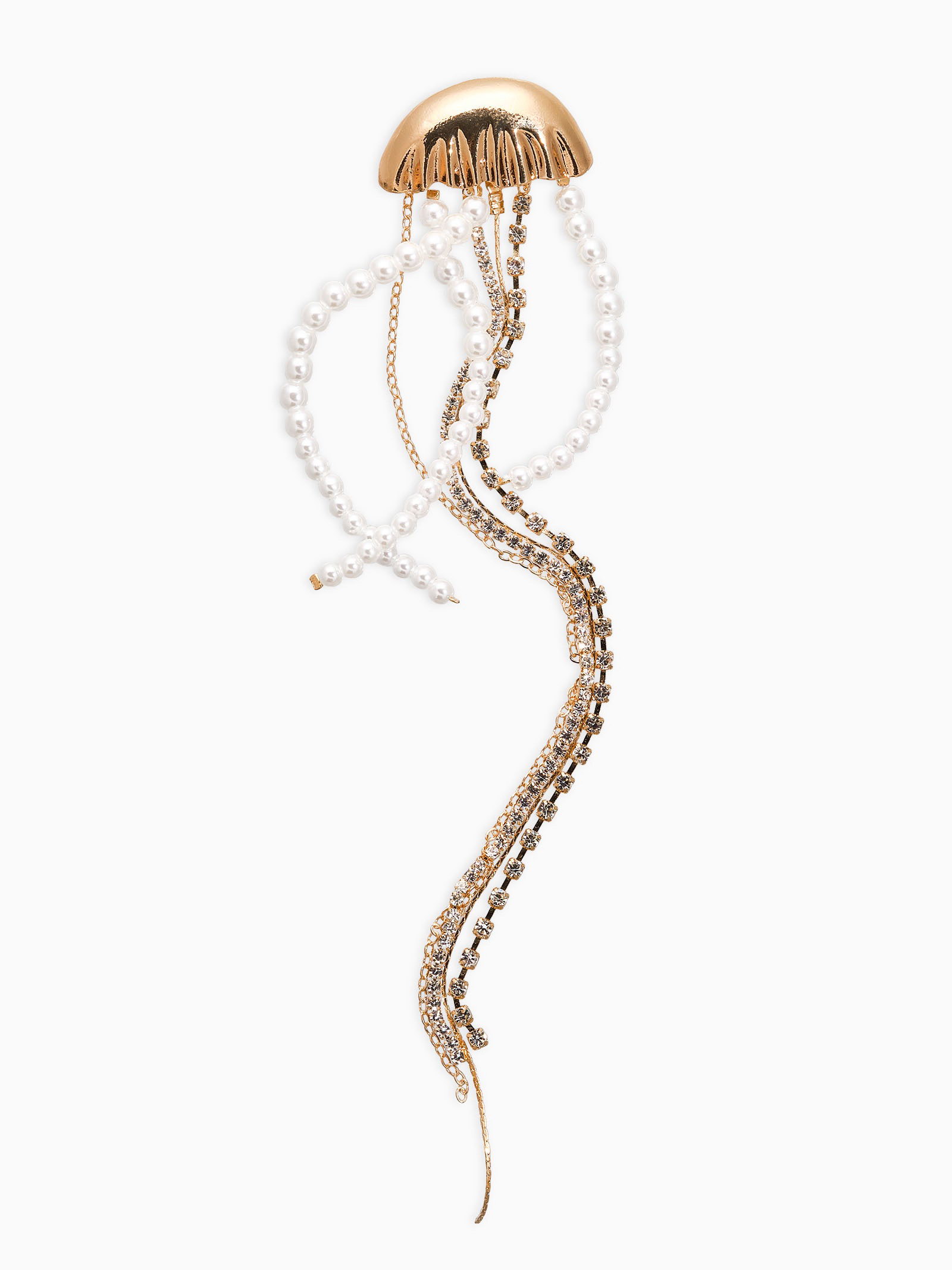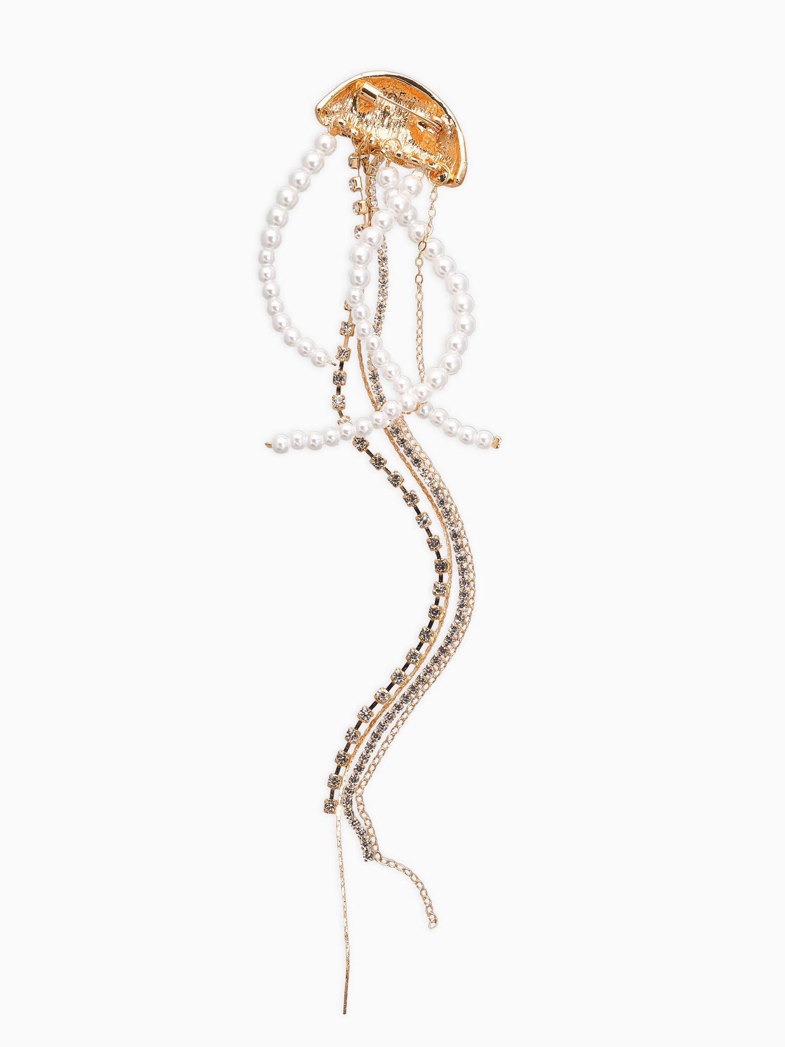 Брошь "Медуза", цвет белый в золоте, 3.3x19.5x1 см., QF, Китай