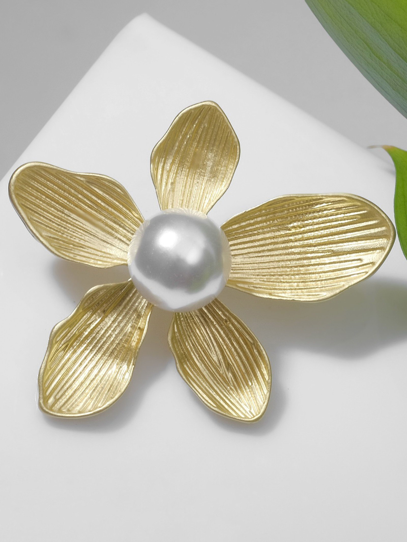 Брошь "Цветок" нежный, цвет белый в золоте, 4.5x4x1 см., QF, Китай
