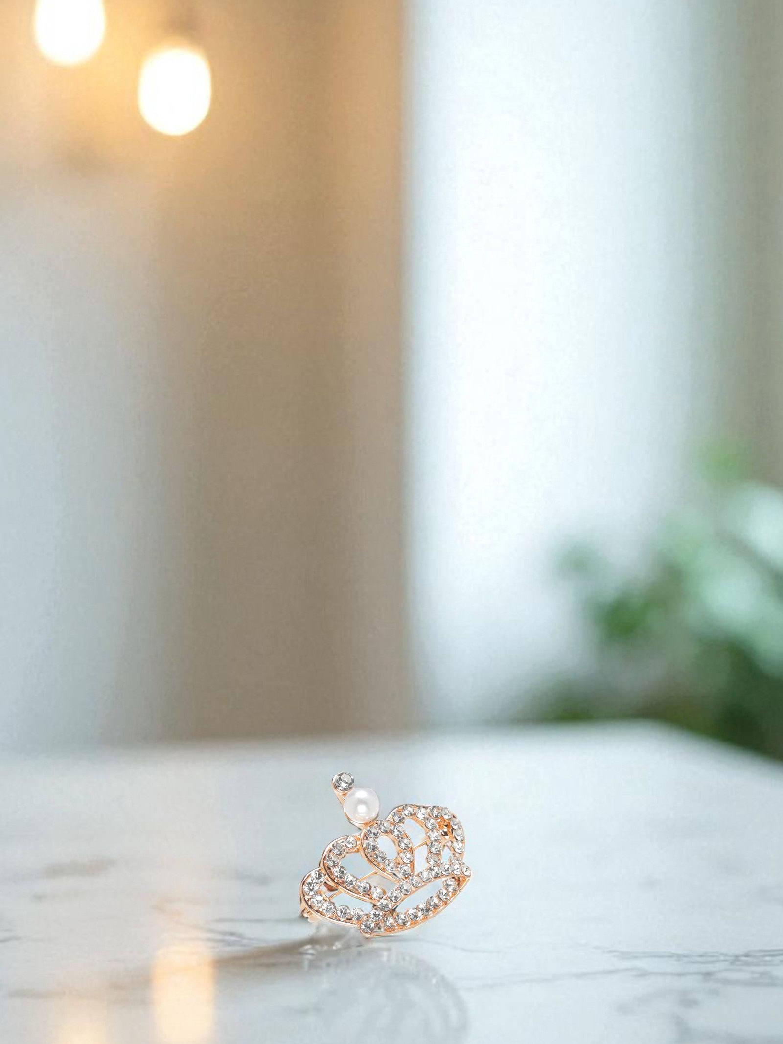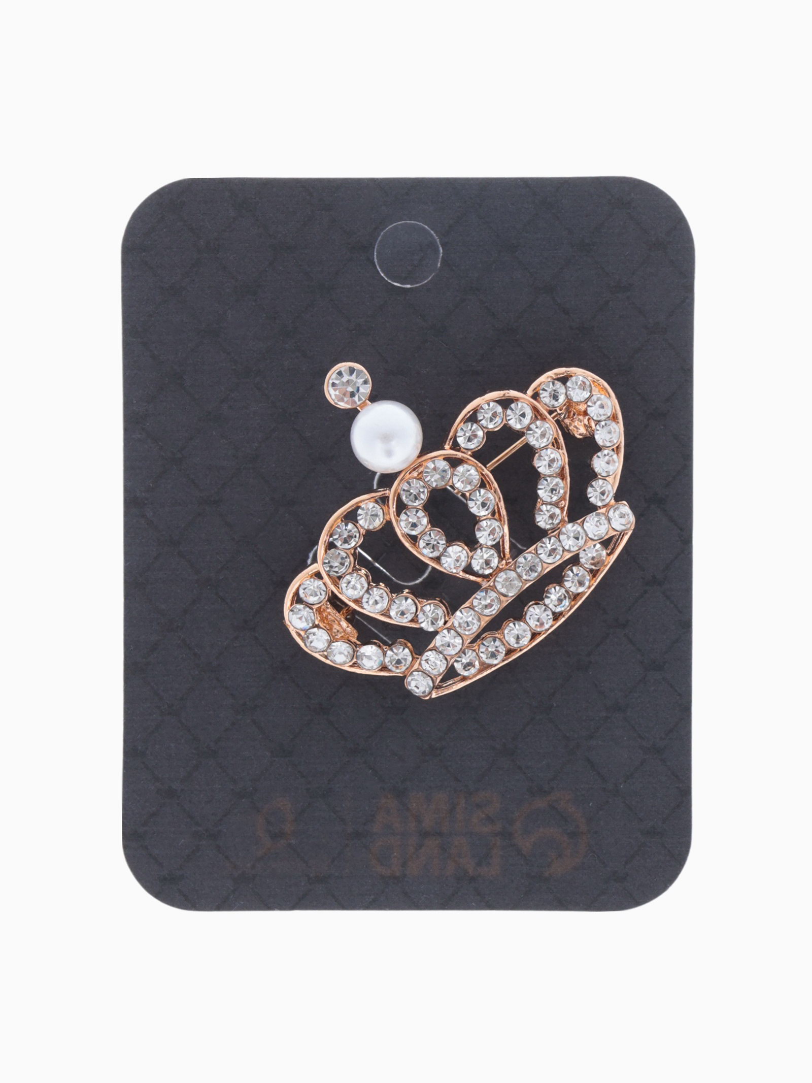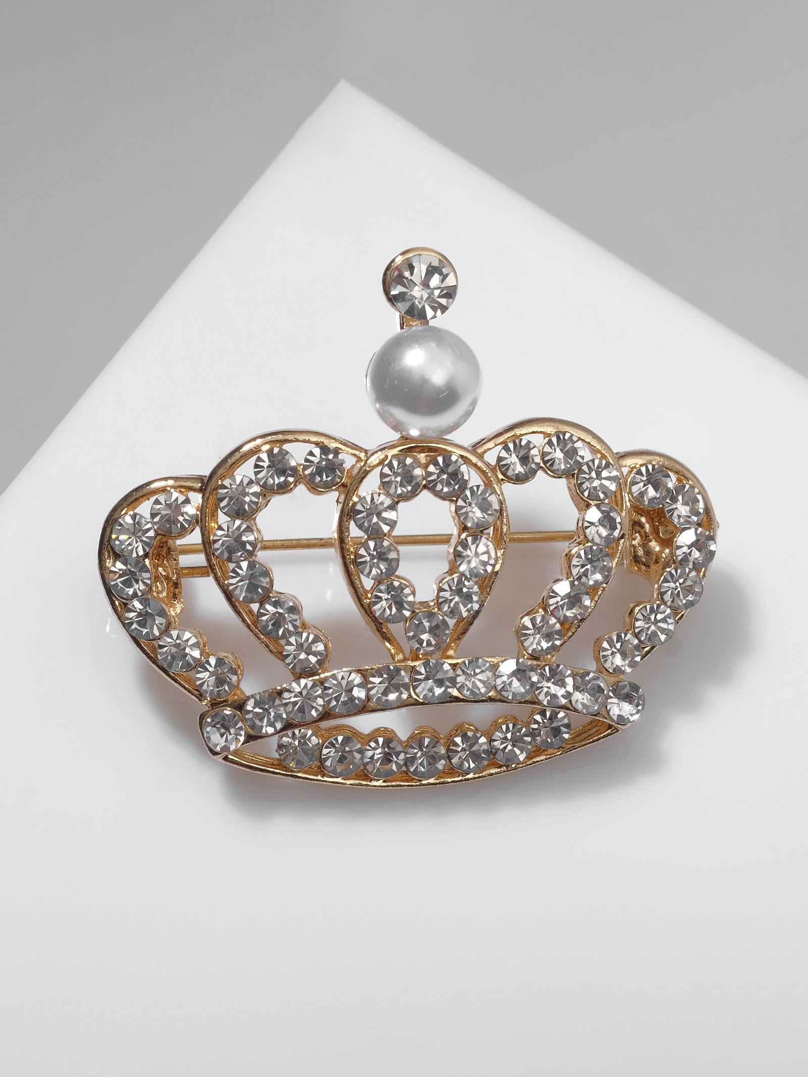 Брошь "Корона" монарха, цвет белый в золоте, 3.8x3.2x1 см., QF, Китай