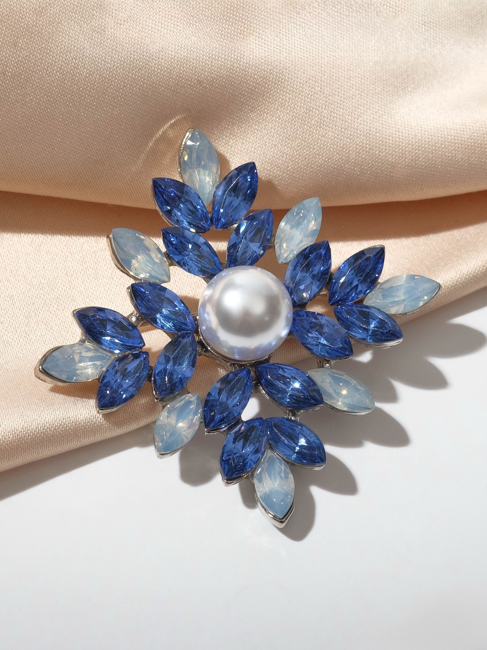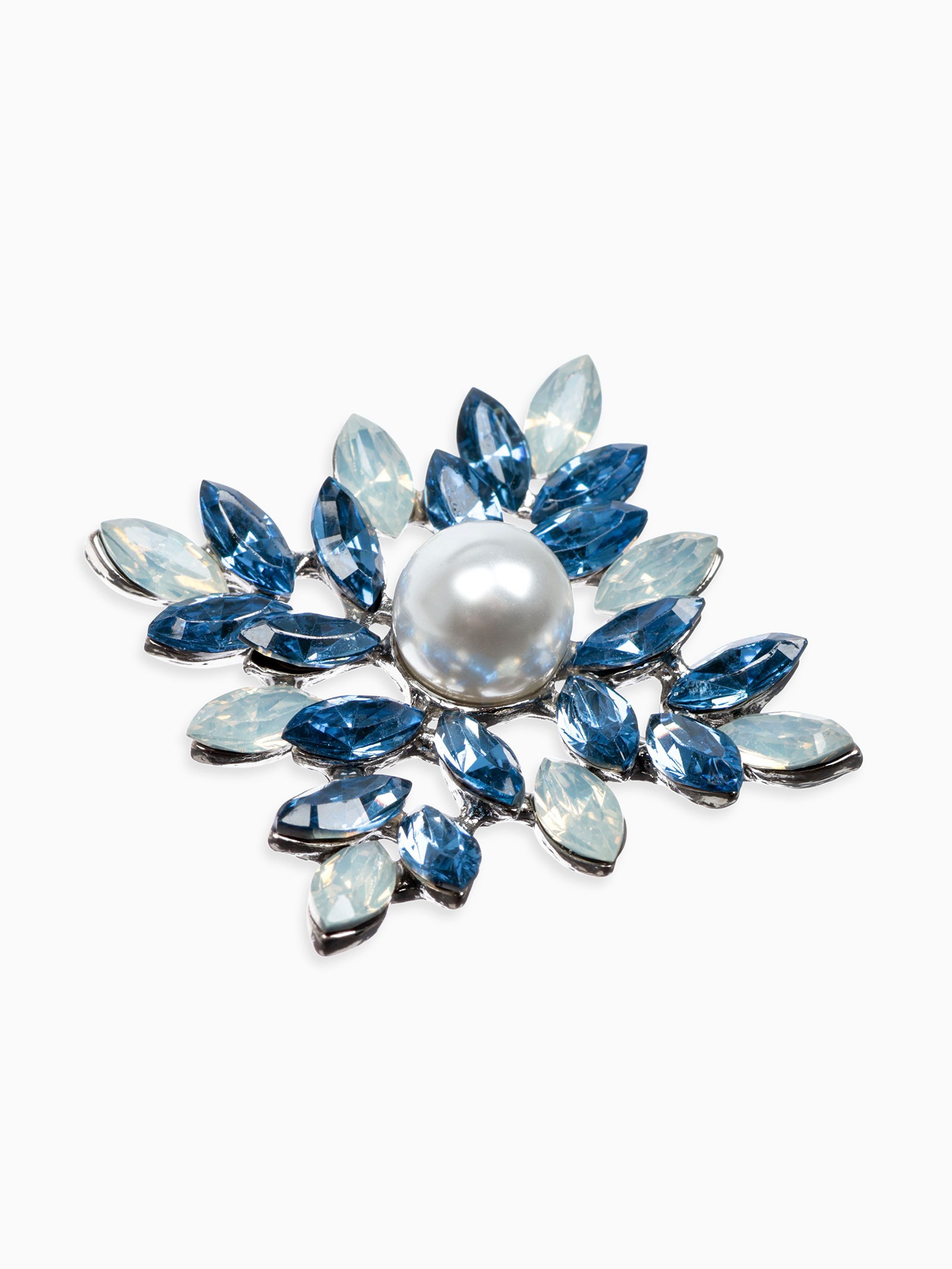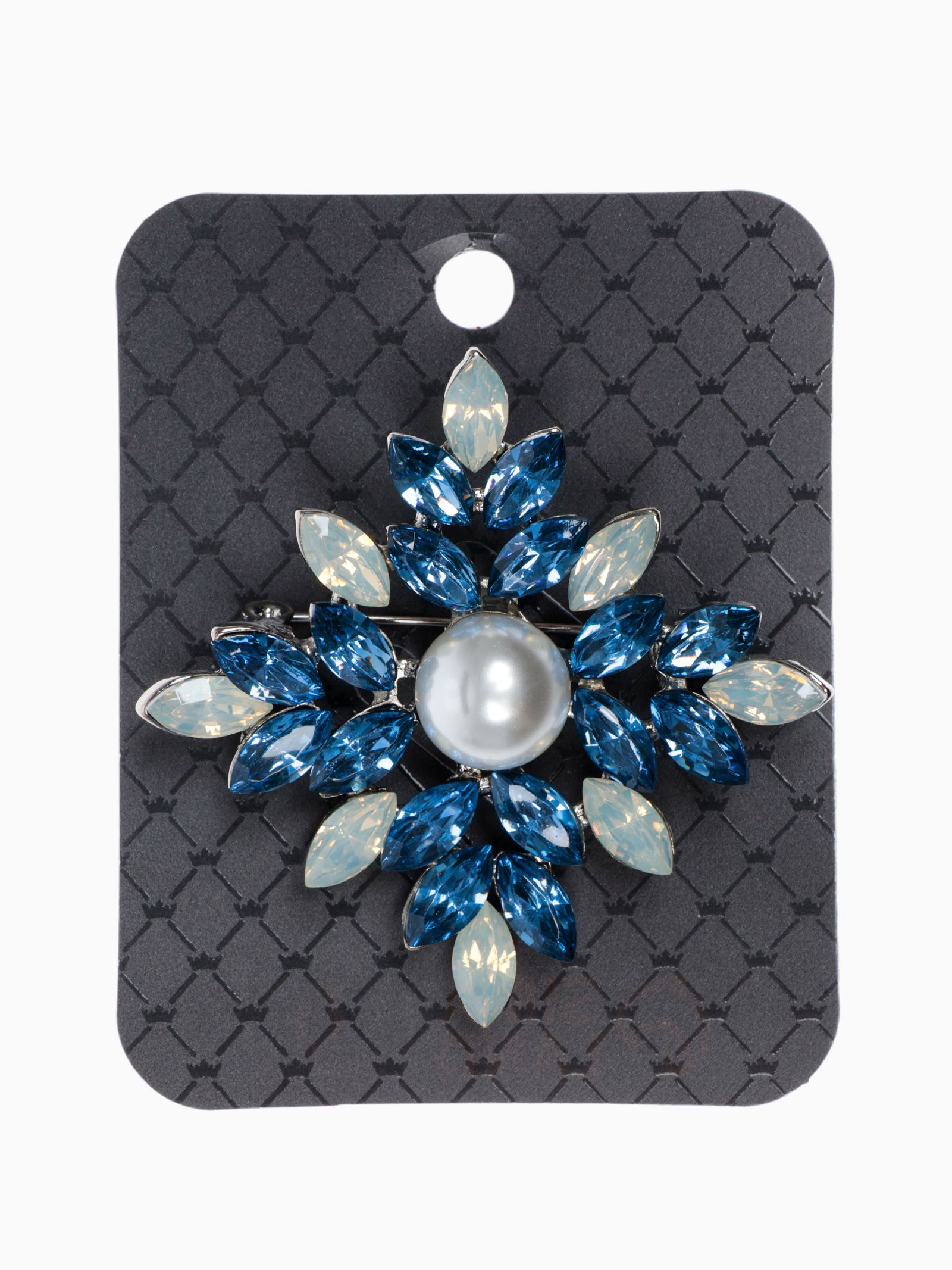 Брошь "Императрица" ромб, цвет бело-синий в серебре, 4.5x4.5x1.5 см., QF, Китай