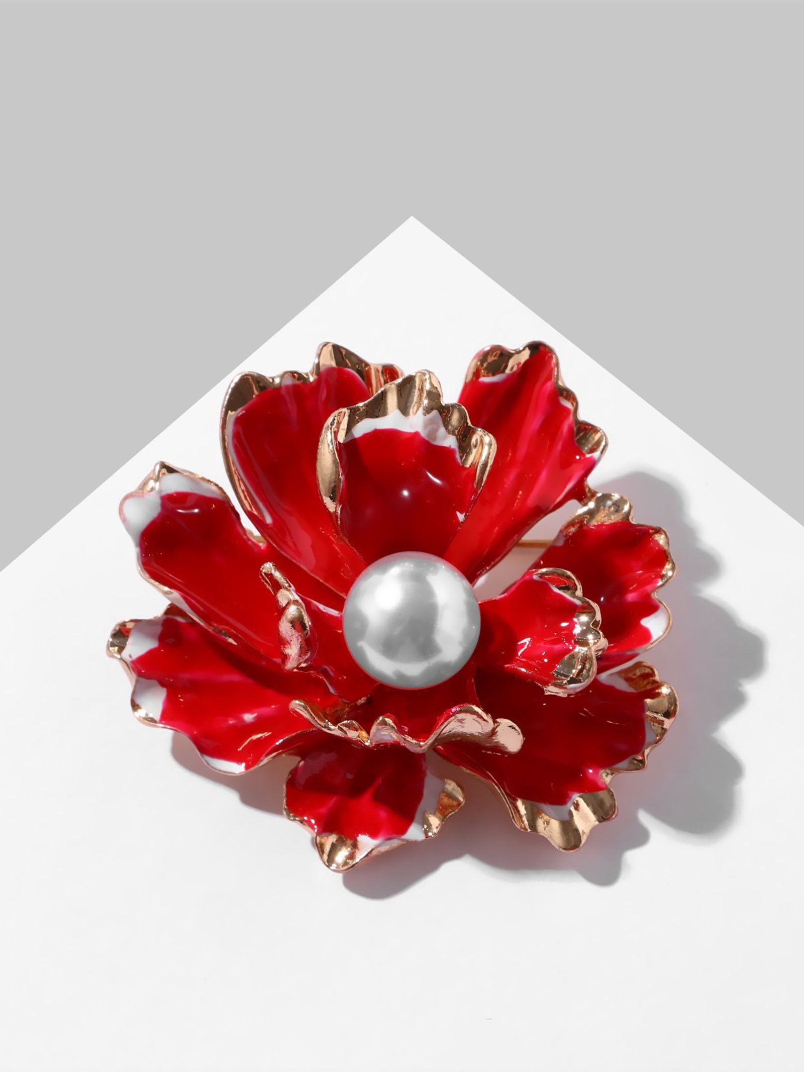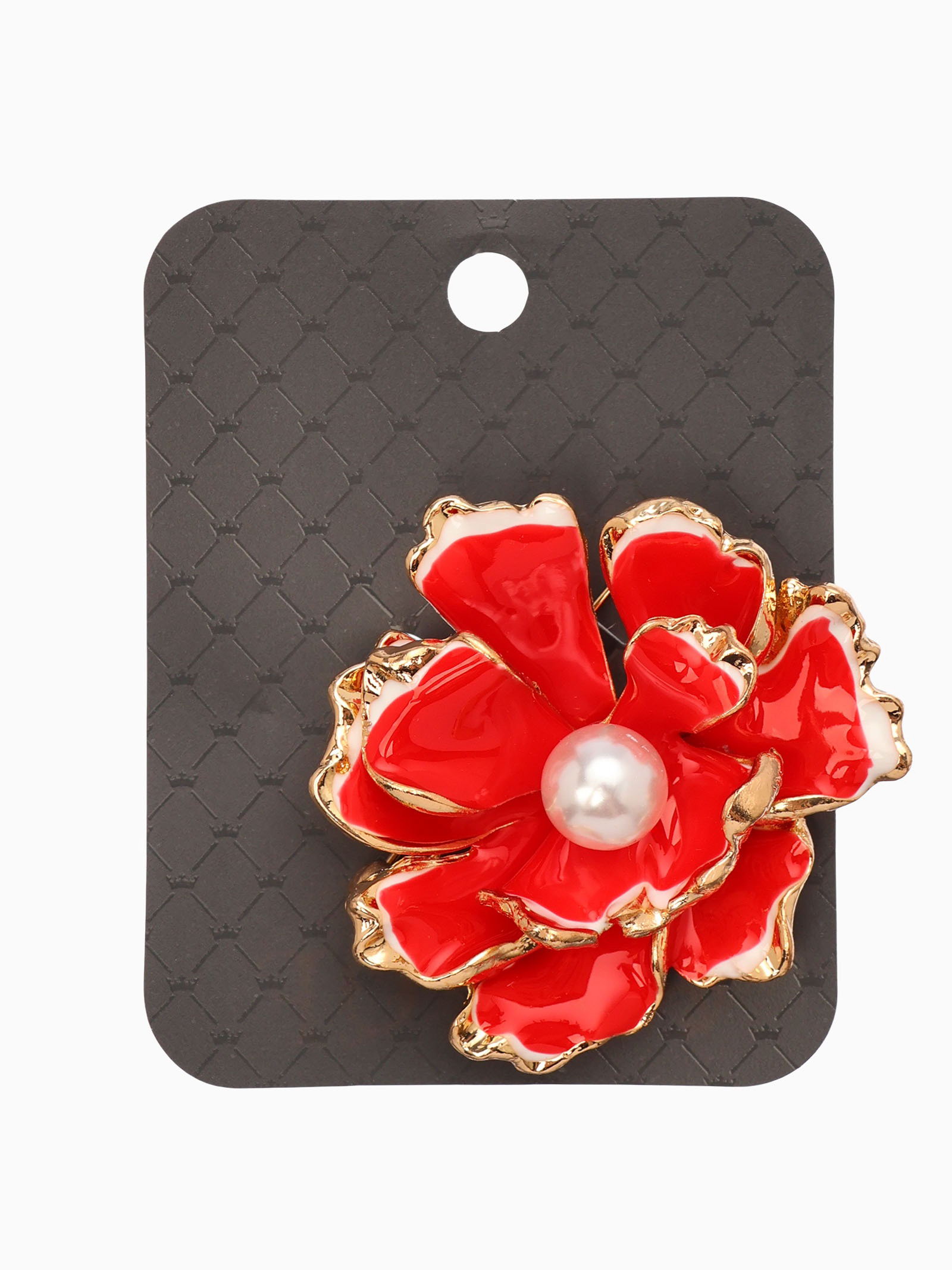 Брошь "Цветок" морской, цвет красно-белый в золоте, 5x5x2 см., QF, Китай