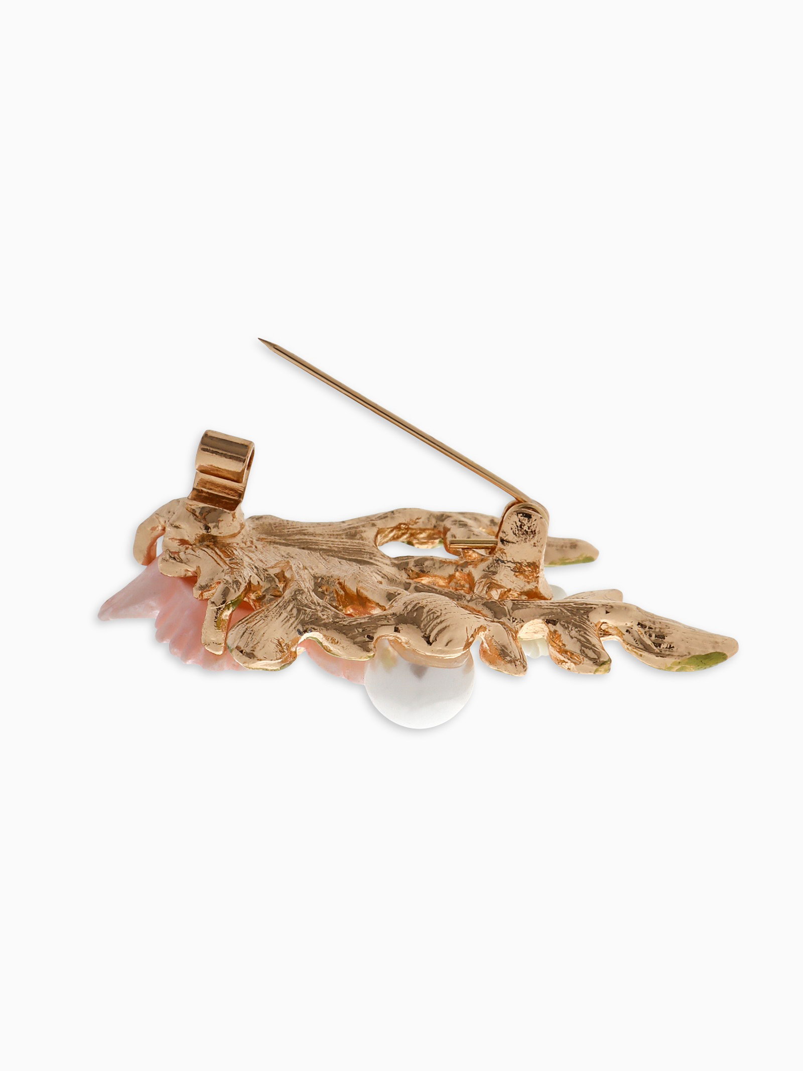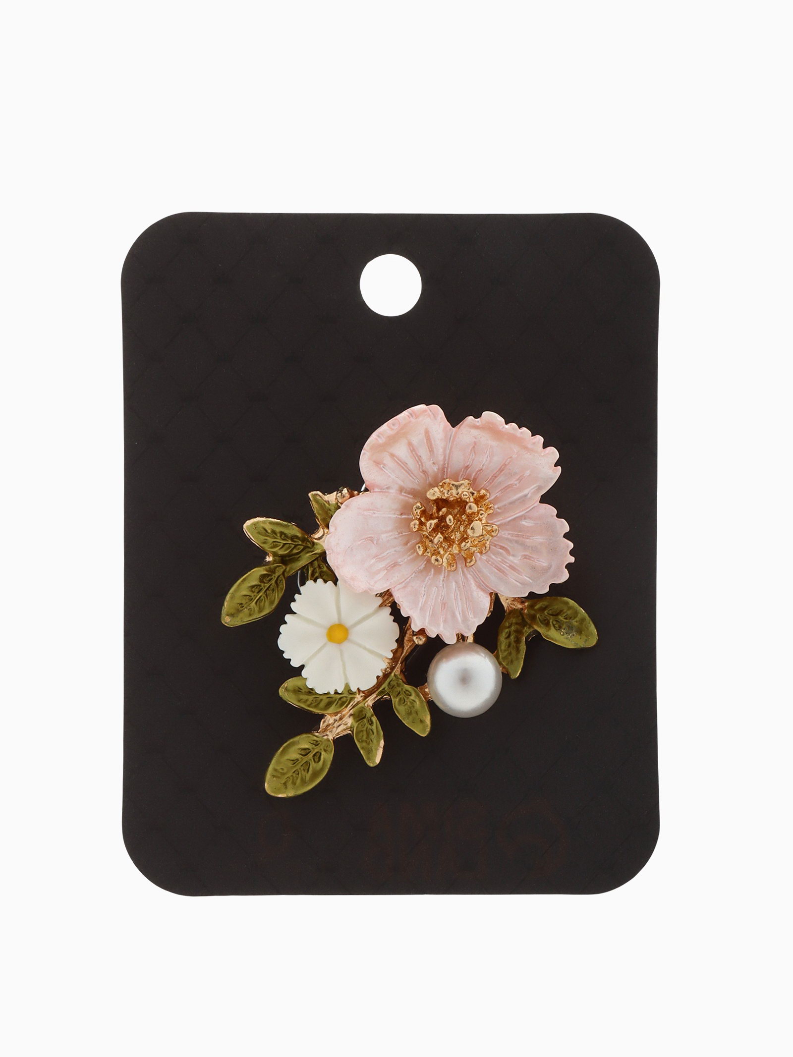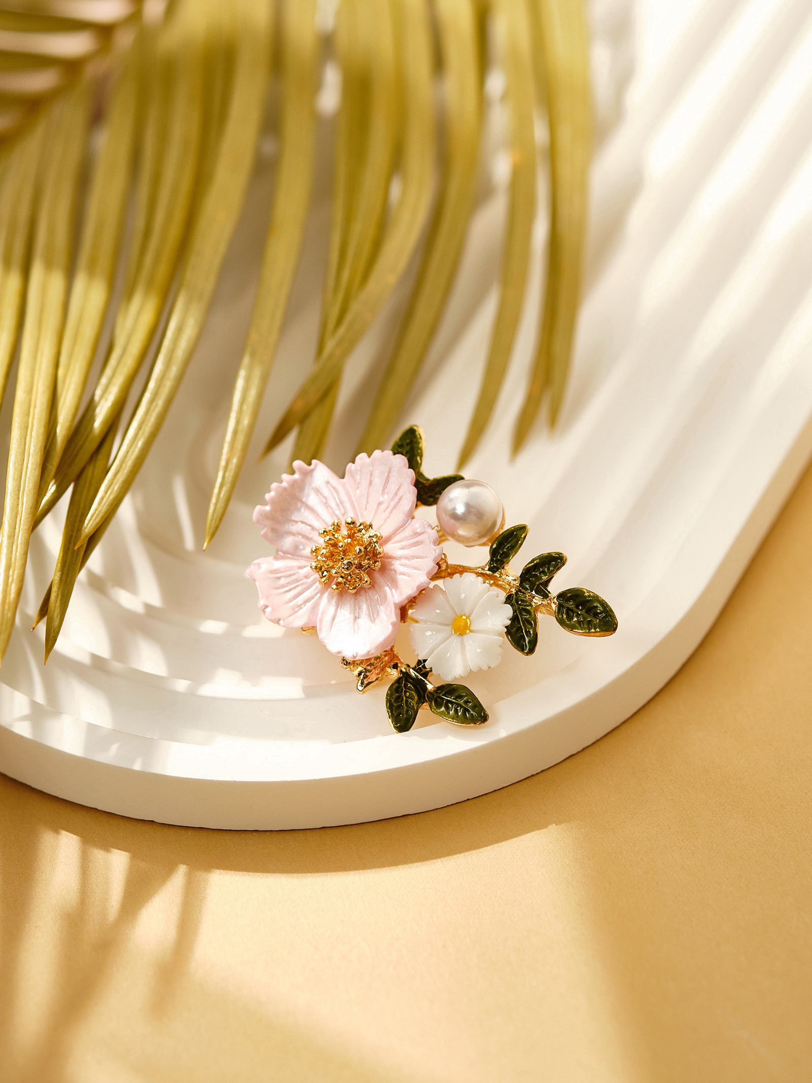 Брошь "Цветы" на ветке, цвет розово-белый в золоте, 4.5x4x1.4 см., QF, Китай