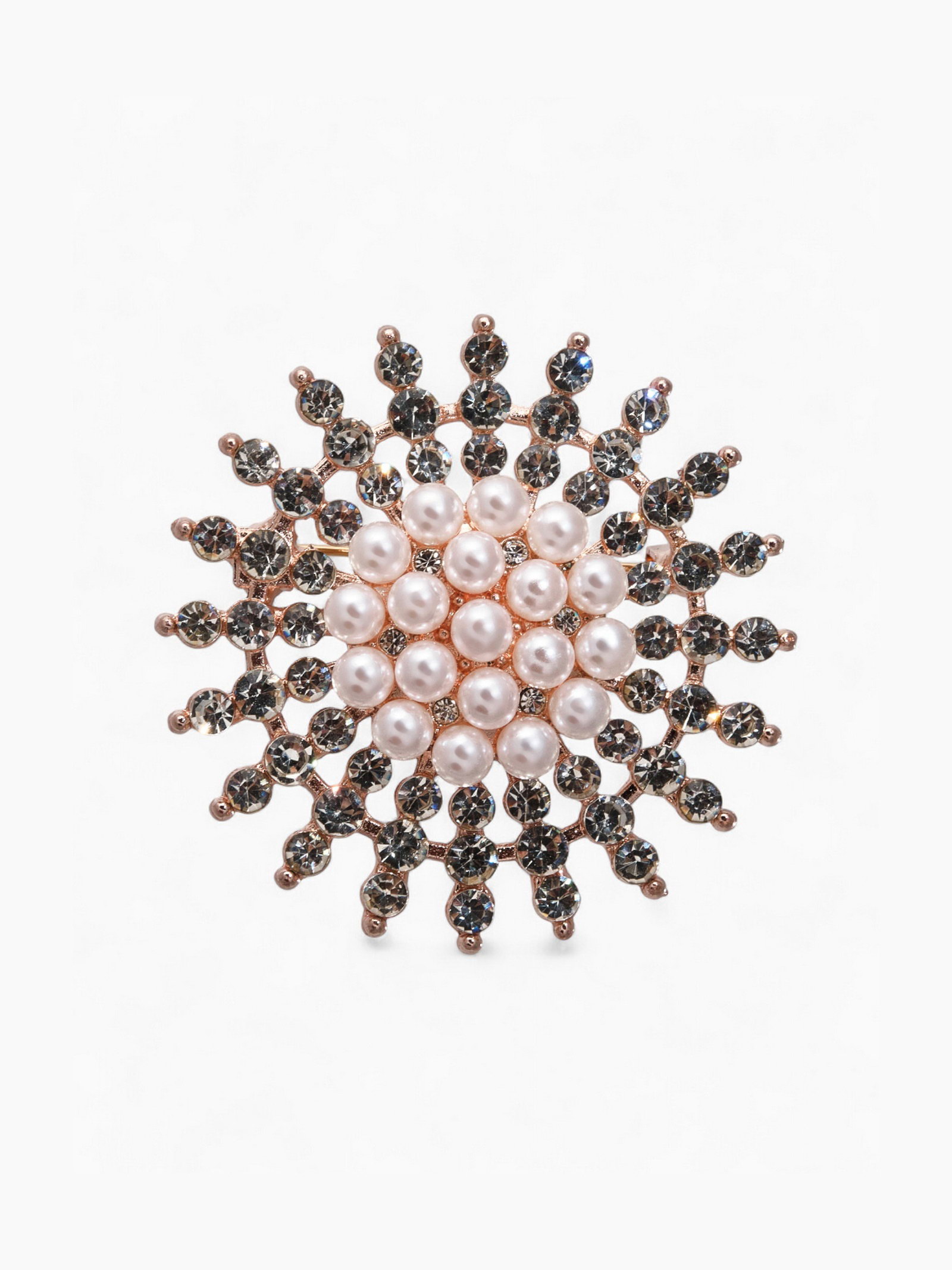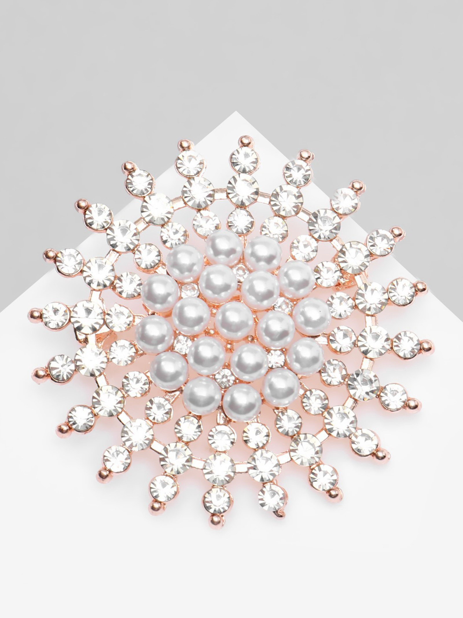 Брошь "Жемчужное сияние", цвет белый в розовом золоте, 4.5x4.5x2 см., QF, Китай