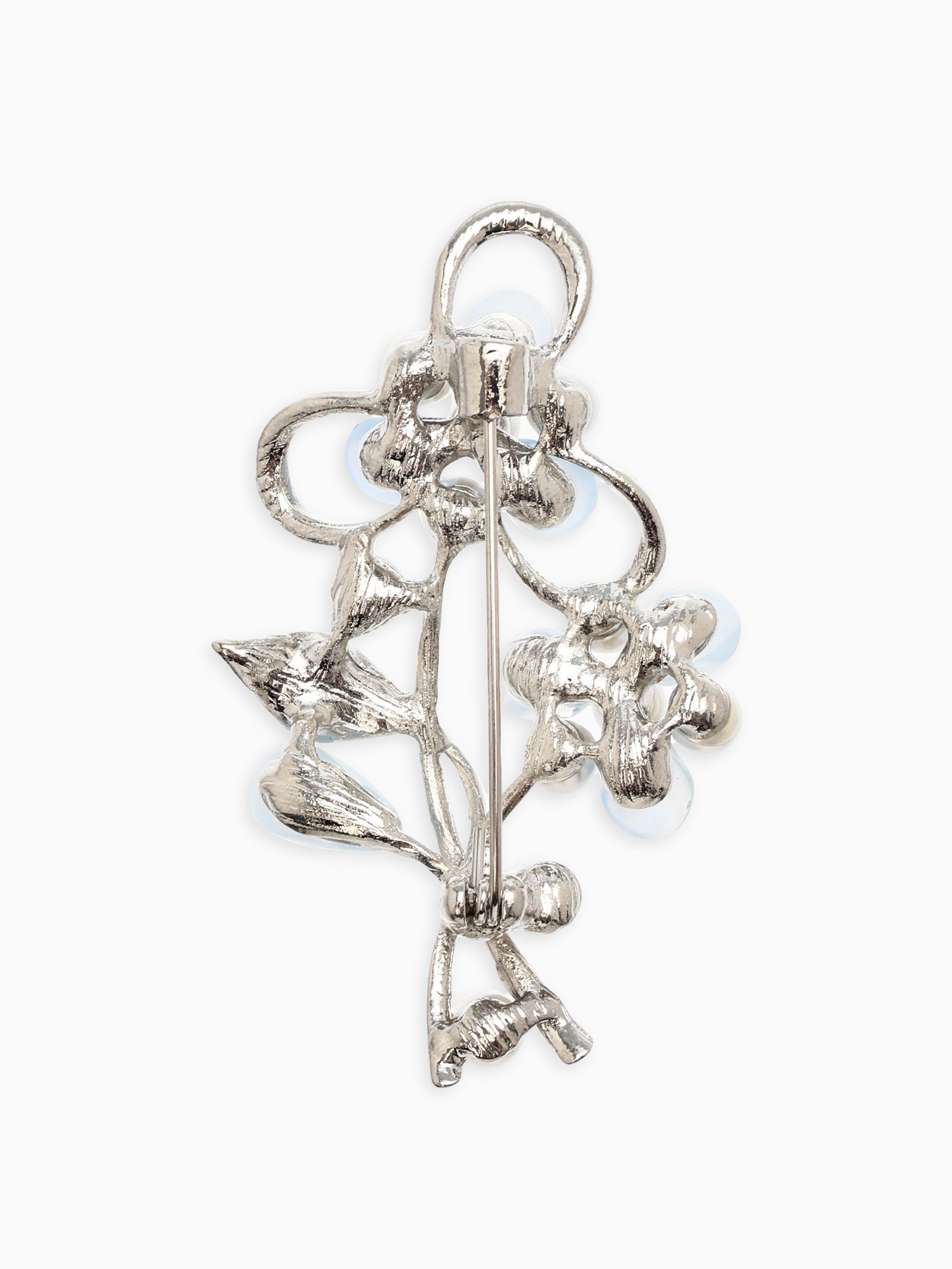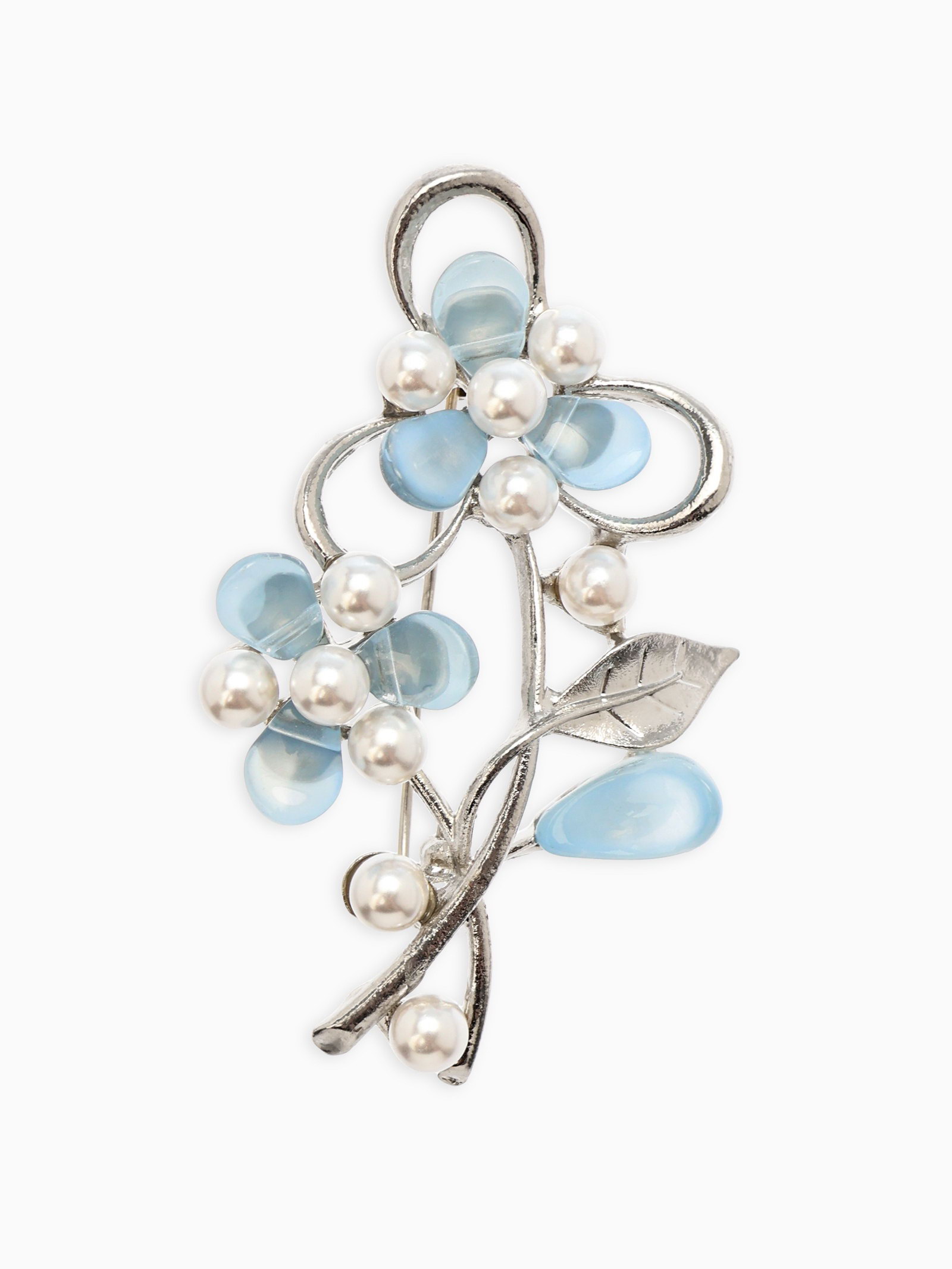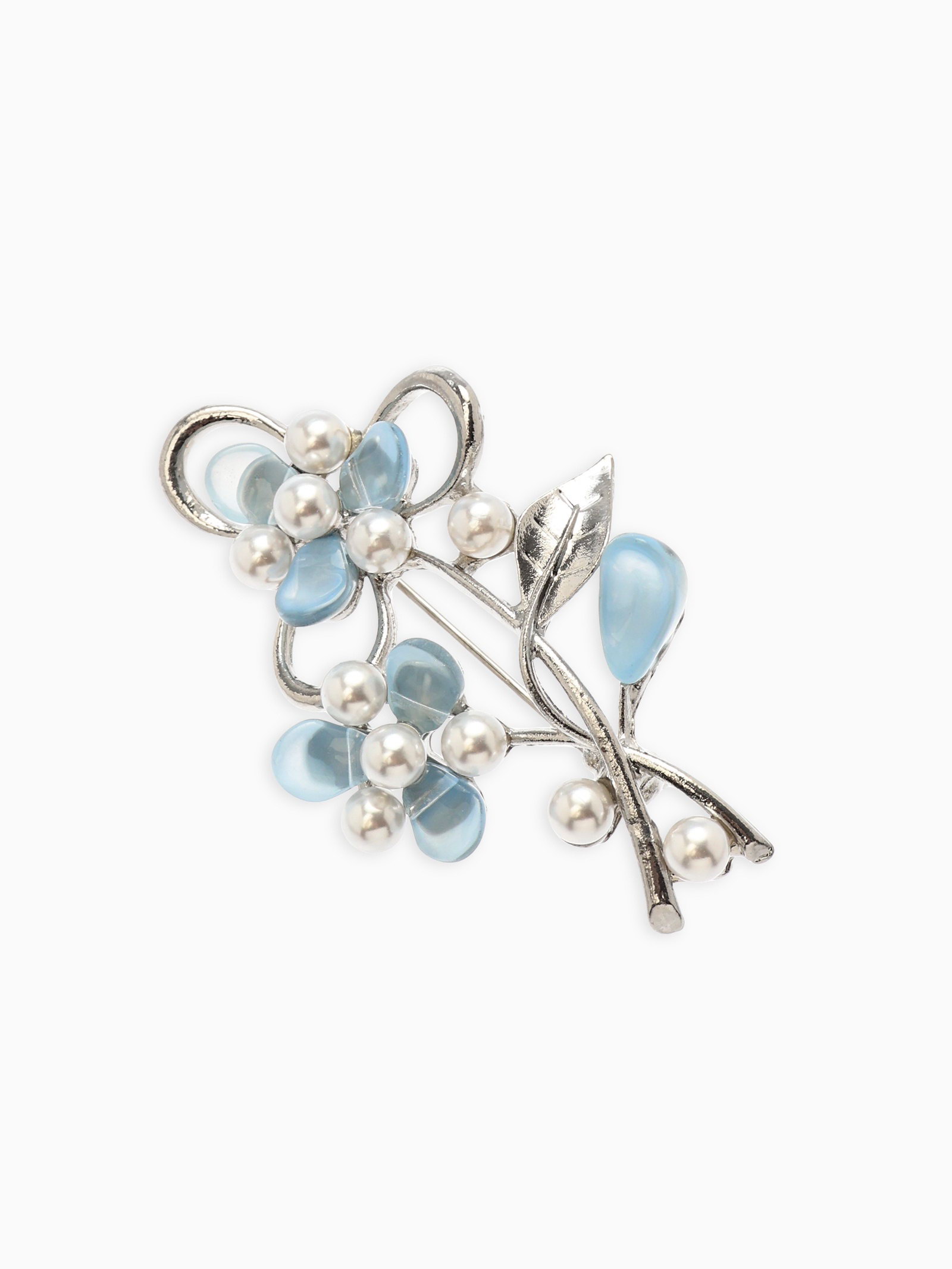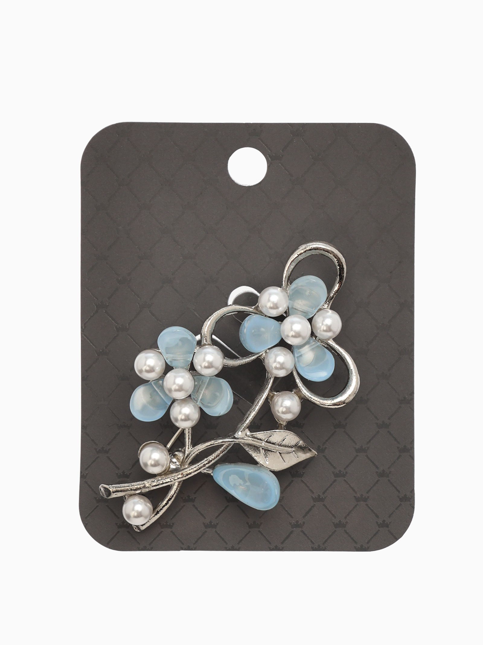 Брошь с жемчугом "Цветы", голубая в серебре, 3.5x6x2 см., QF, Китай
