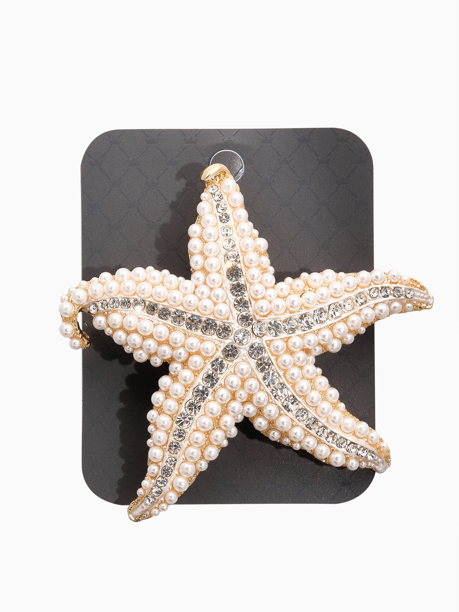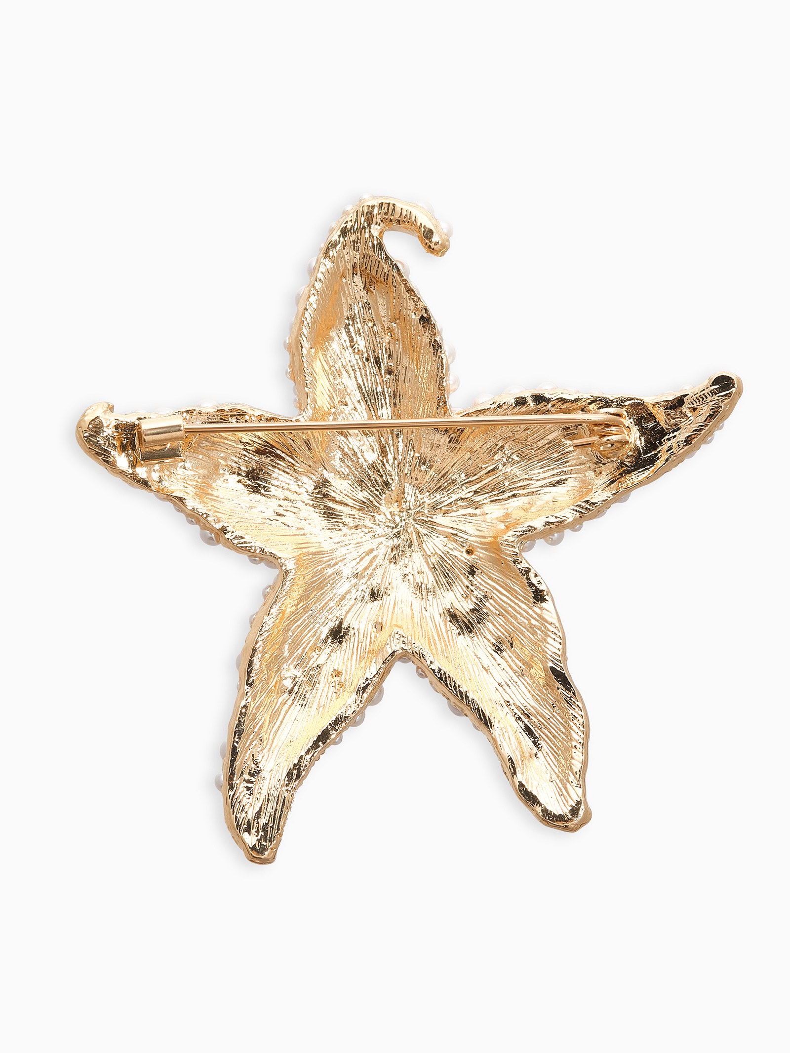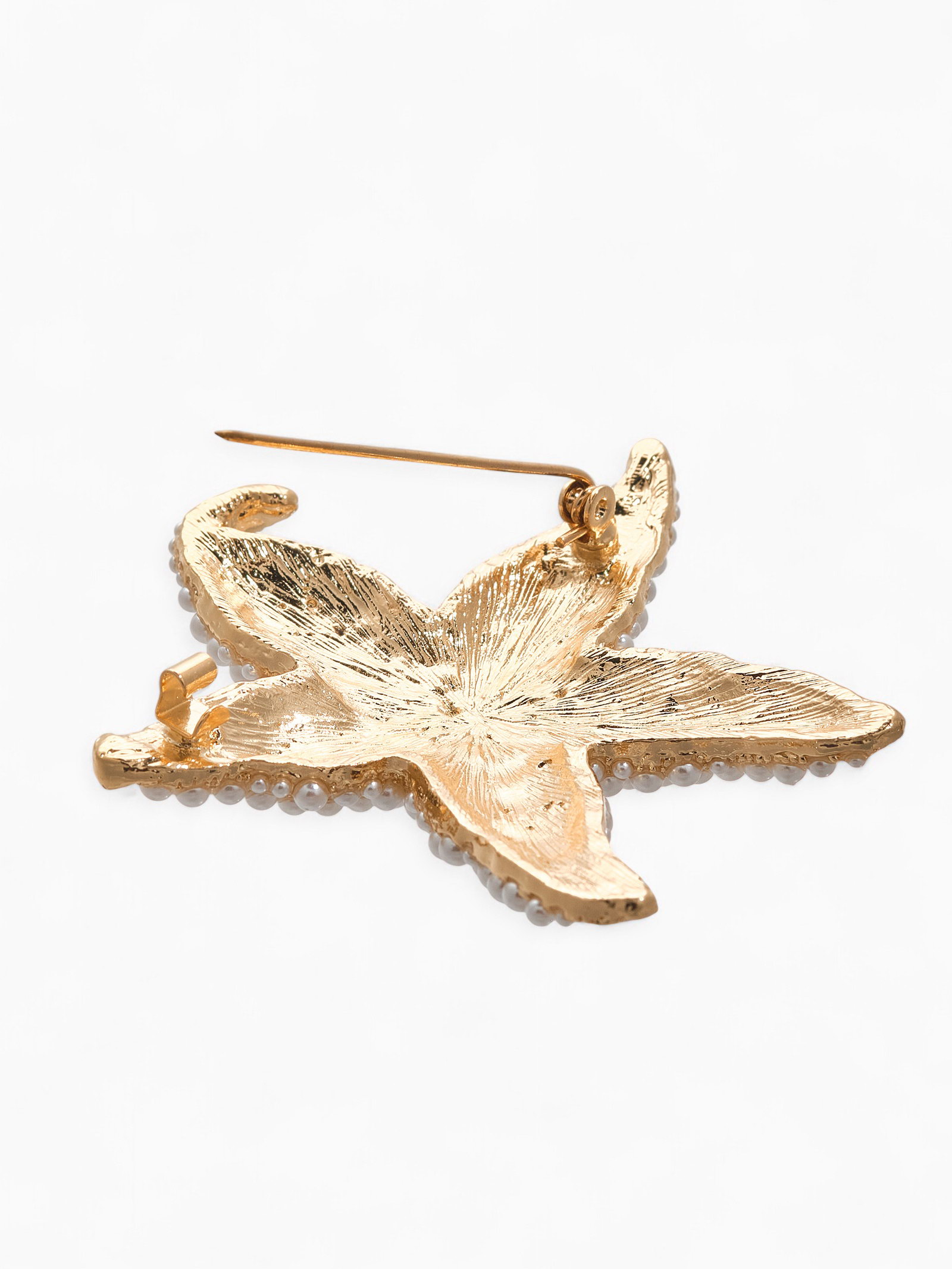 Брошь "Морская звезда", белая в золоте, 6.5x7x2 см., QF, Китай