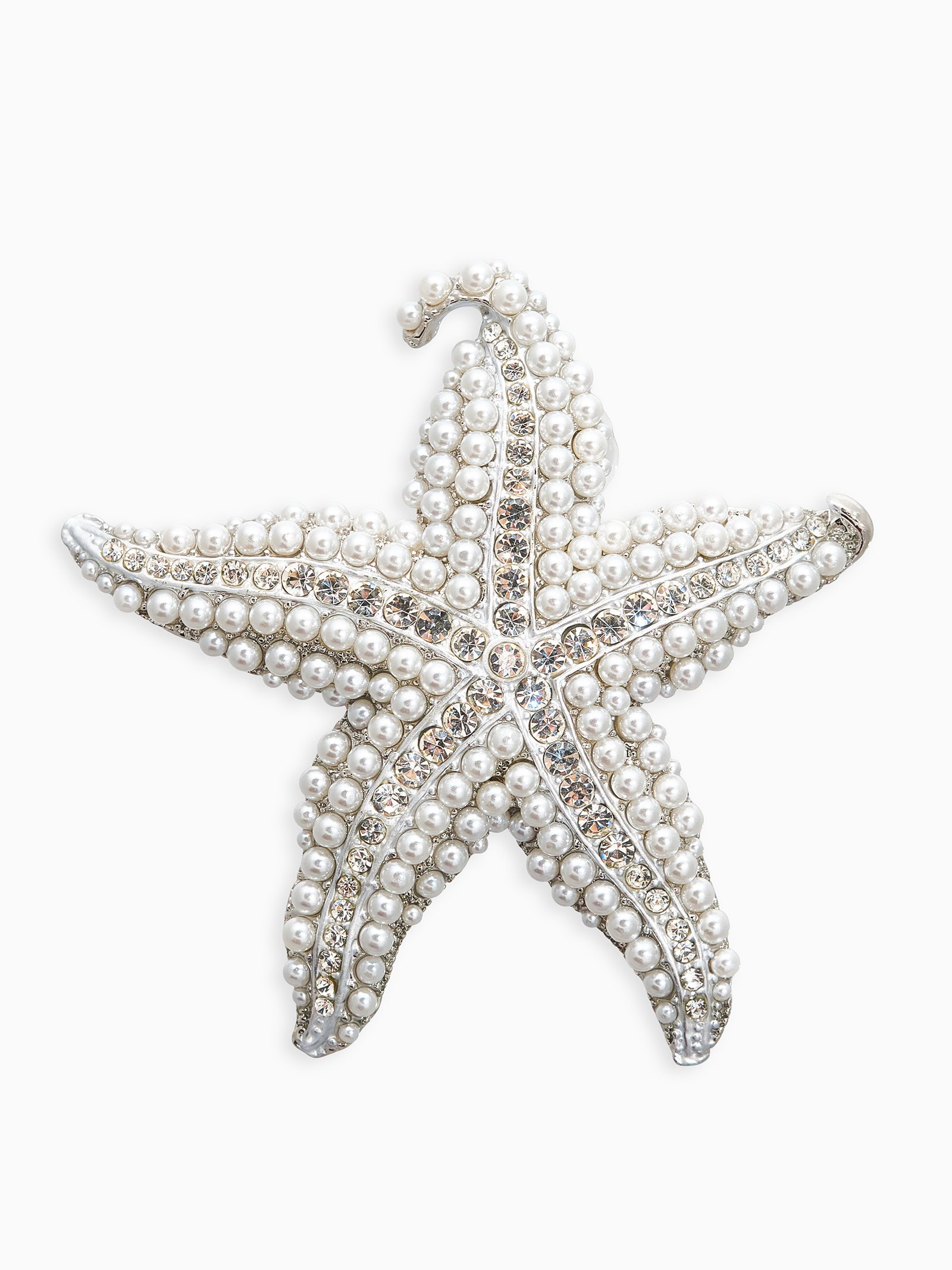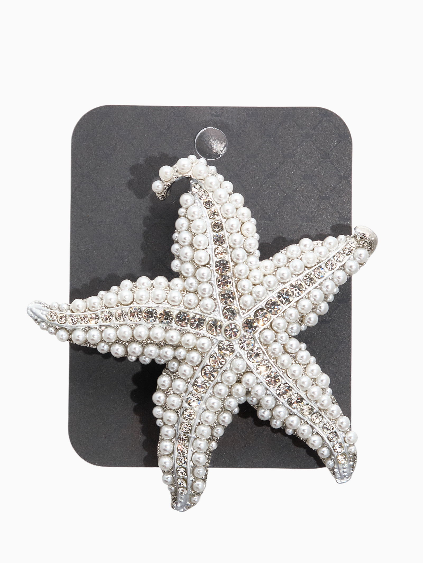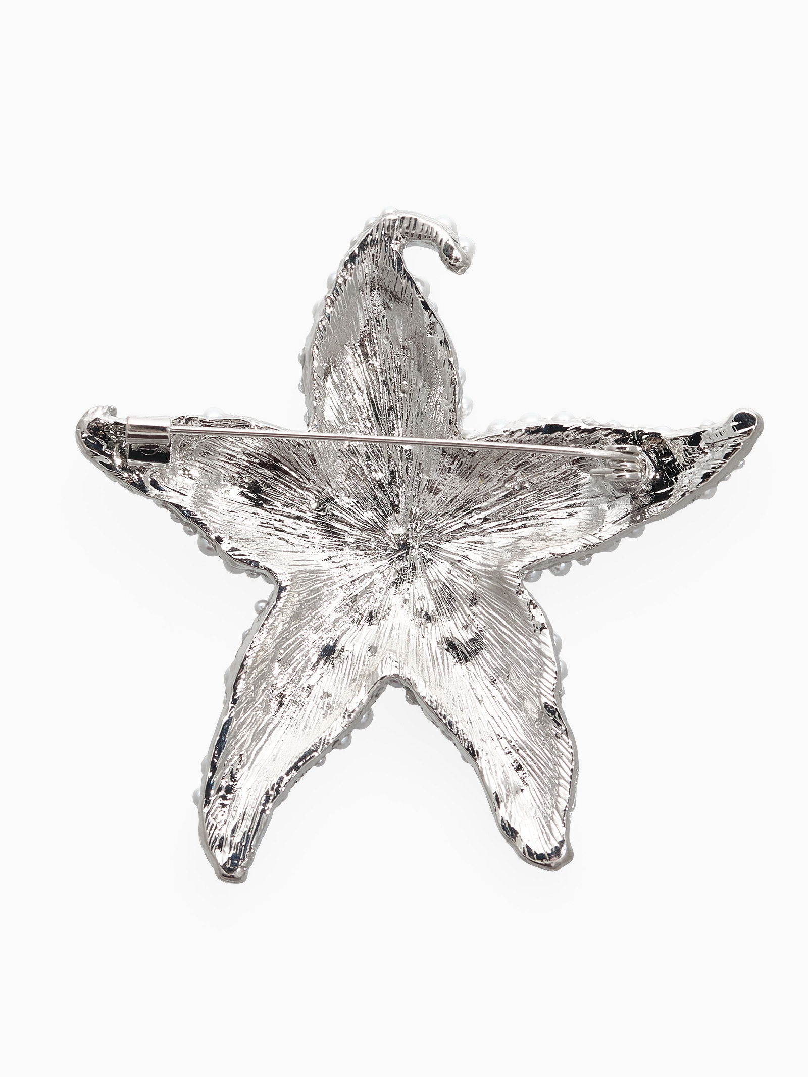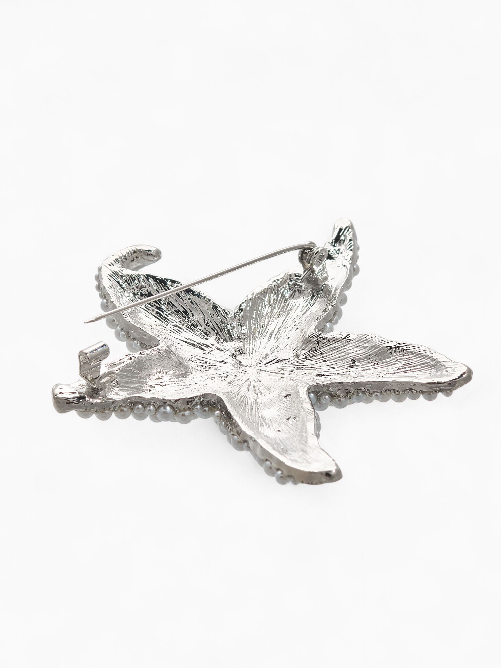 Брошь "Морская звезда", белая в серебре, 6.5x7x2 см., QF, Китай