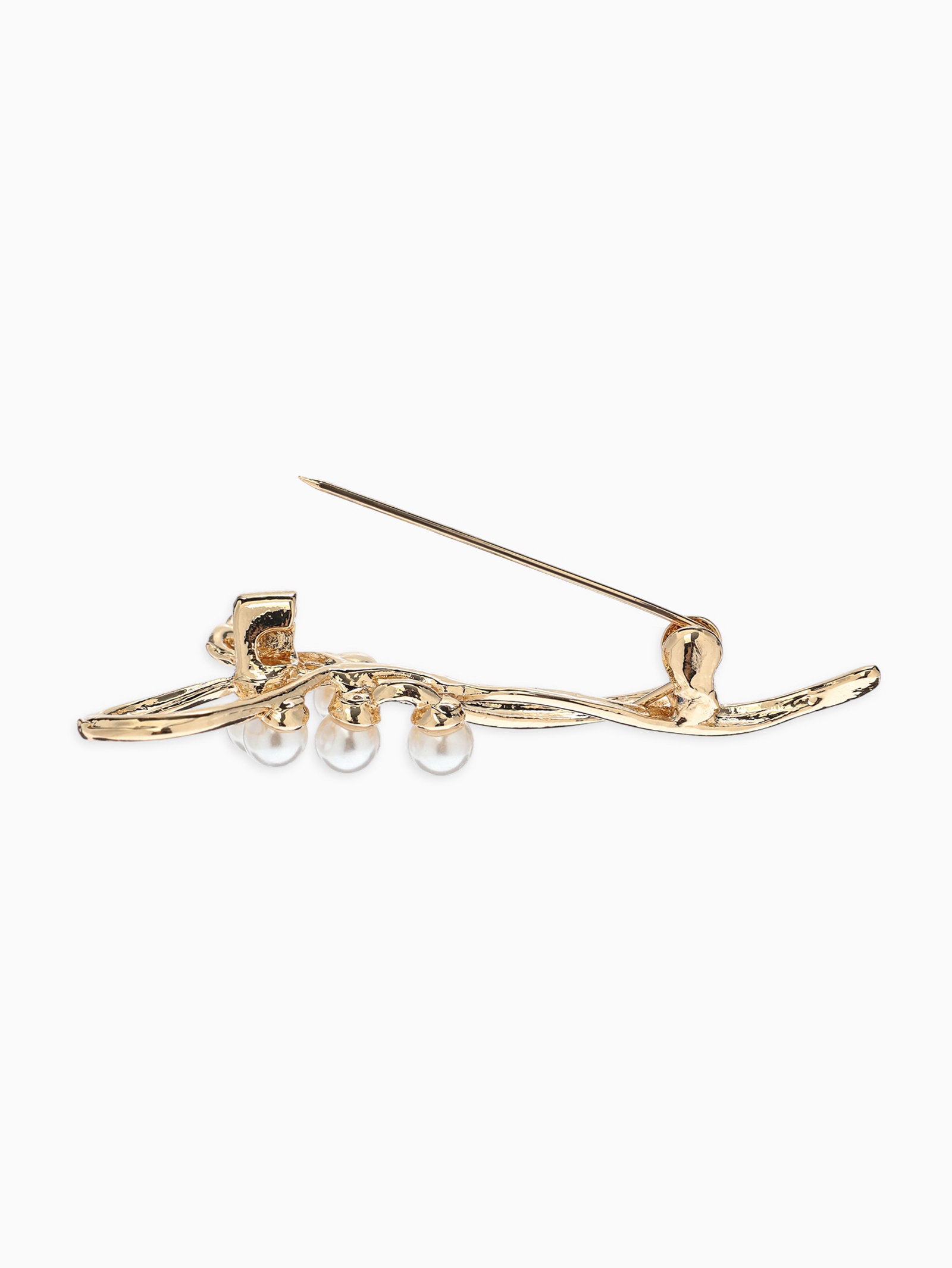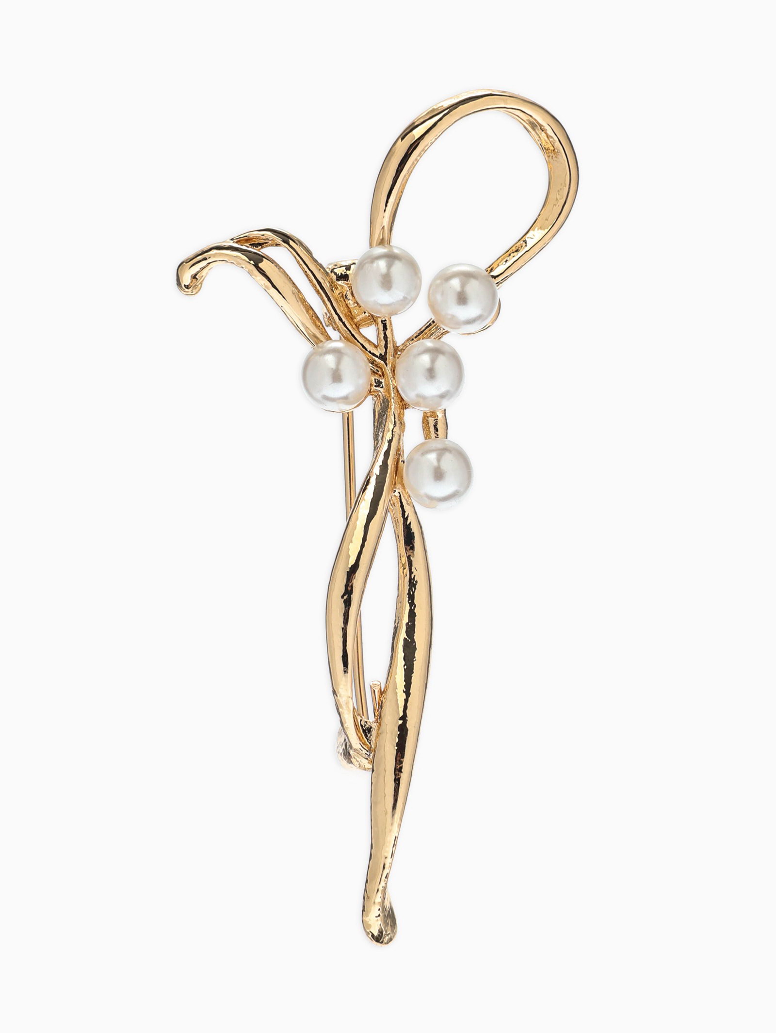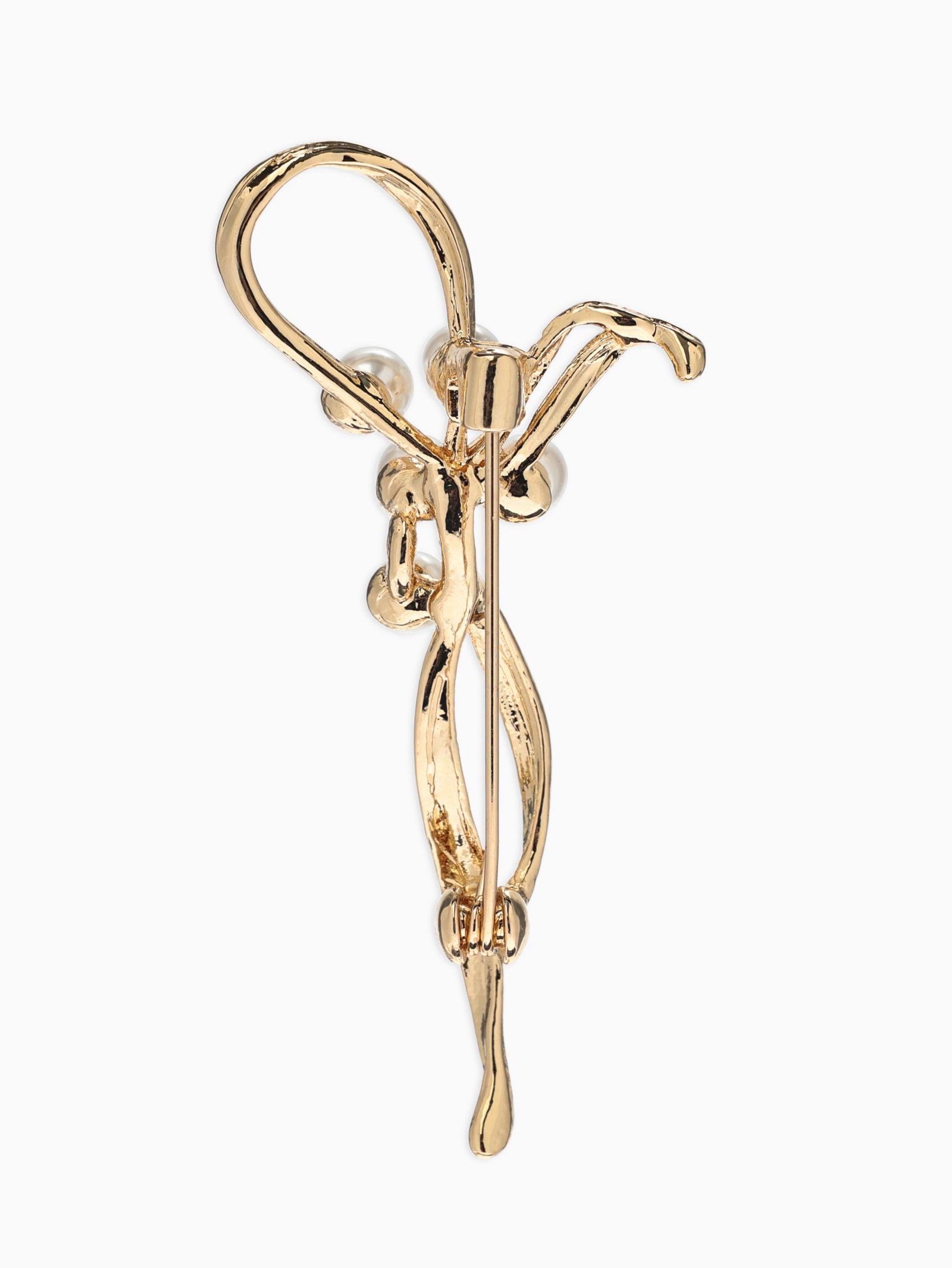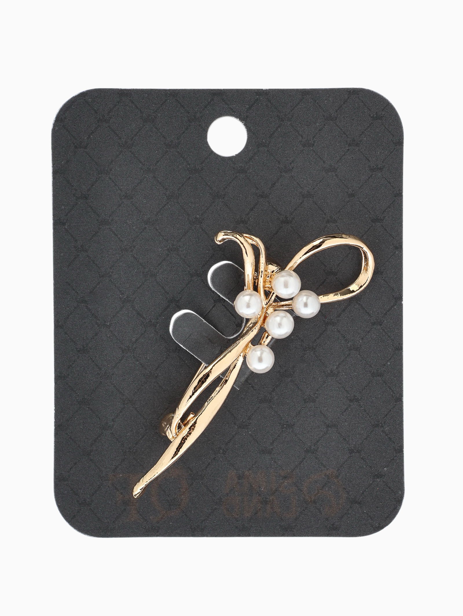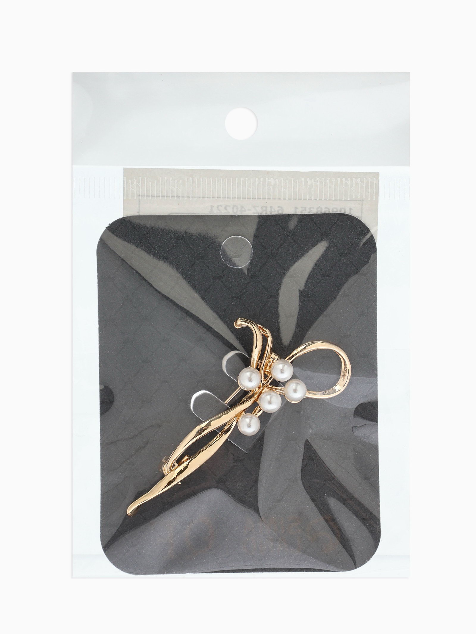 Брошь "Бантик с жемчугом", белая в золоте, 2.5x5x1 см., QF, Китай