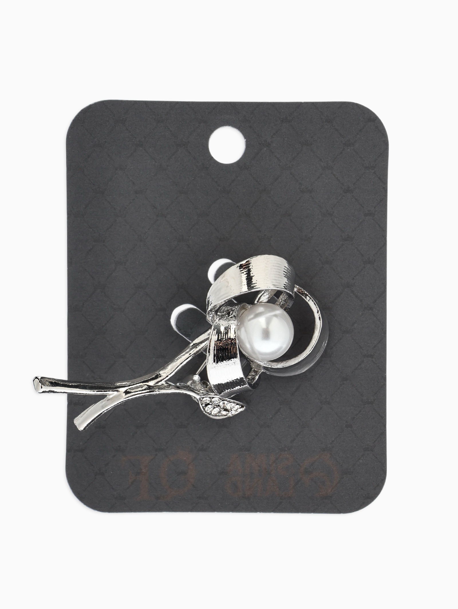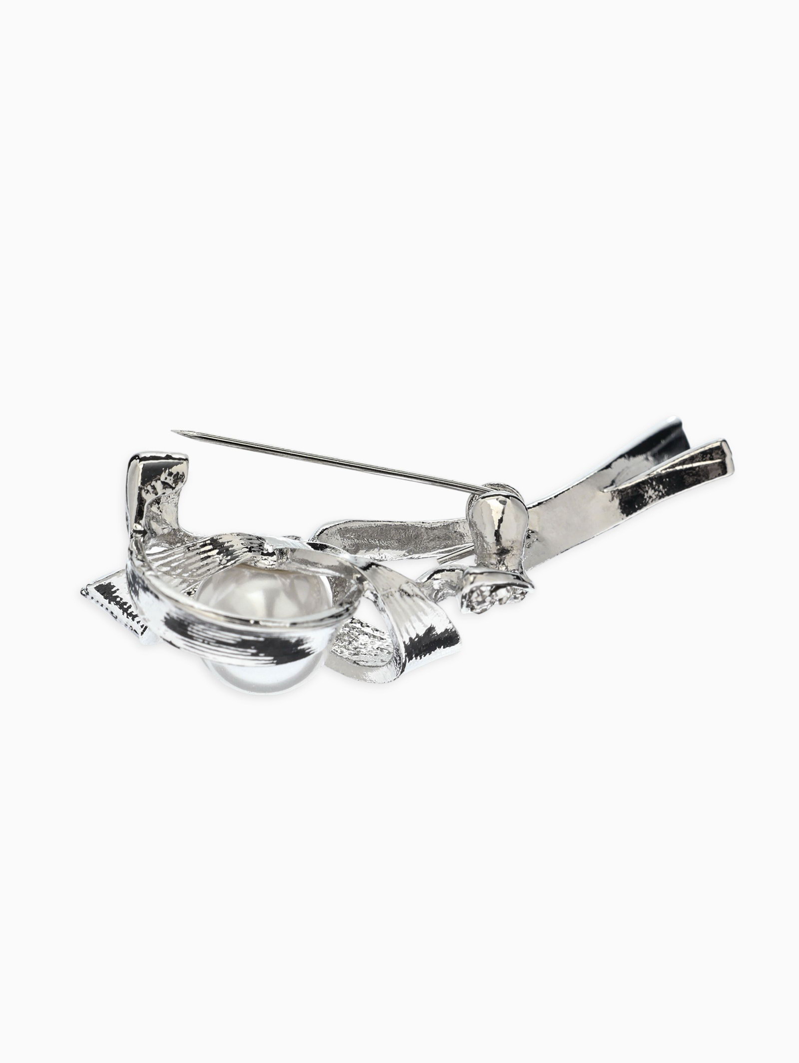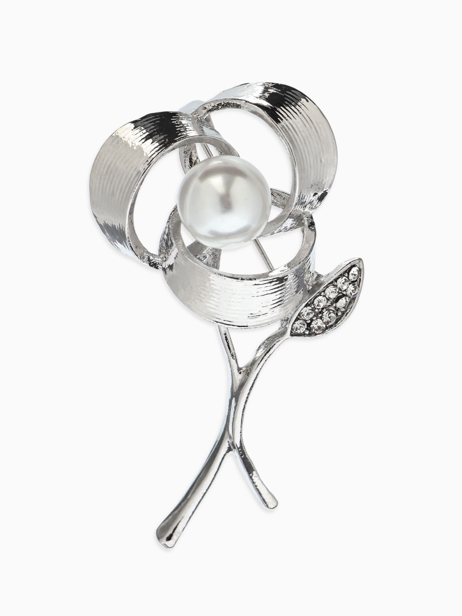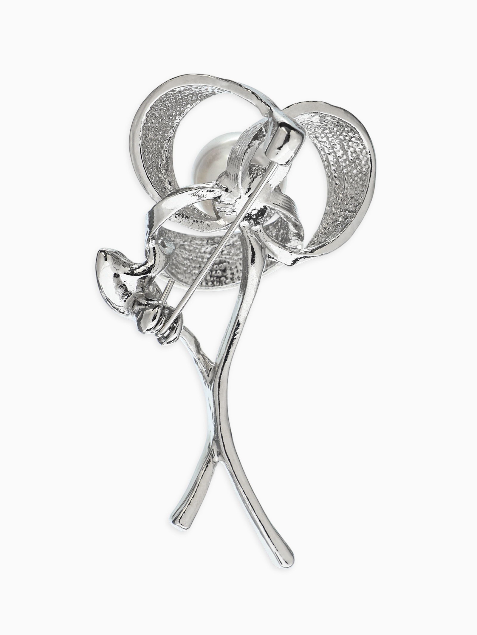 Брошь "Цветок Тринити с жемчугом", белая в серебре, 1.5x5x1.5 см., QF, Китай