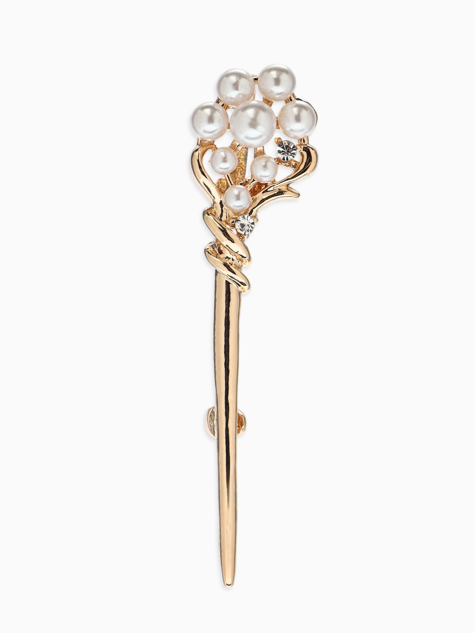 Брошь "Факел с жемчугом", белая в золоте, 1.3x5.5x1.5 см., QF, Китай