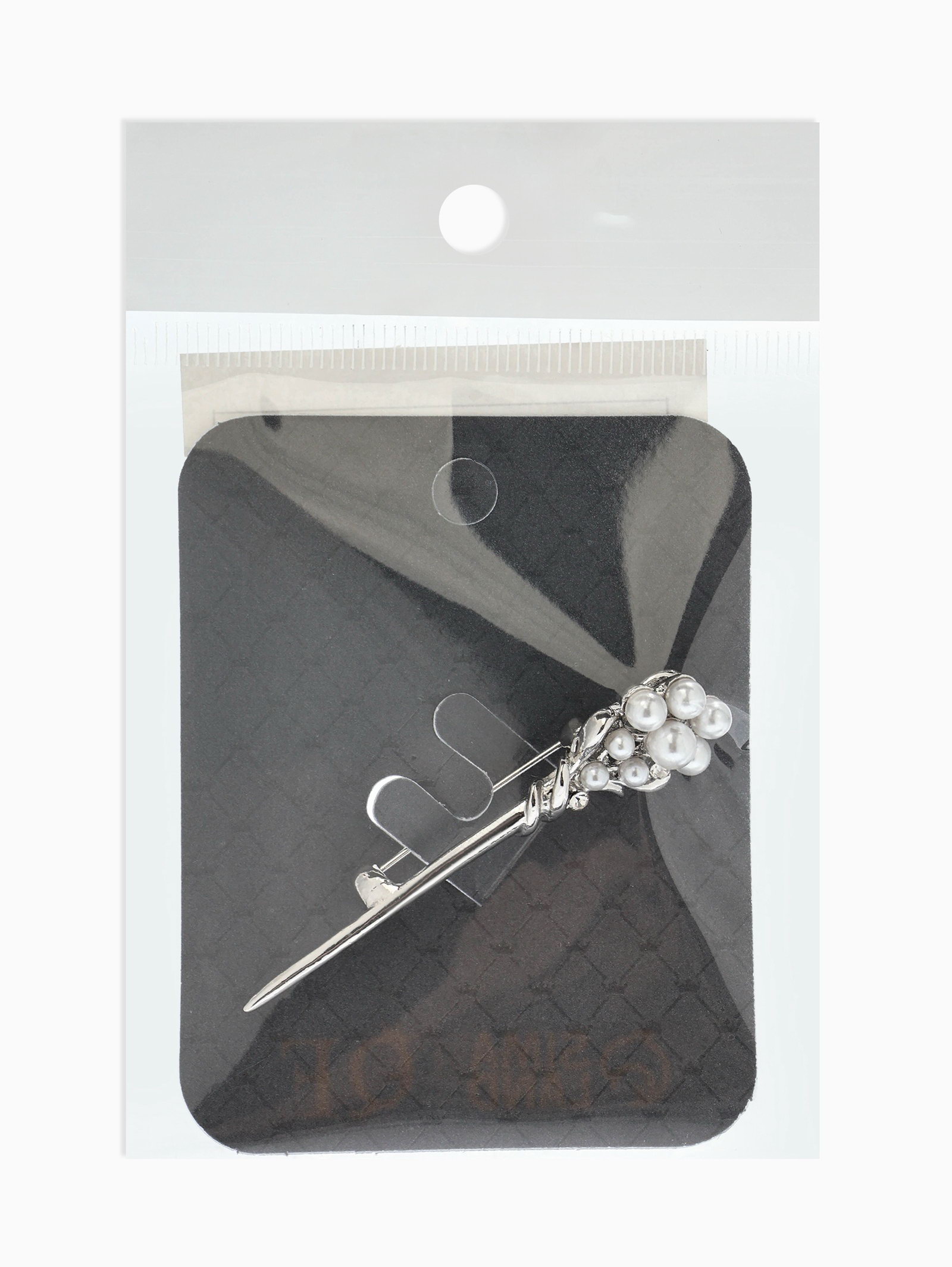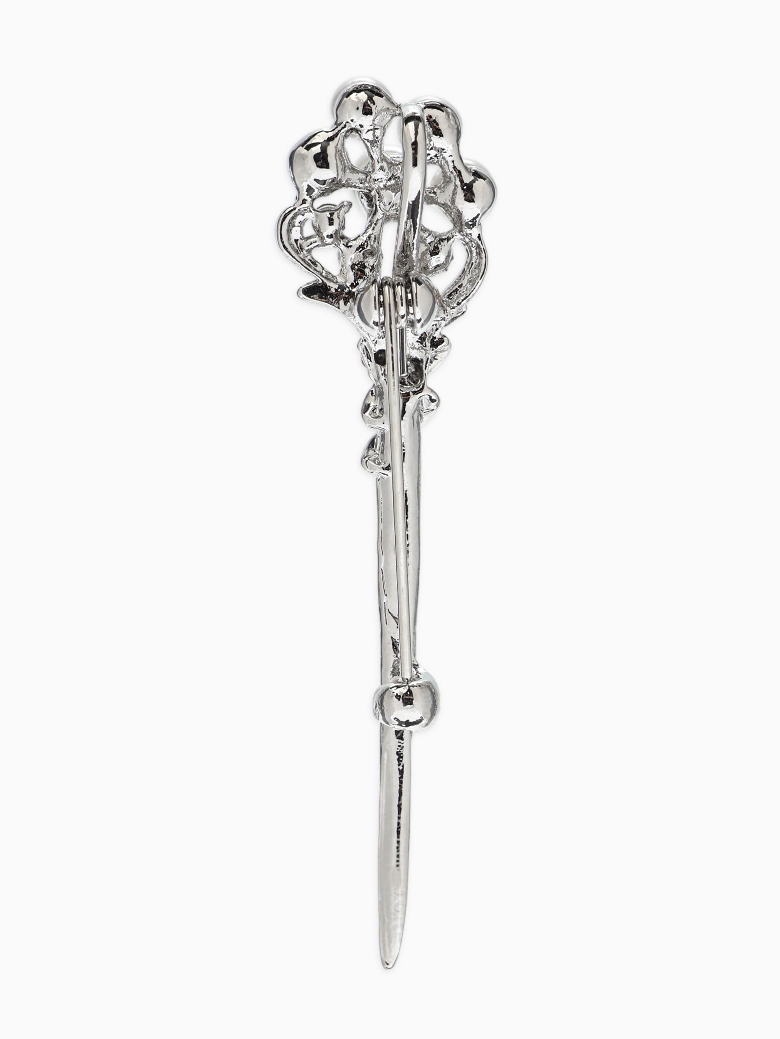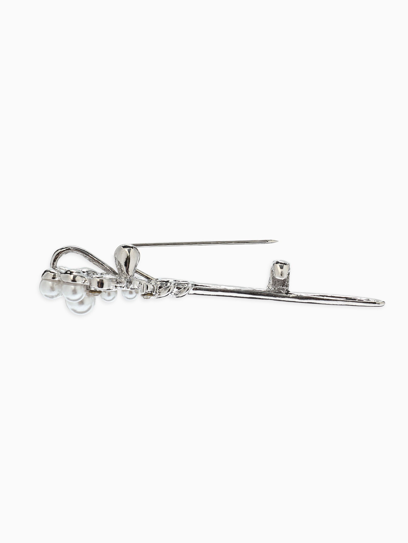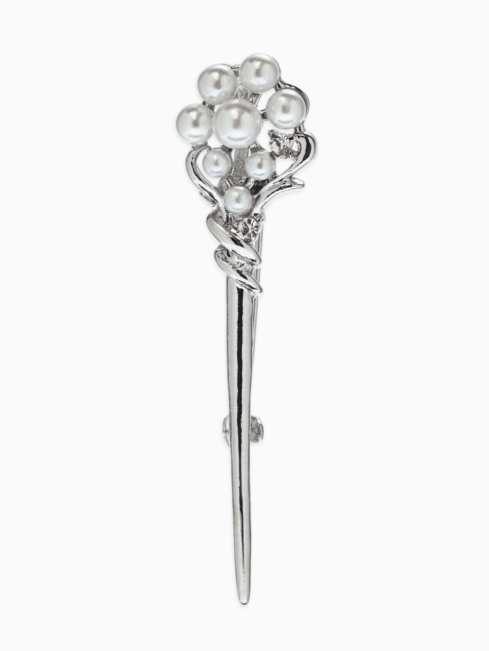 Брошь "Факел с жемчугом", белая в серебре, 1.3x5.5x1.5 см., QF, Китай