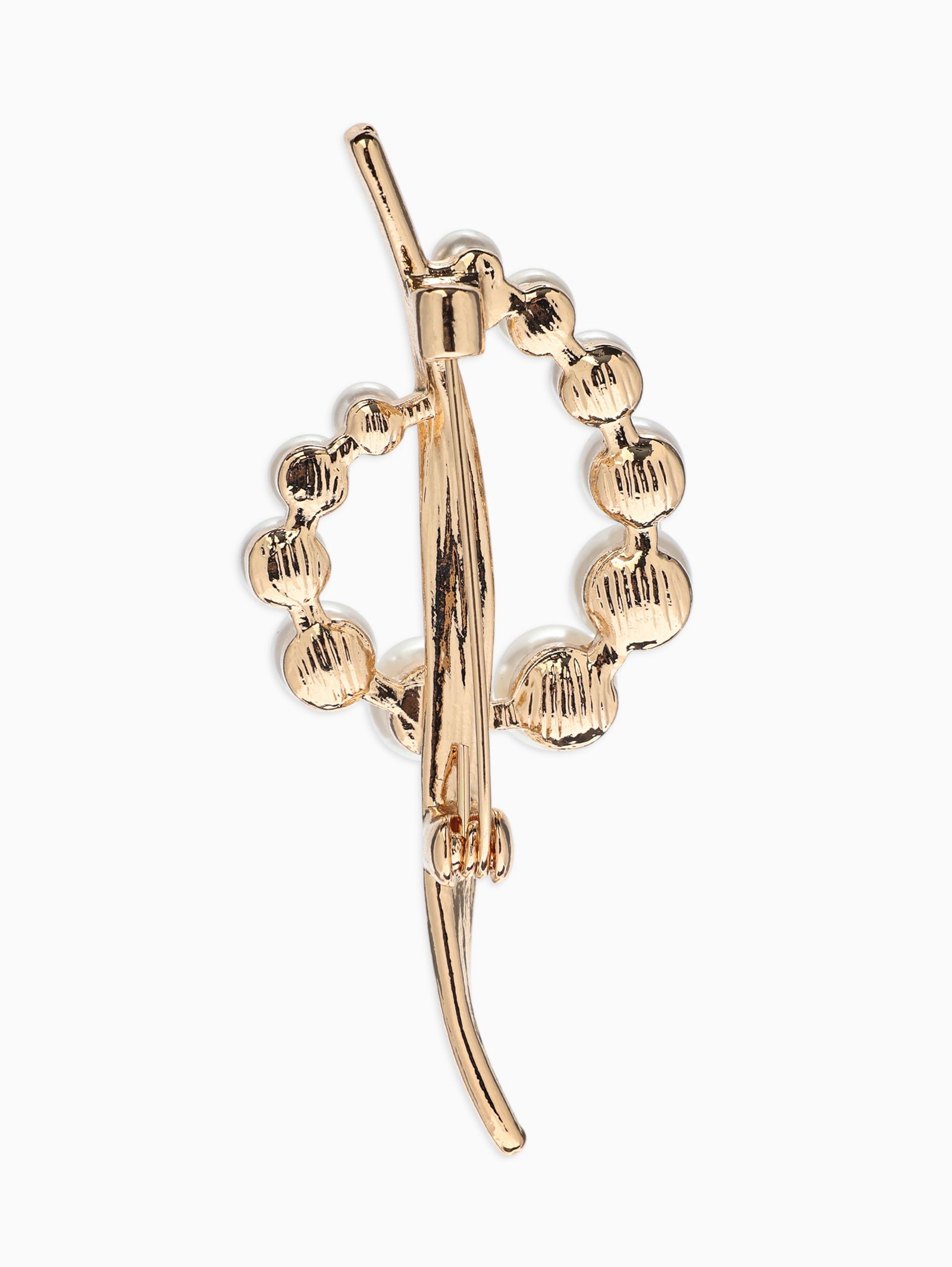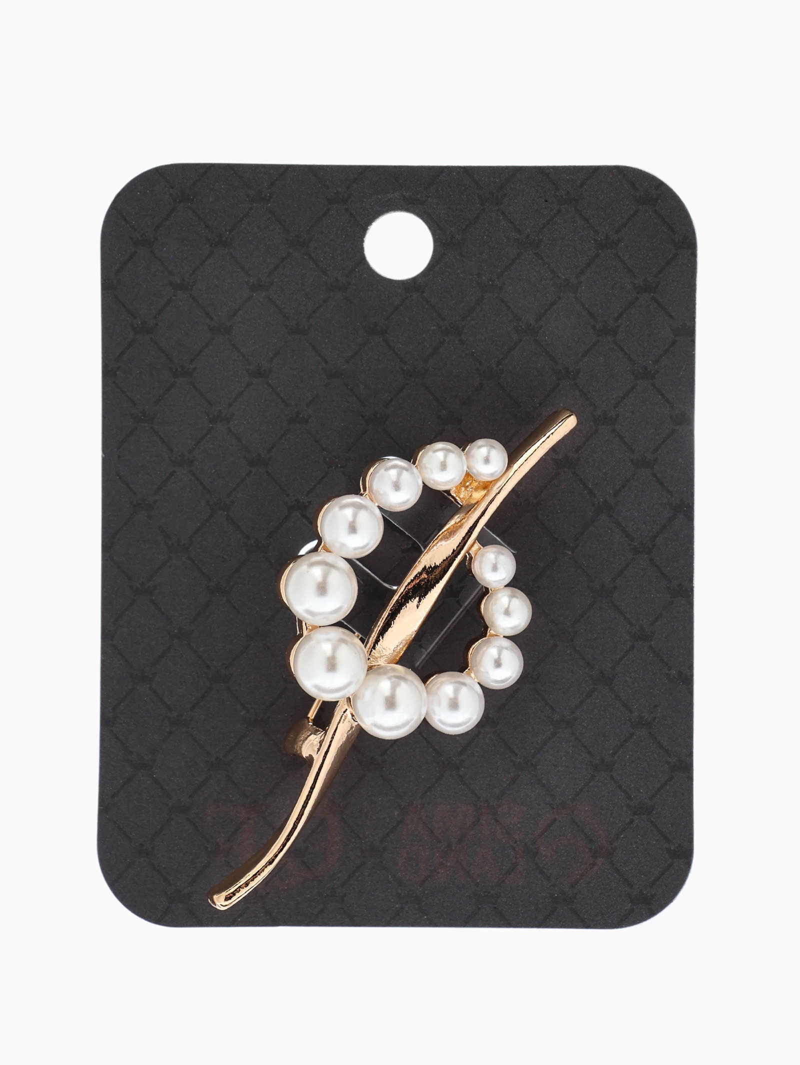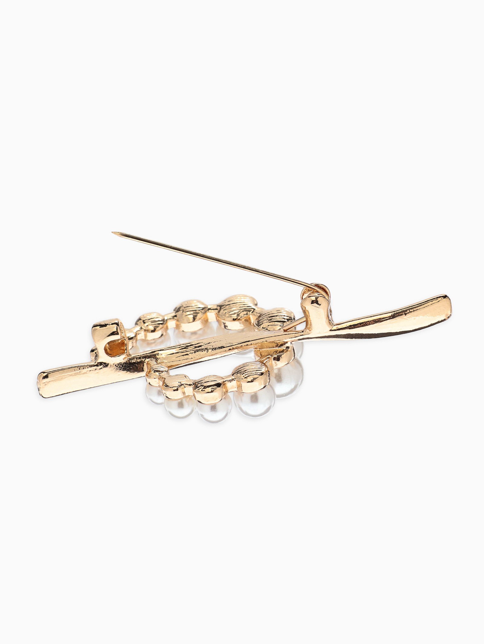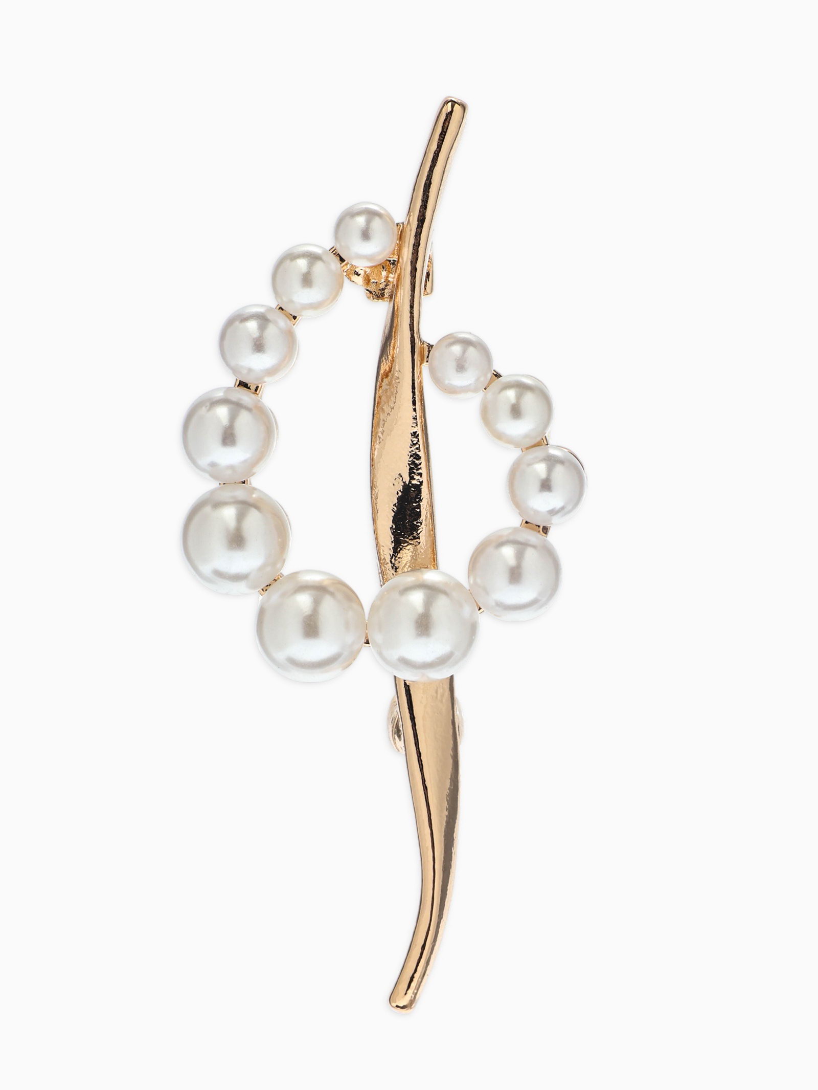 Брошь "Дуга с жемчугом", белая в золоте, 2.5x6x1.5 см., QF, Китай