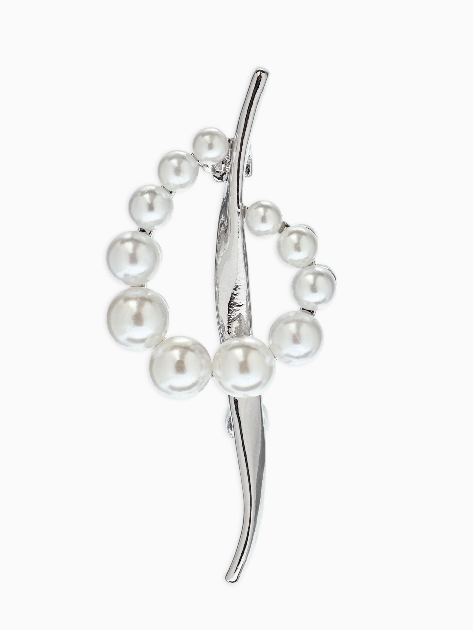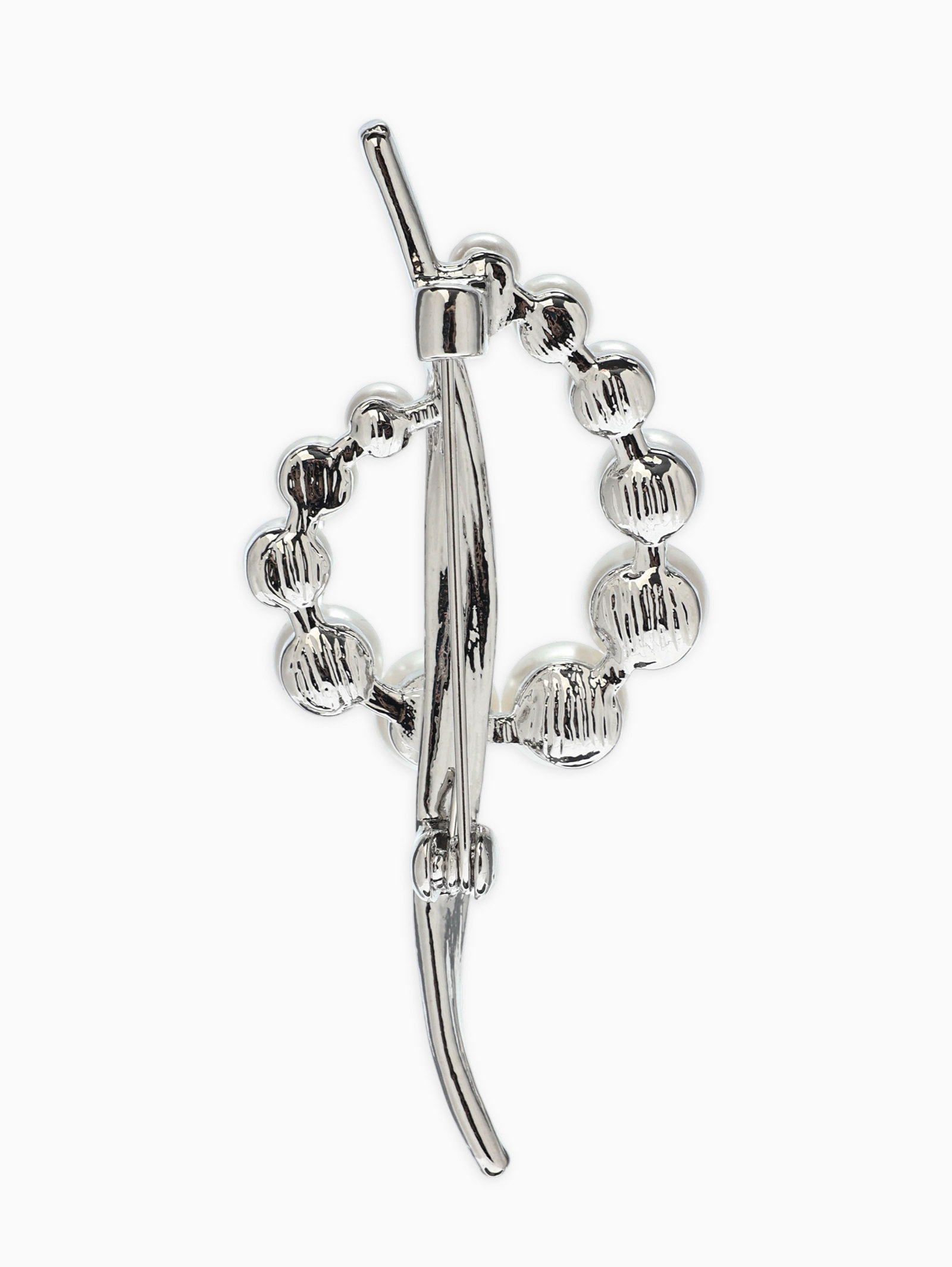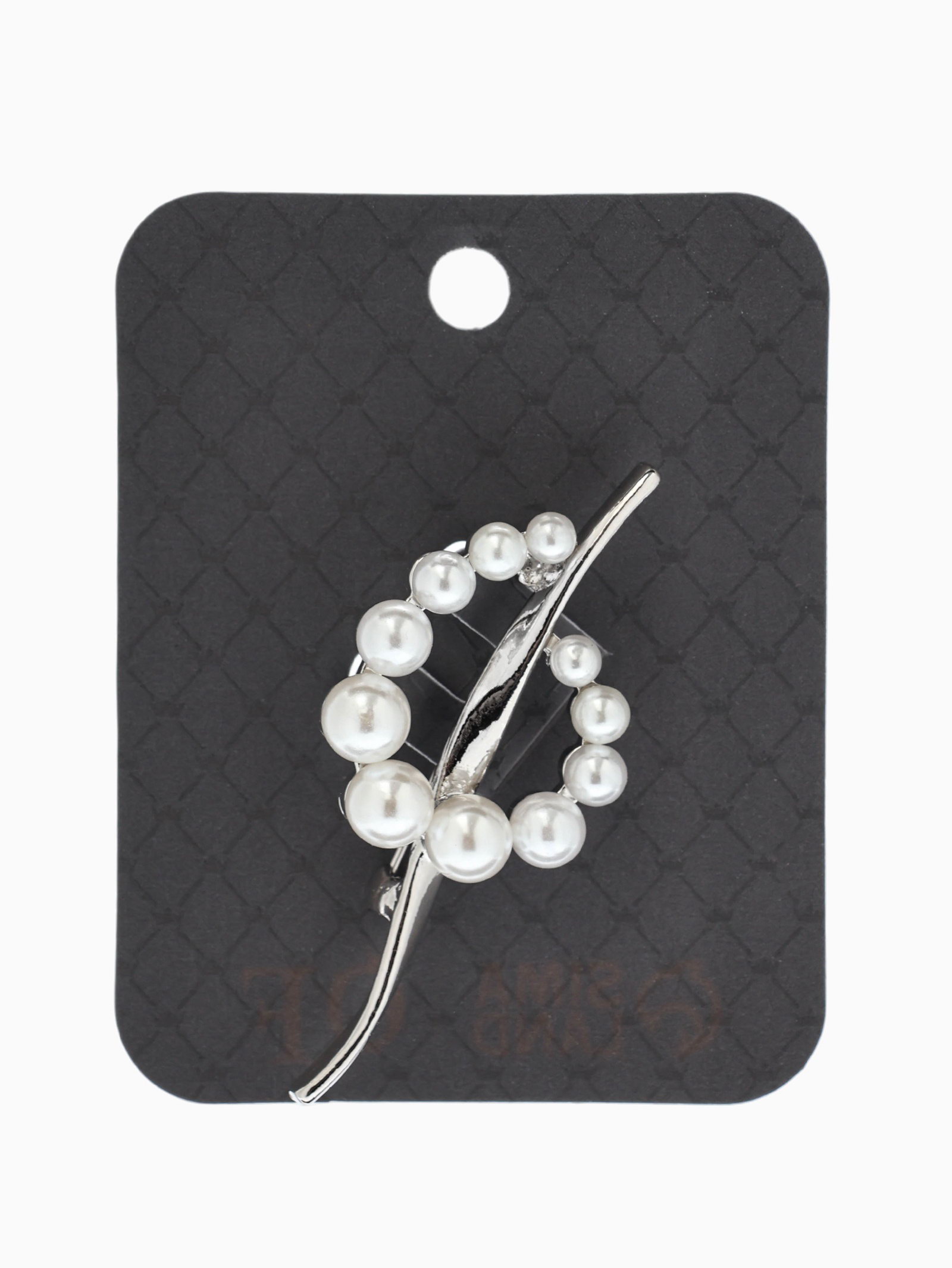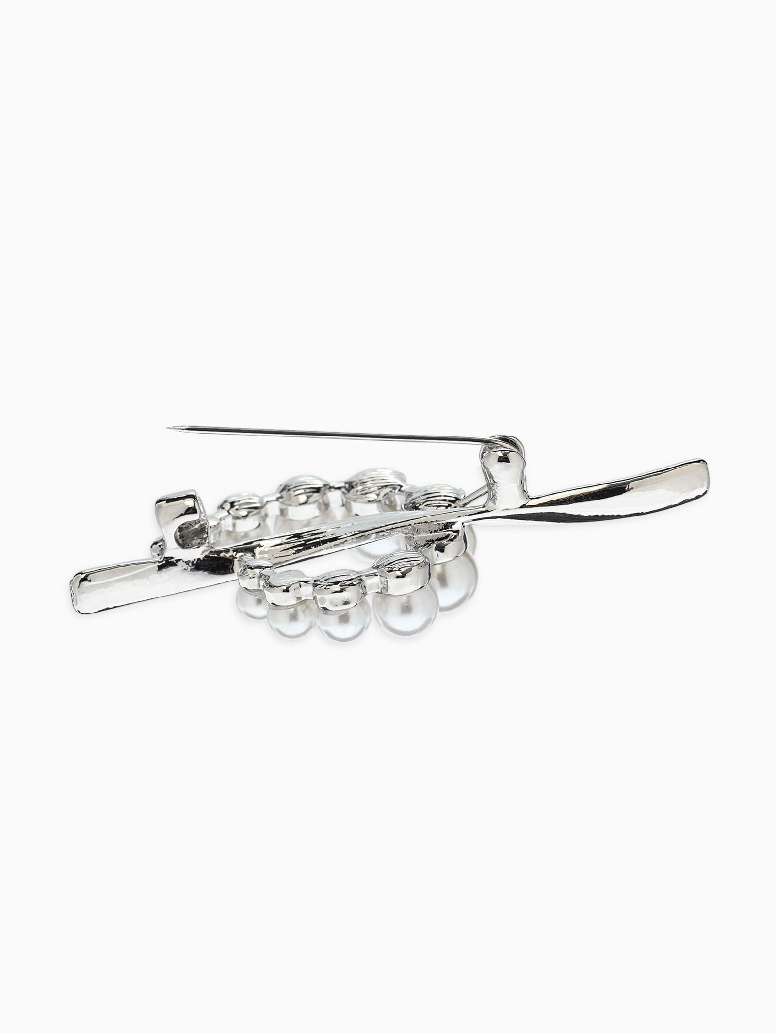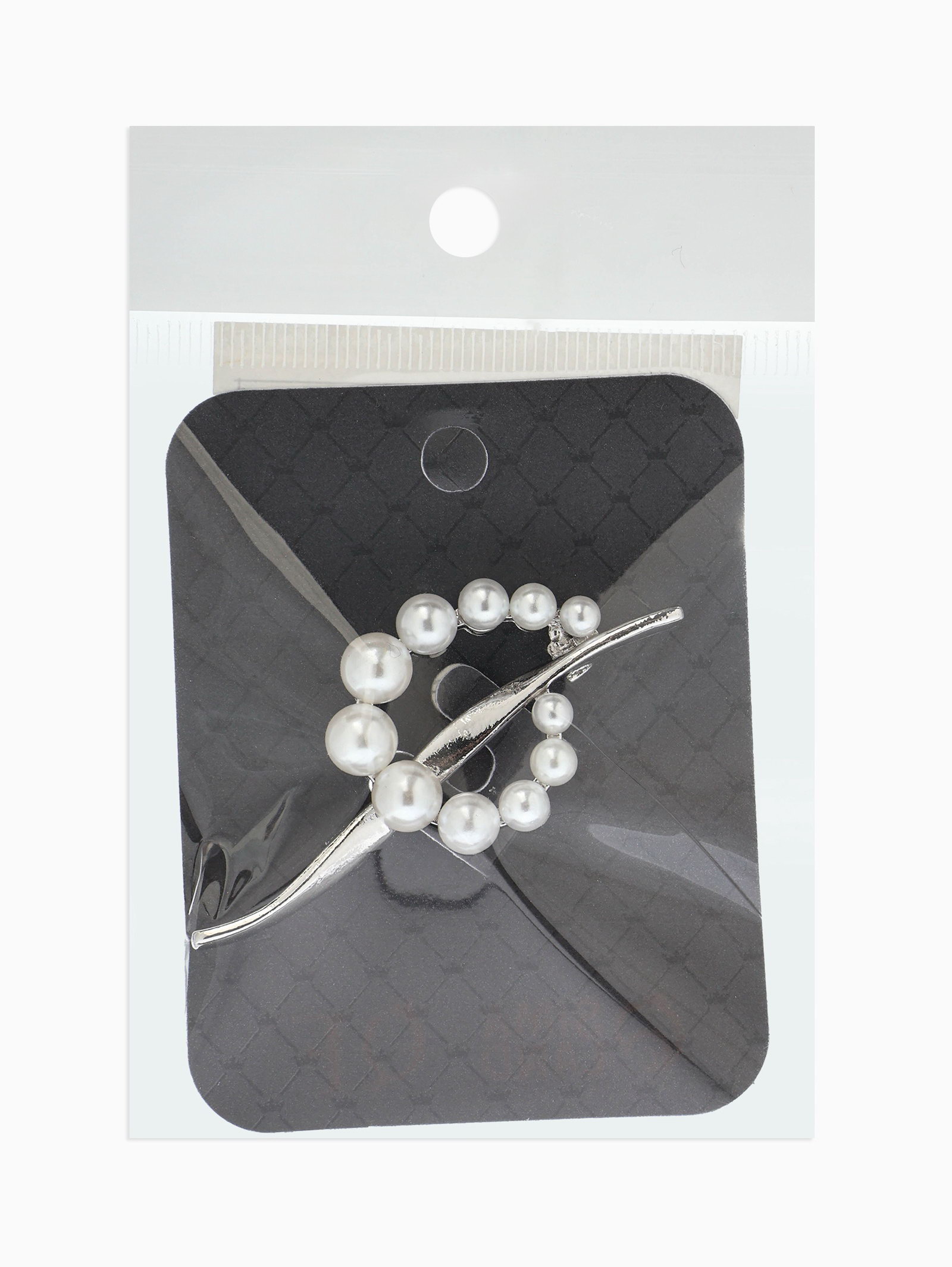 Брошь "Дуга с жемчугом", белая в серебре, 2.5x6x1.5 см., QF, Китай