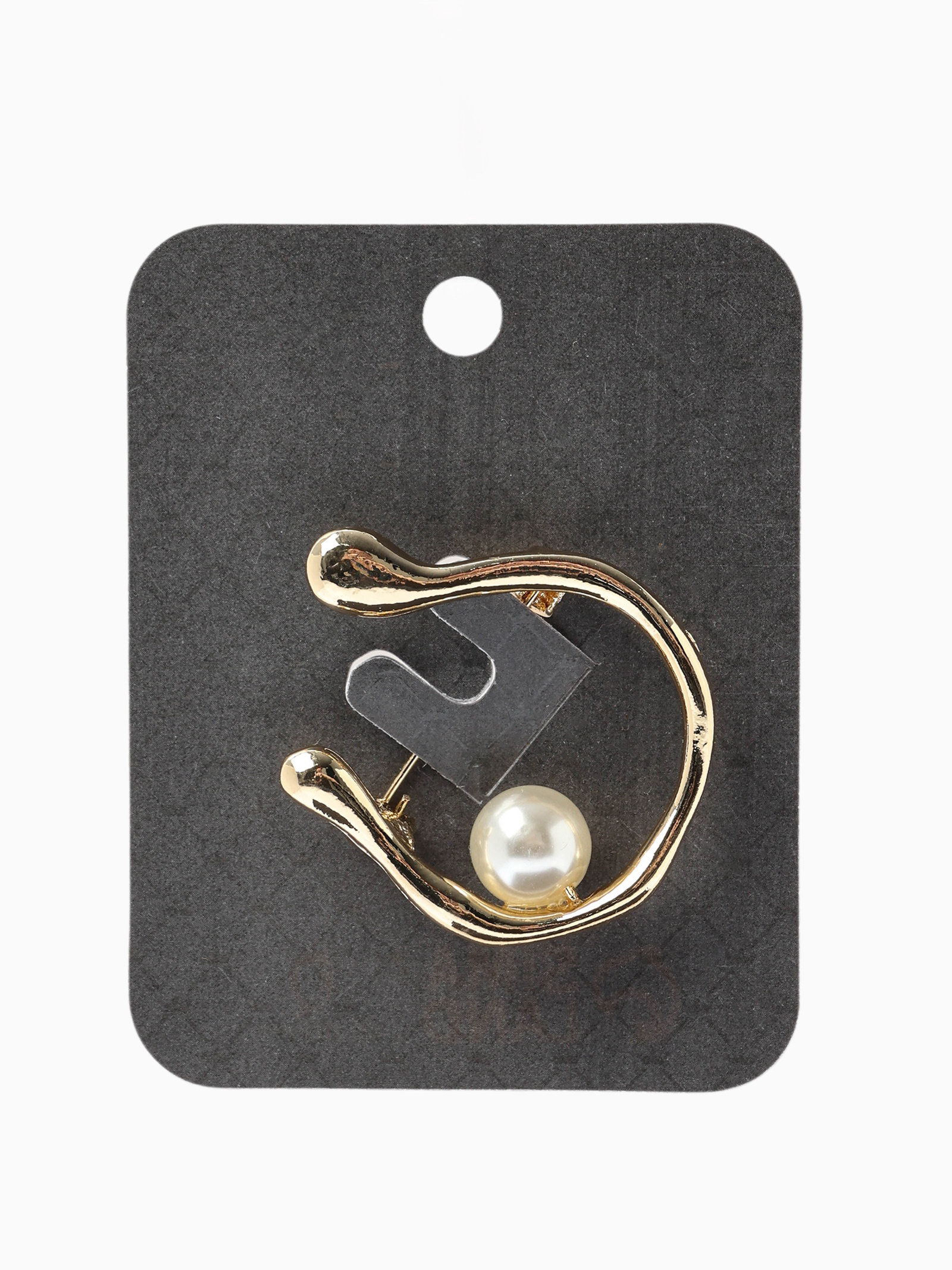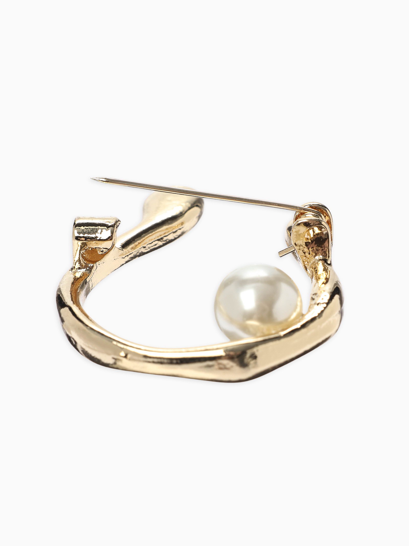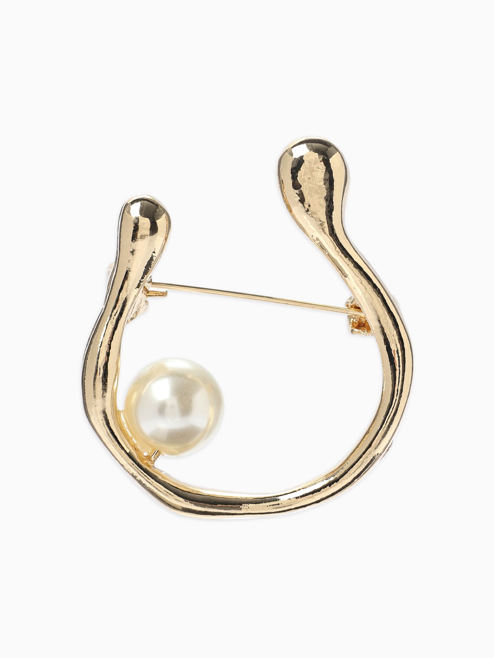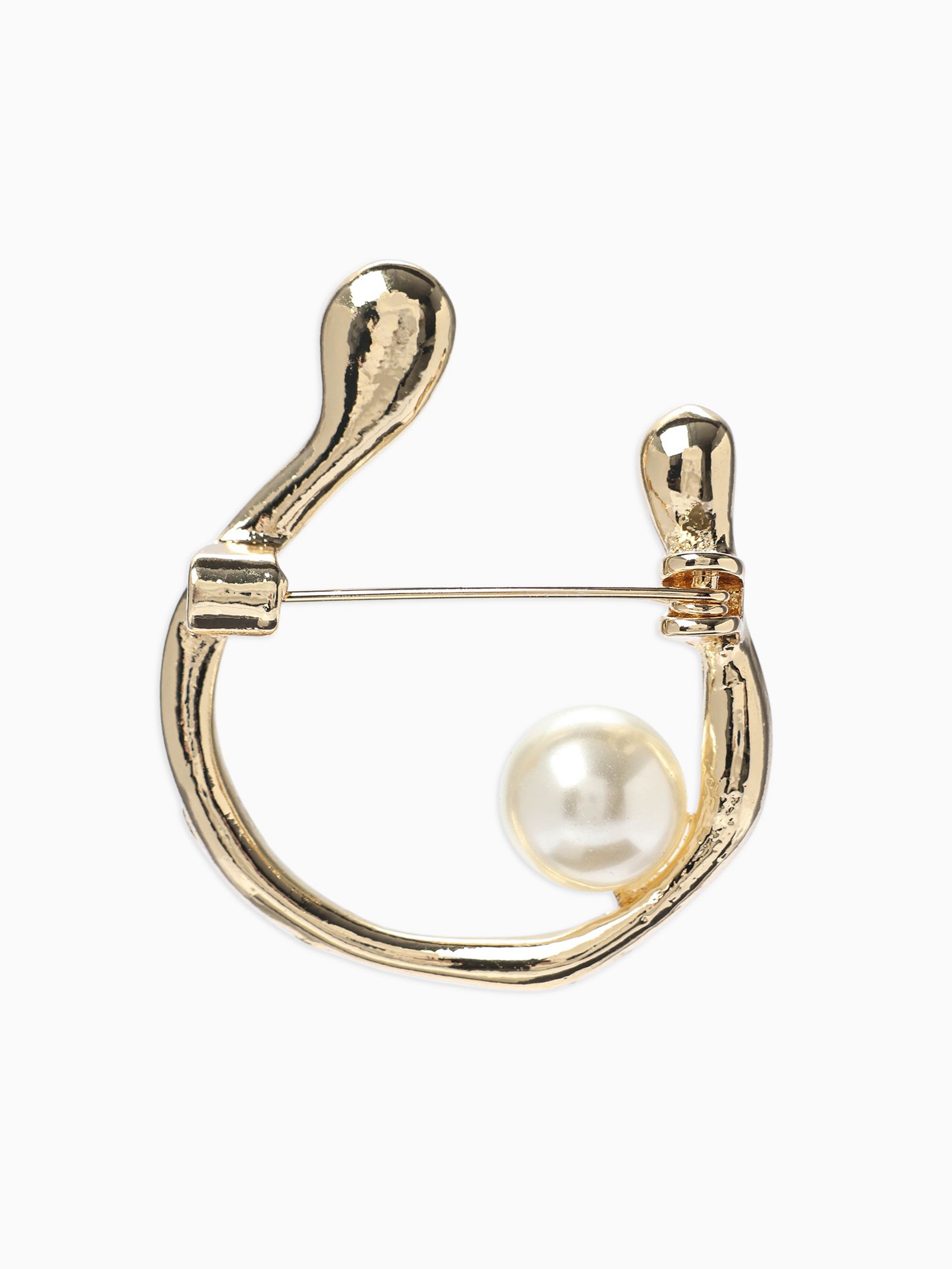 Брошь "Подкова с бусиной", №10, белая в золоте, 3x3.8x1 см., QF, Китай