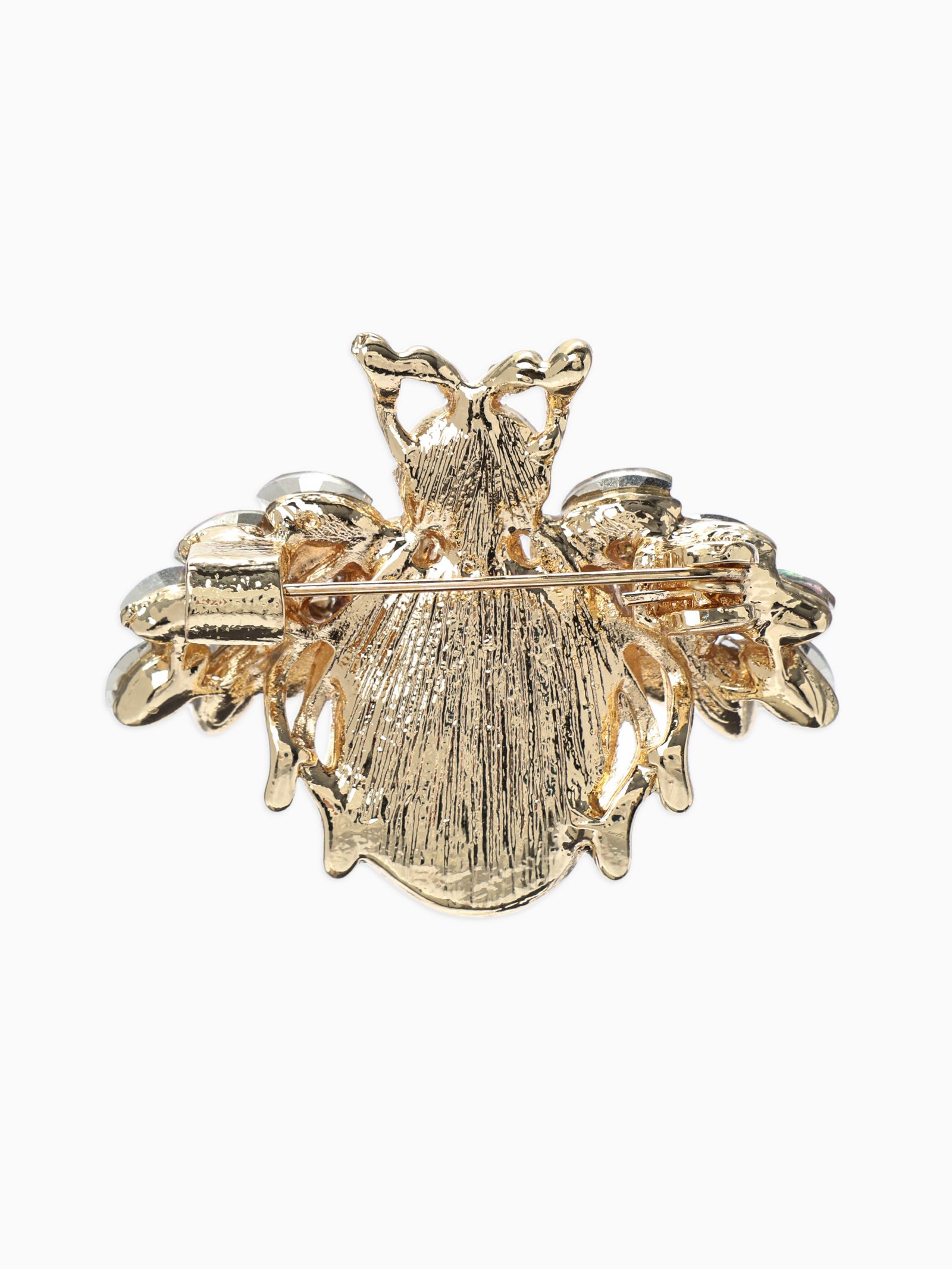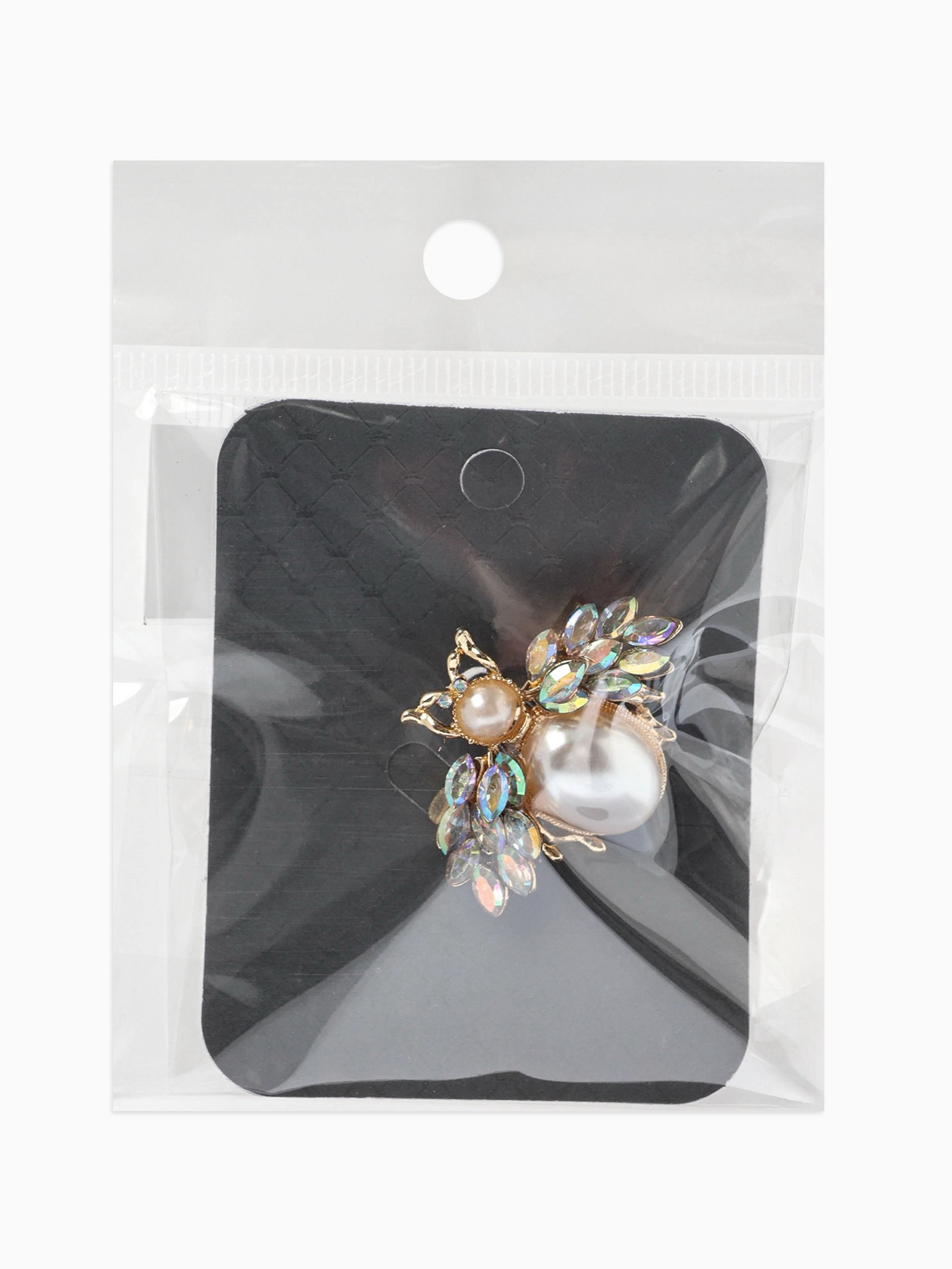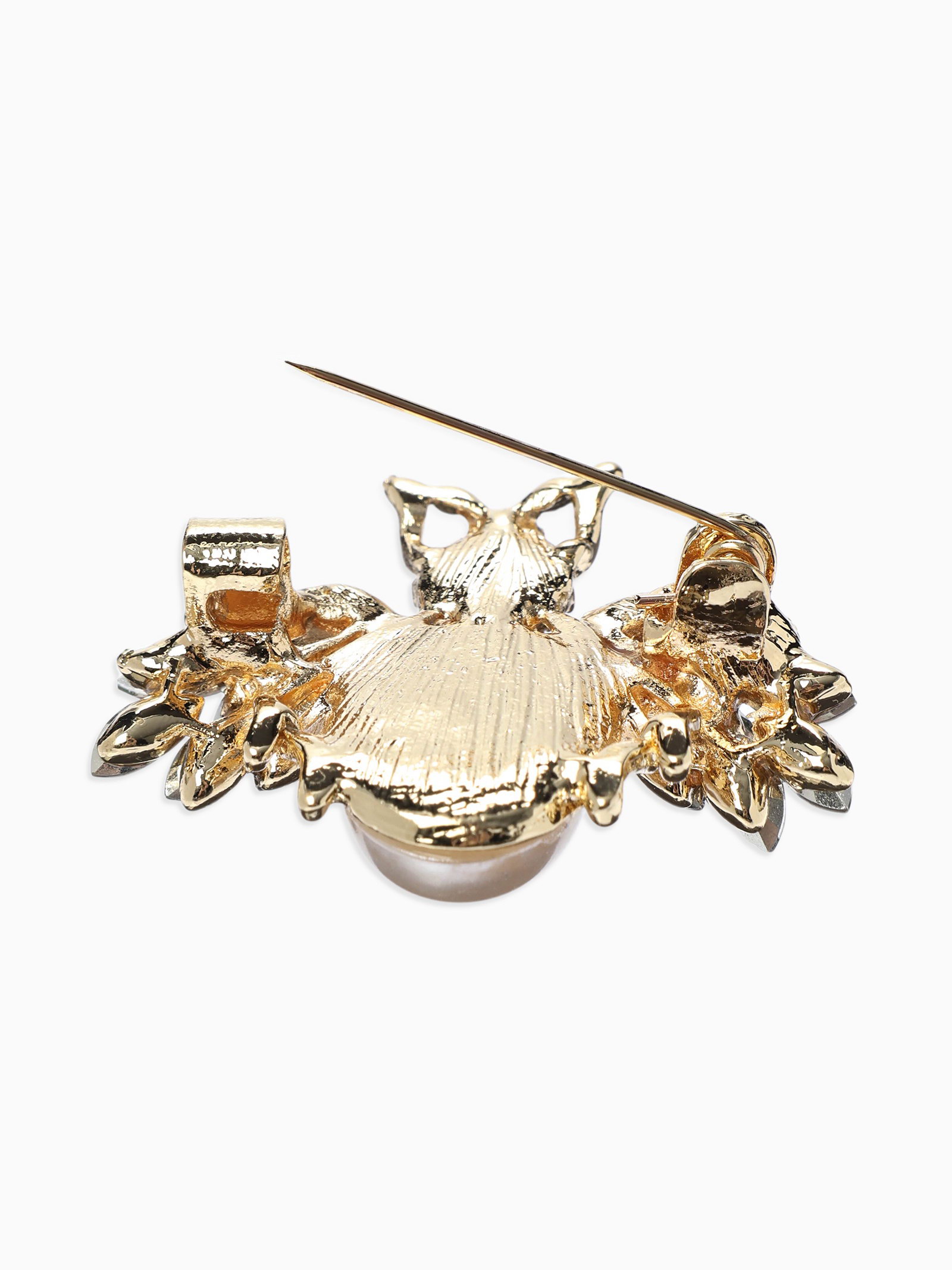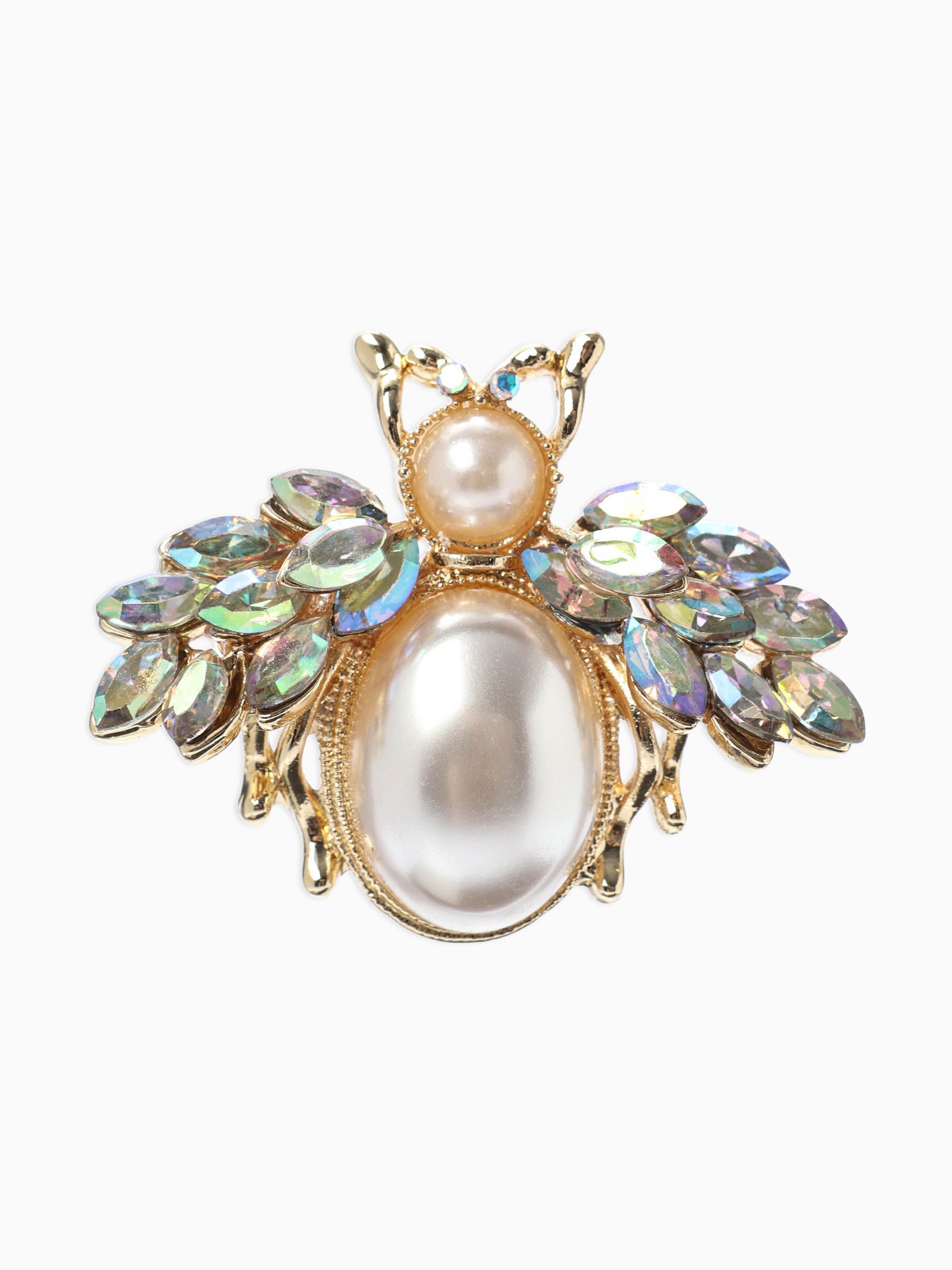 Брошь "Жук роскошный", жемчуг, кристаллы, белая, радужная в золоте, 3x3x1 см., QF, Китай