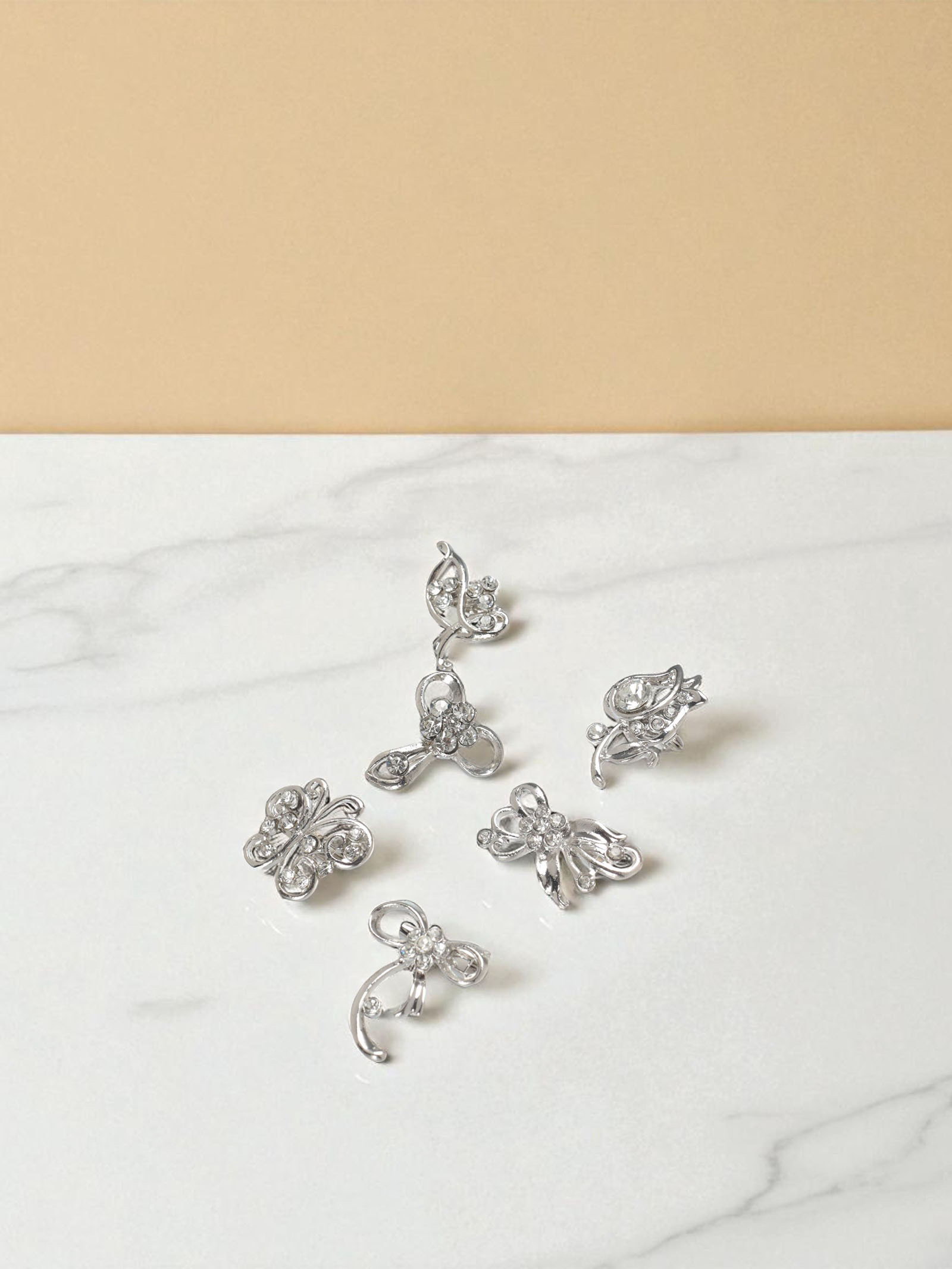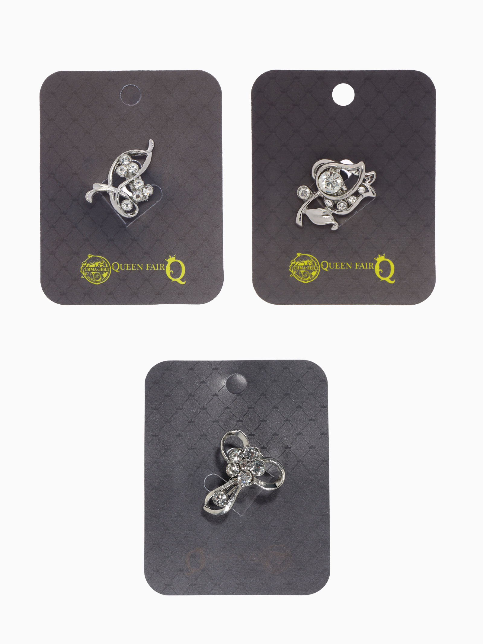 Брошь "Цветочный вальс" мини, форма МИКС, белая в серебре, 2x2x1.5 см., QF, Китай