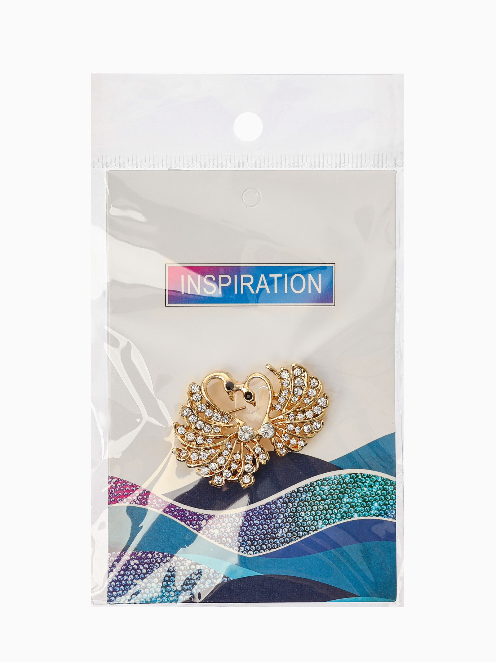 Брошь "Лебединая пара", белая в золоте, 4.5x3.3x0.5 см., QF, Китай