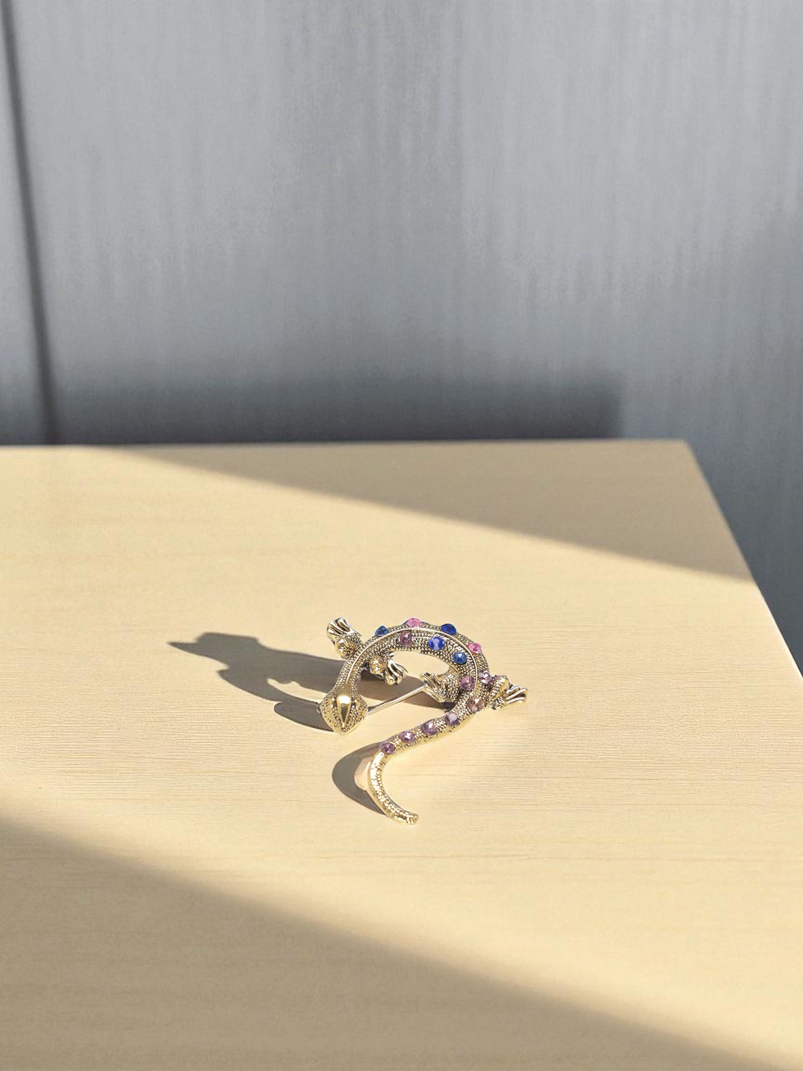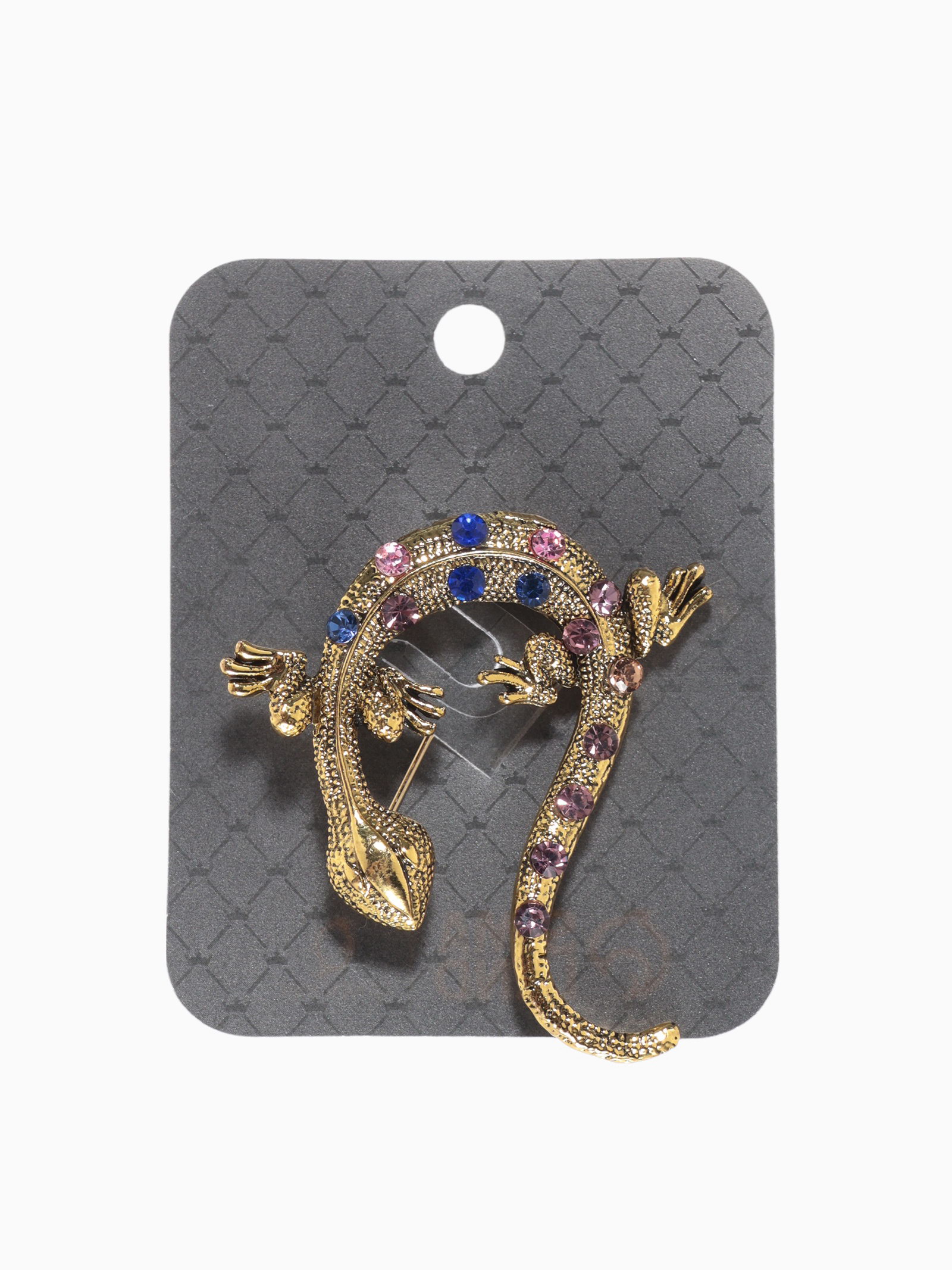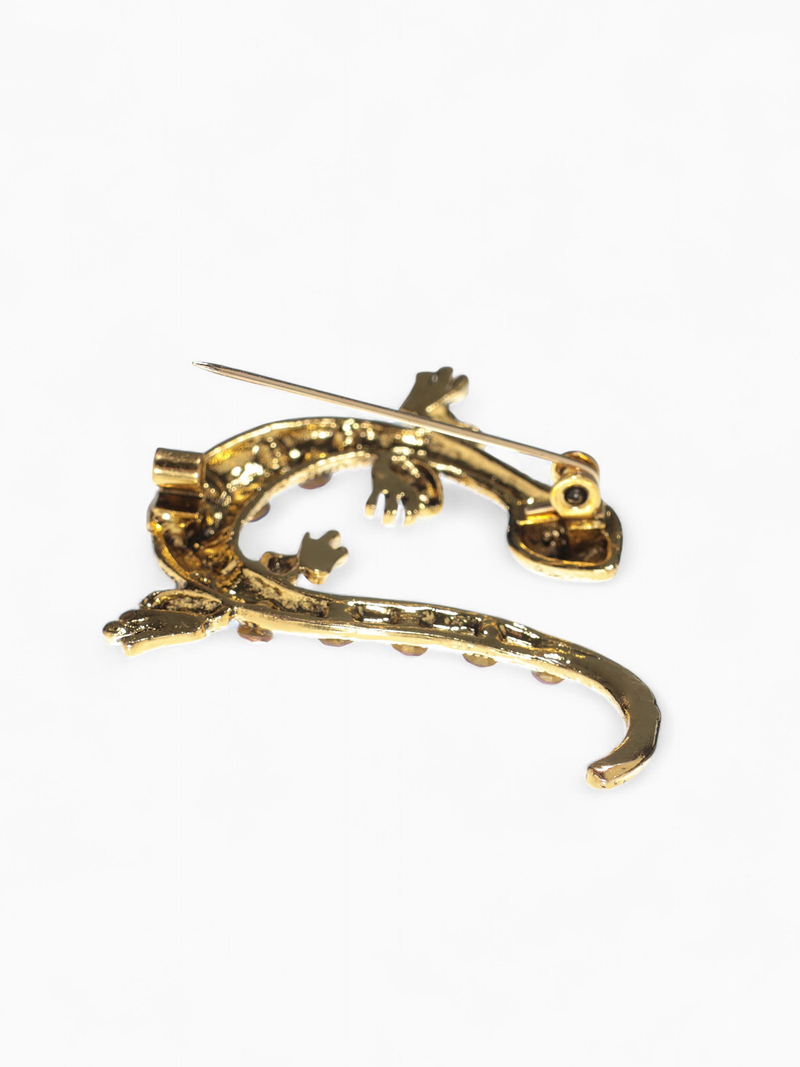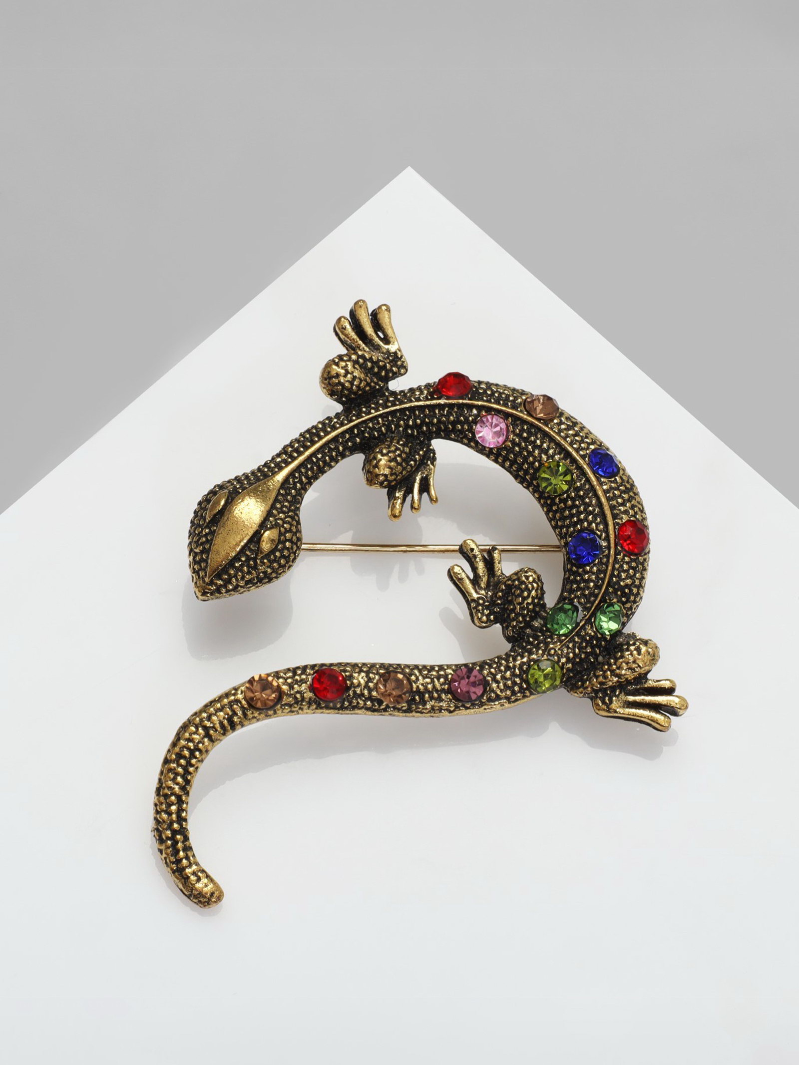 Брошь "Ящерица в стразах" цветная в чернёном золоте, 4.5x4.8x1 см., QF, Китай