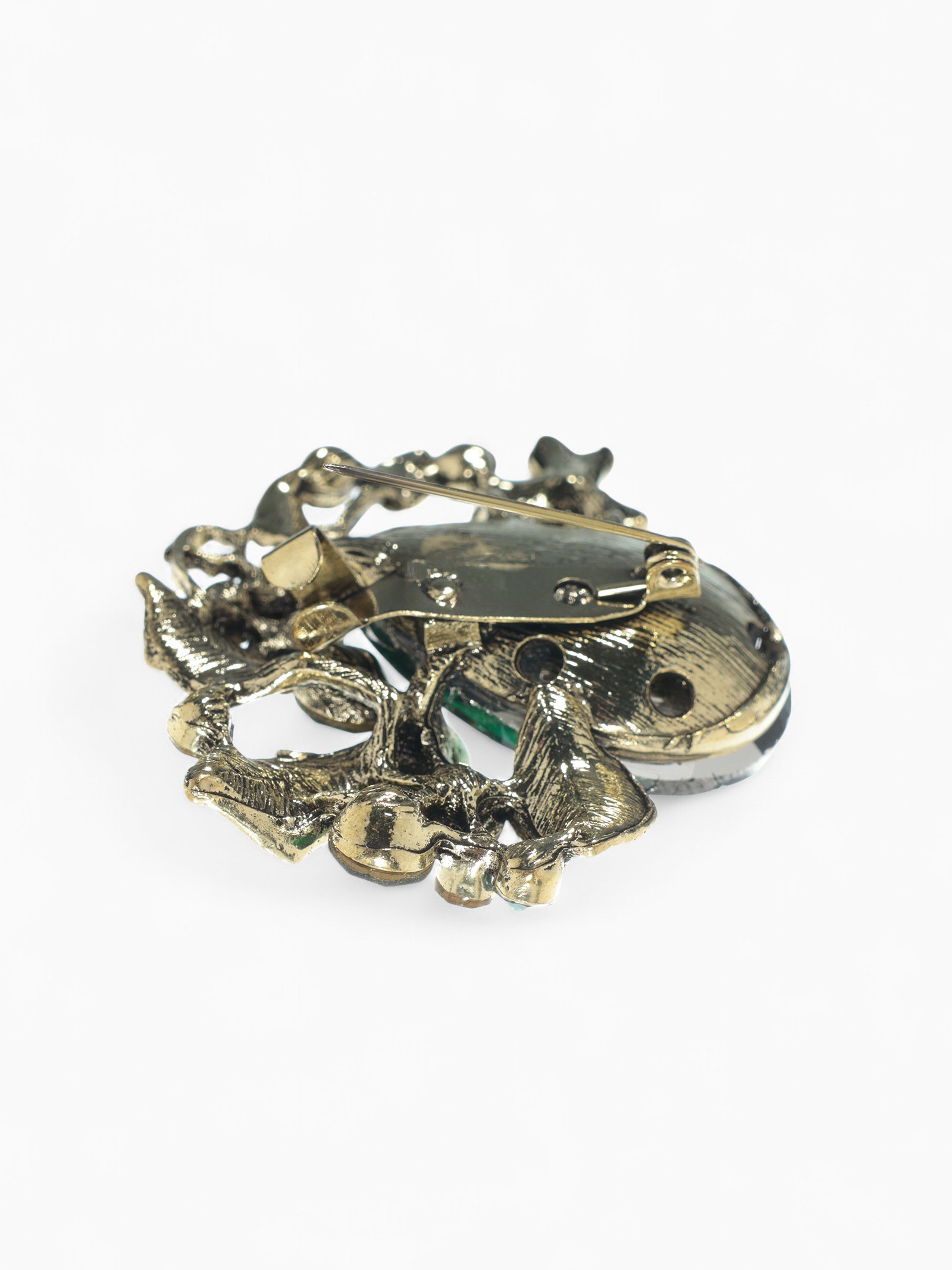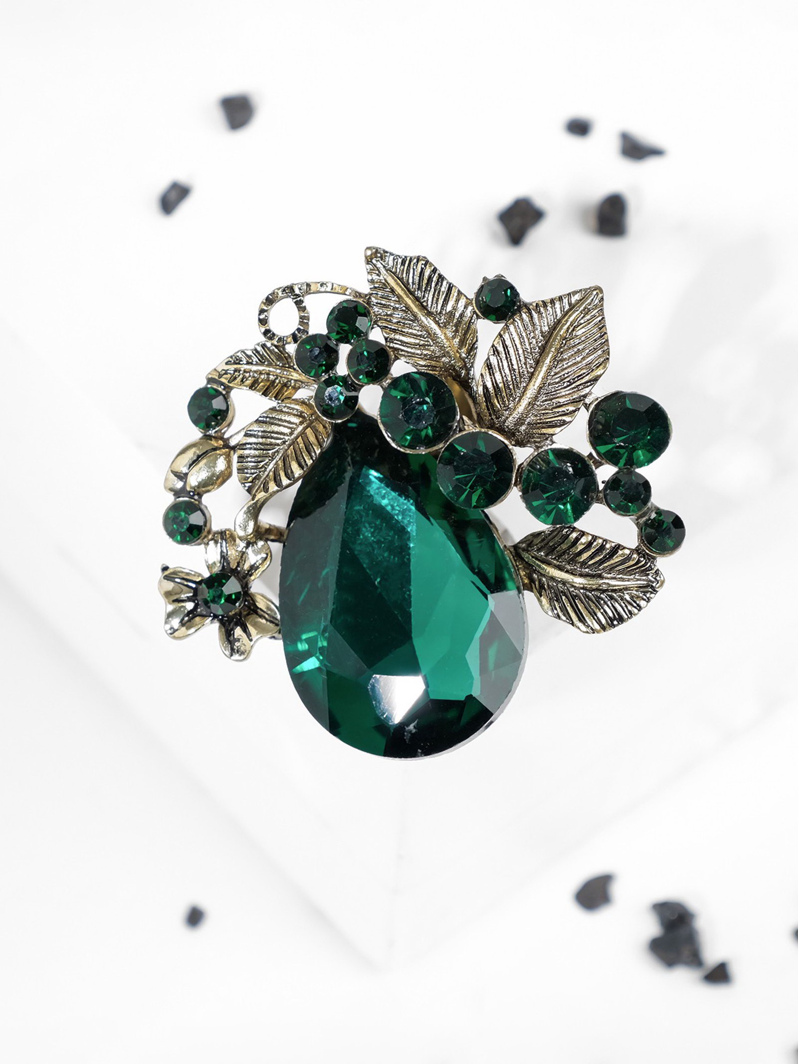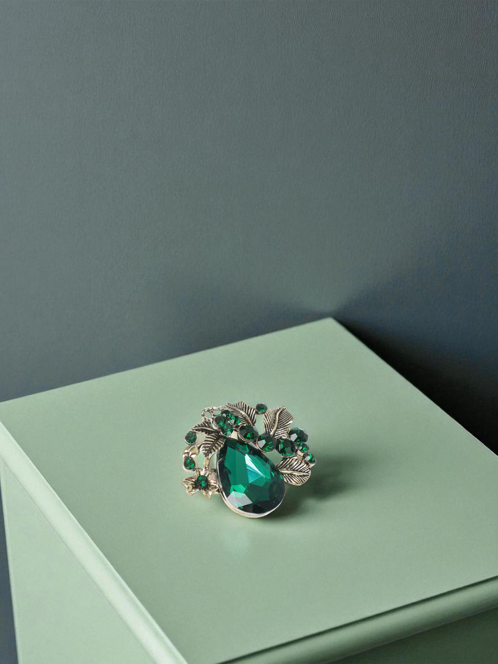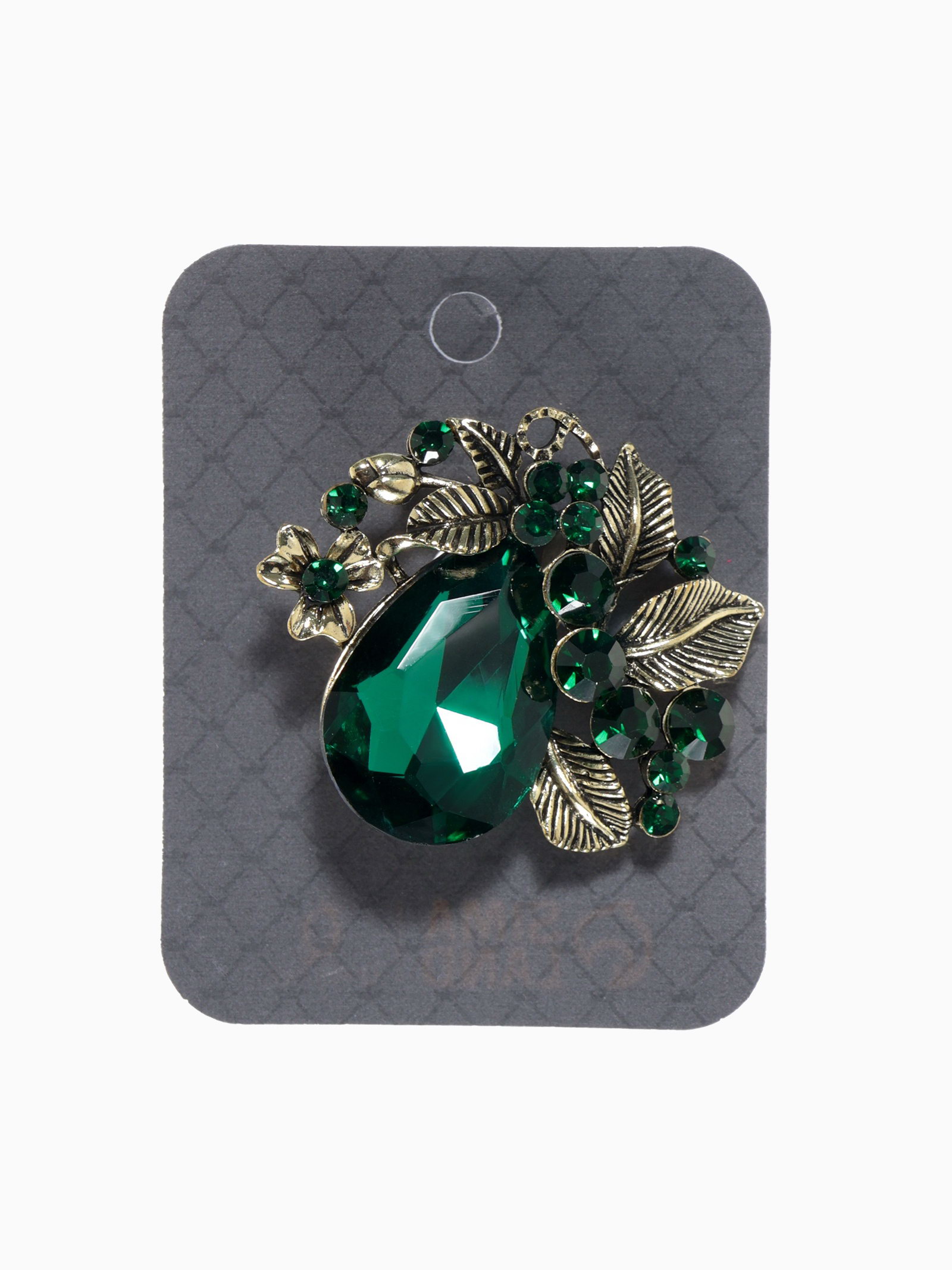 Брошь "Цветок" венок славы, цвет изумрудный в чернёном золоте, 4x4x1.5 см., QF, Китай