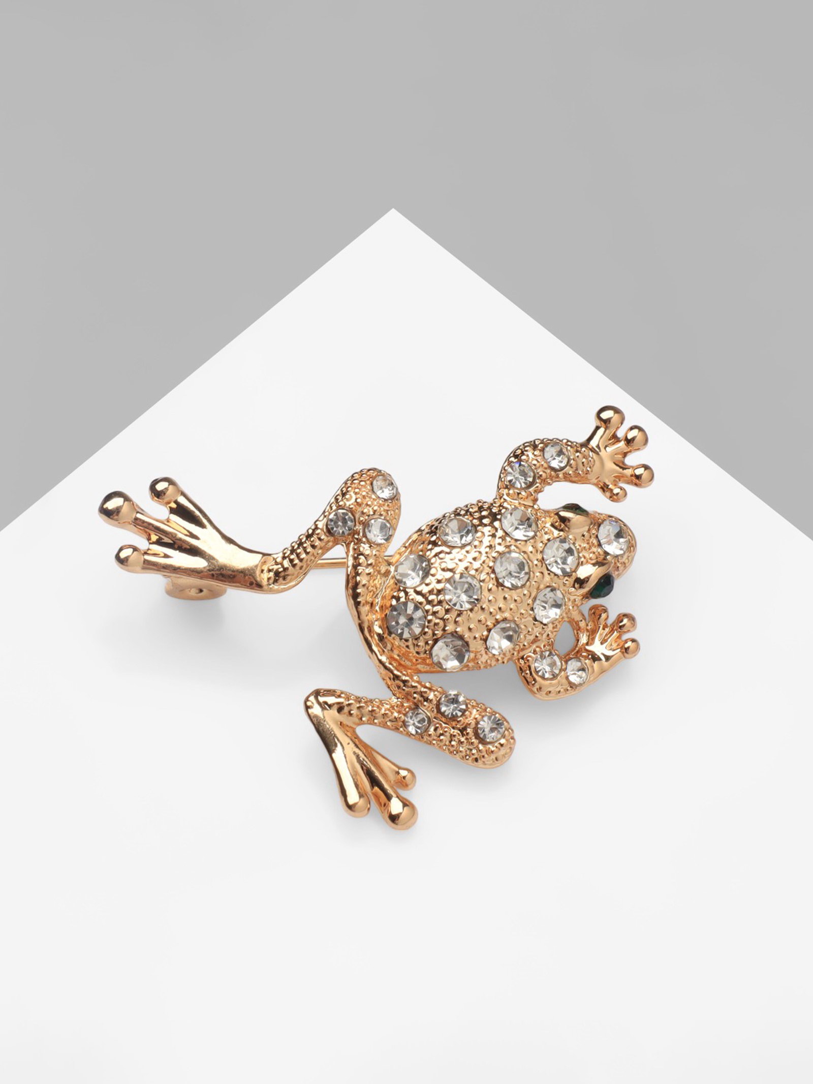 Брошь "Лягушка" классическая, белая в золоте, 2.5x4x0.8 см., QF, Китай
