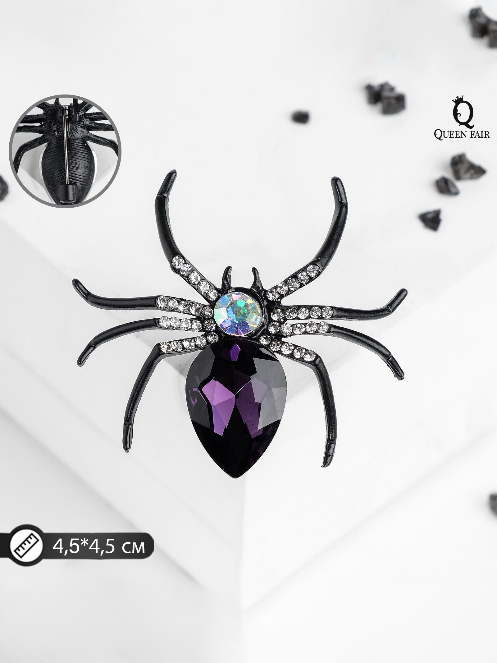 Брошь "Паук", цвет чёрно-фиолетовый, 4.6x5.2x1.5 см., QF, Китай