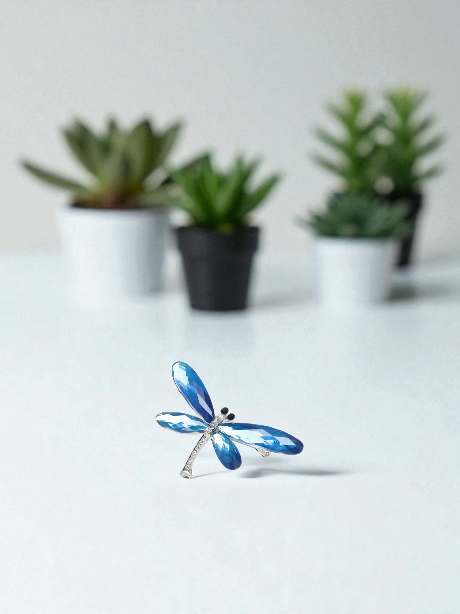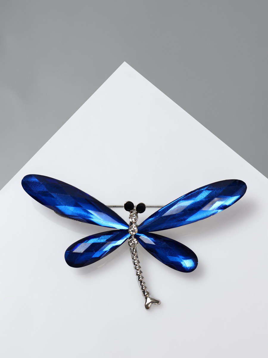 Брошь "Стрекоза", граненые крылья, синяя в серебре, 7x3x1 см., QF, КИТАЙ