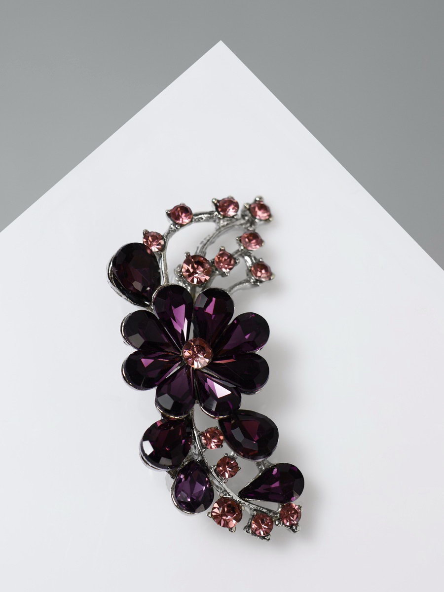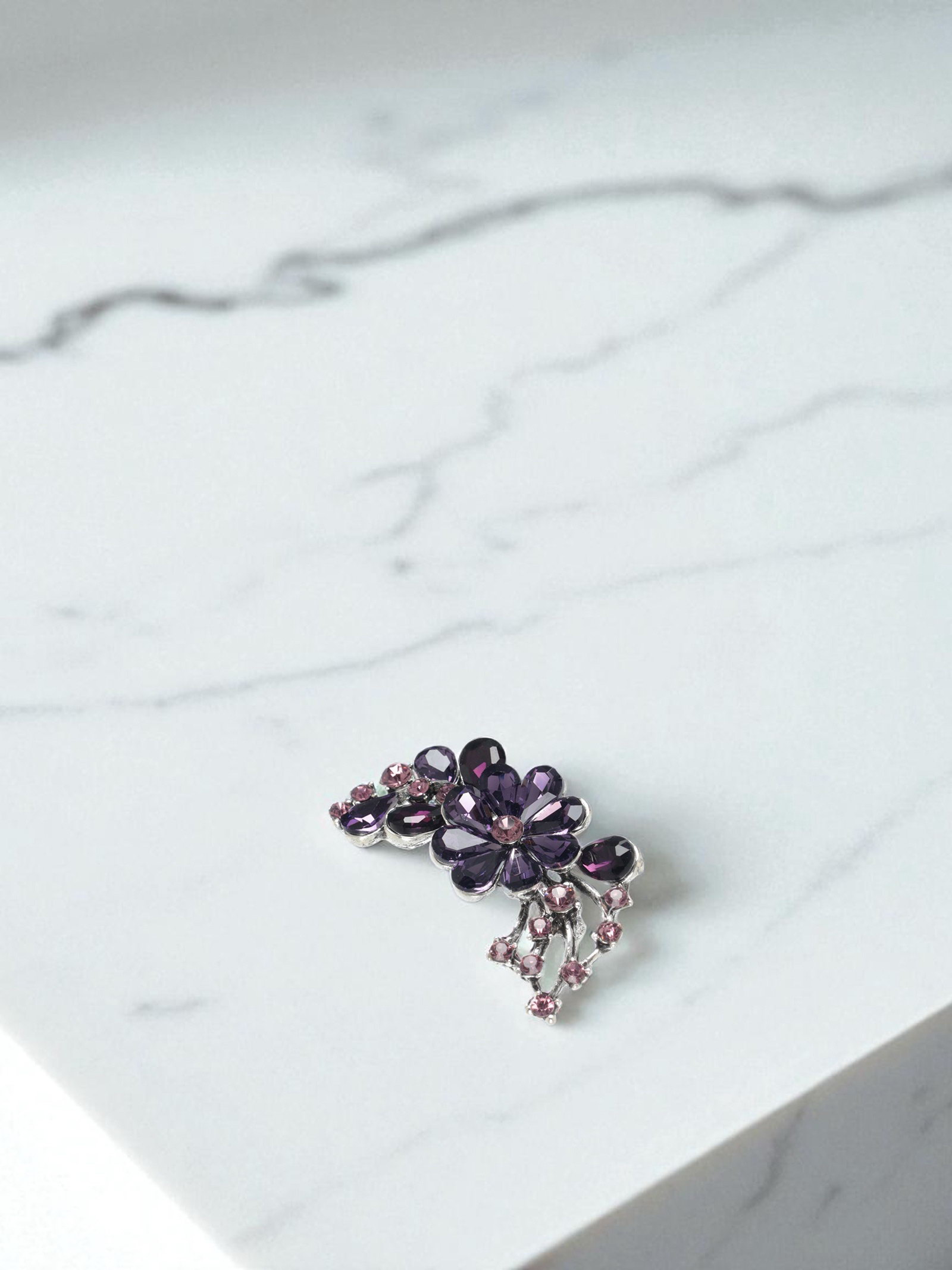 Брошь "Цветок стеклянный", фиолетовая в серебре, 3x5x0.5 см., QF, Китай