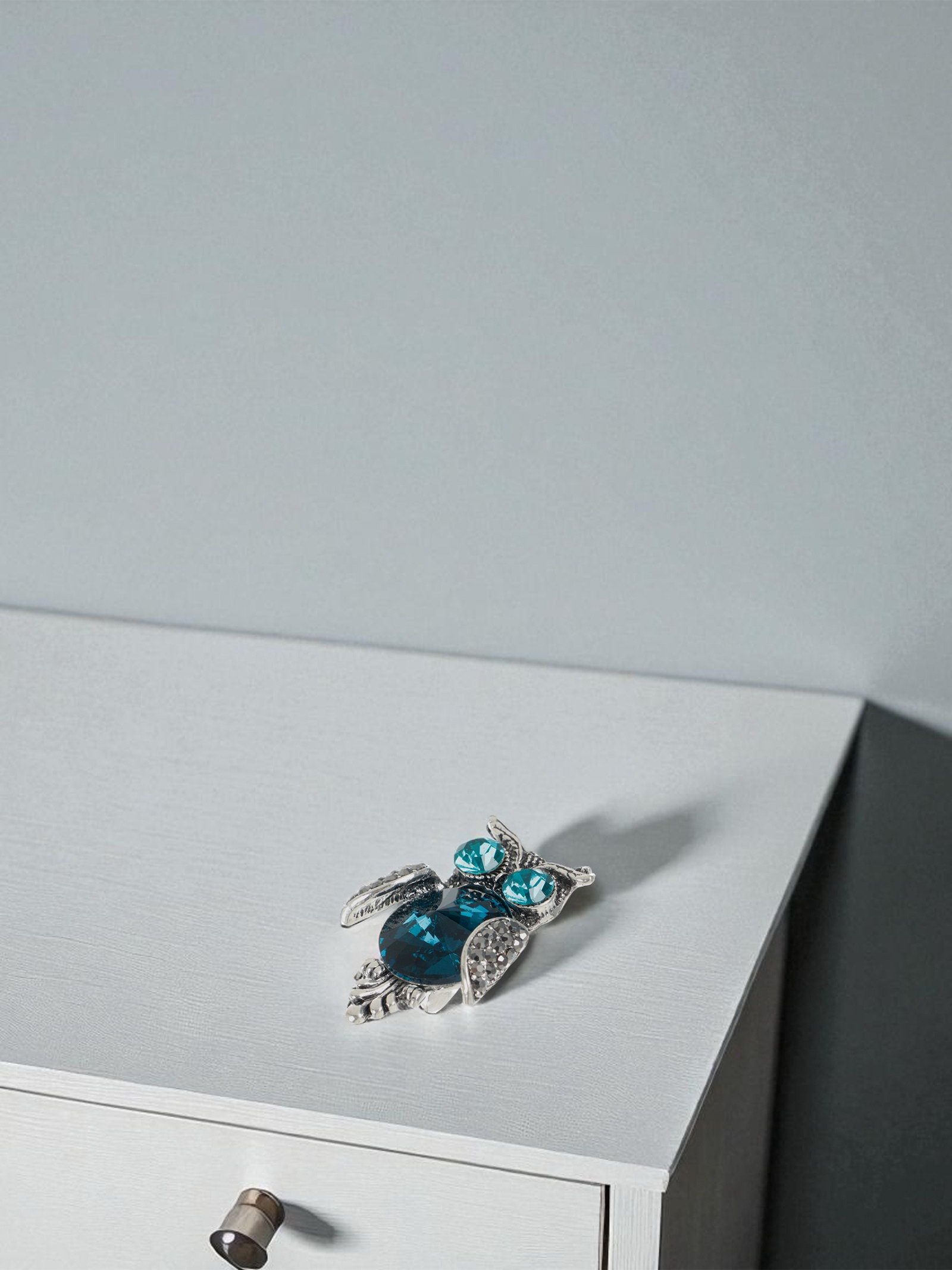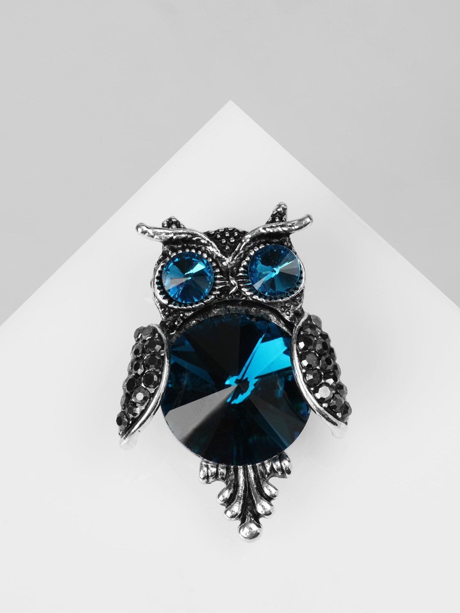 Брошь "Сова круглая", синяя в чернёном серебре, 3x4x1 см., QF, Китай