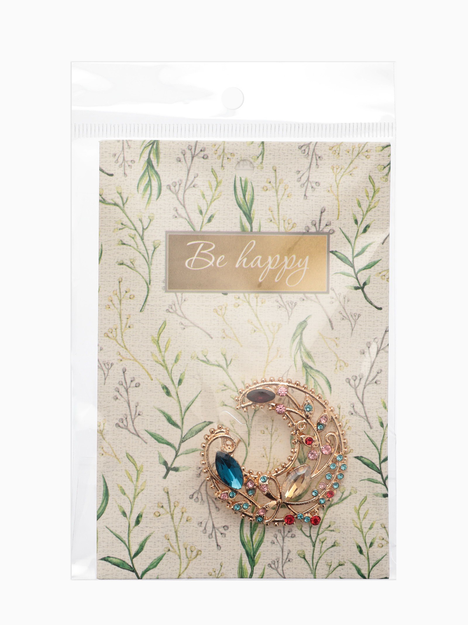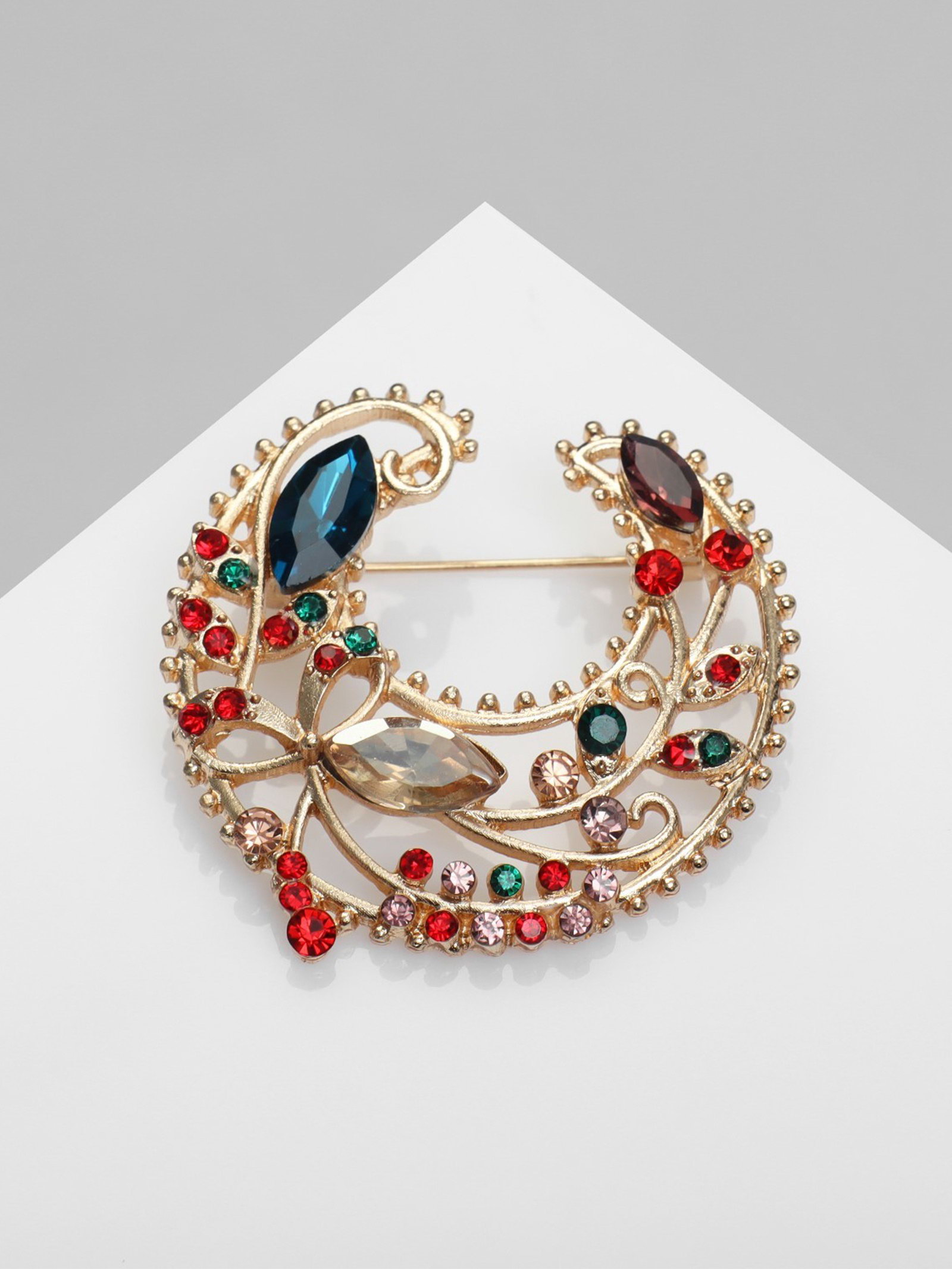 Брошь "Подкова самоцветная", цветная в золоте, 4.5x4.5x1 см., QF, Китай