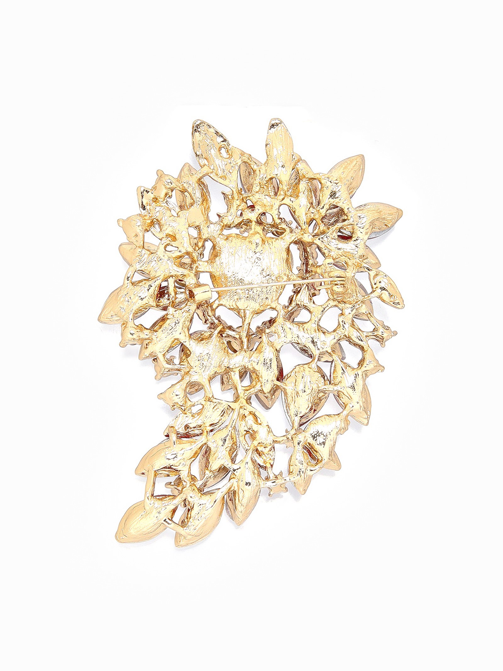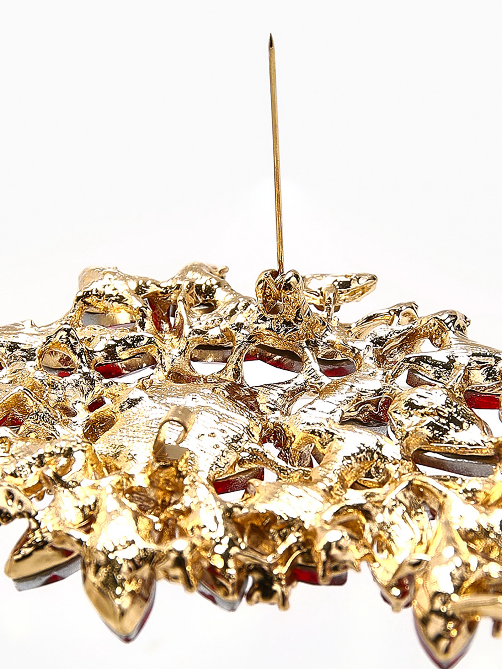 Брошь "Императрица" сердце цветущее, цвет красный в золоте, 6.5x9x2 см., QF, Китай