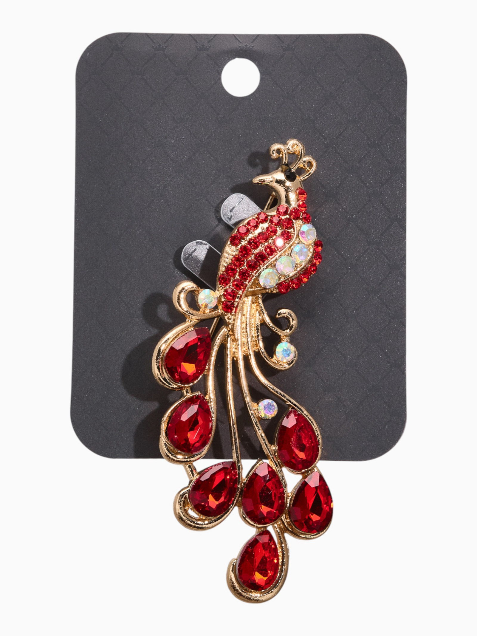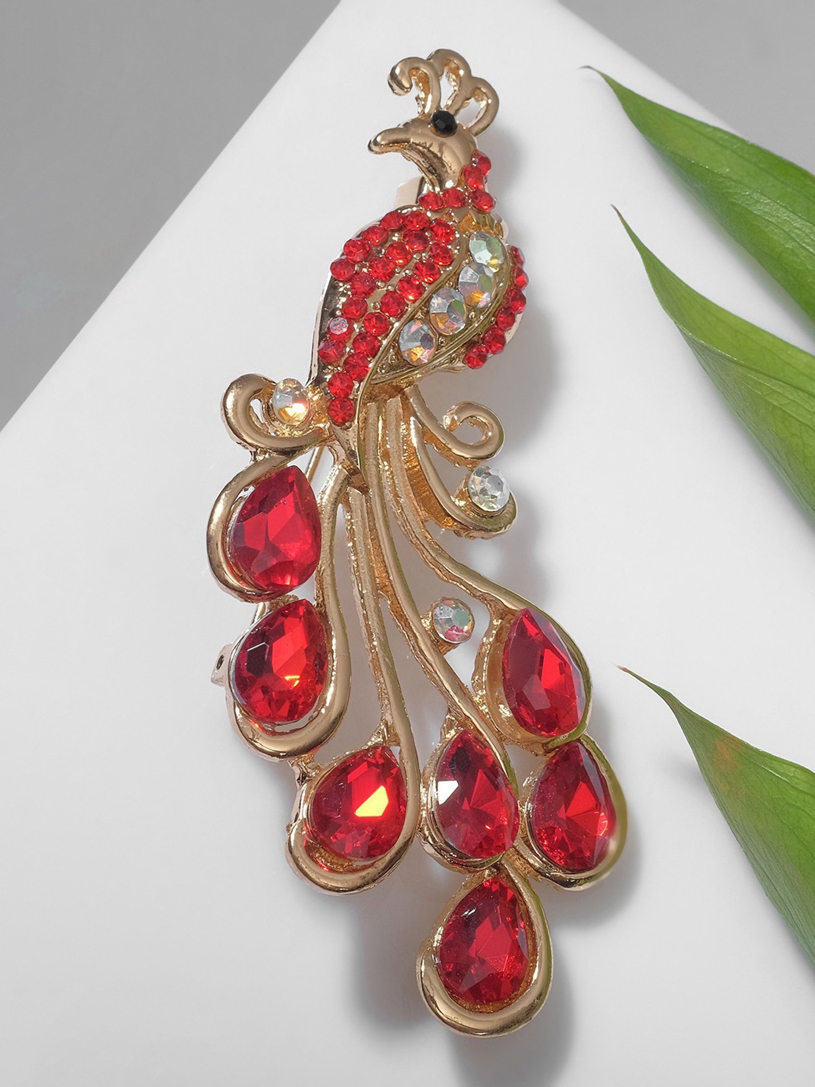 Брошь "Жар-птица" волшебная, красная в золоте, 3.5x8.8x1.3 см., QF, Китай