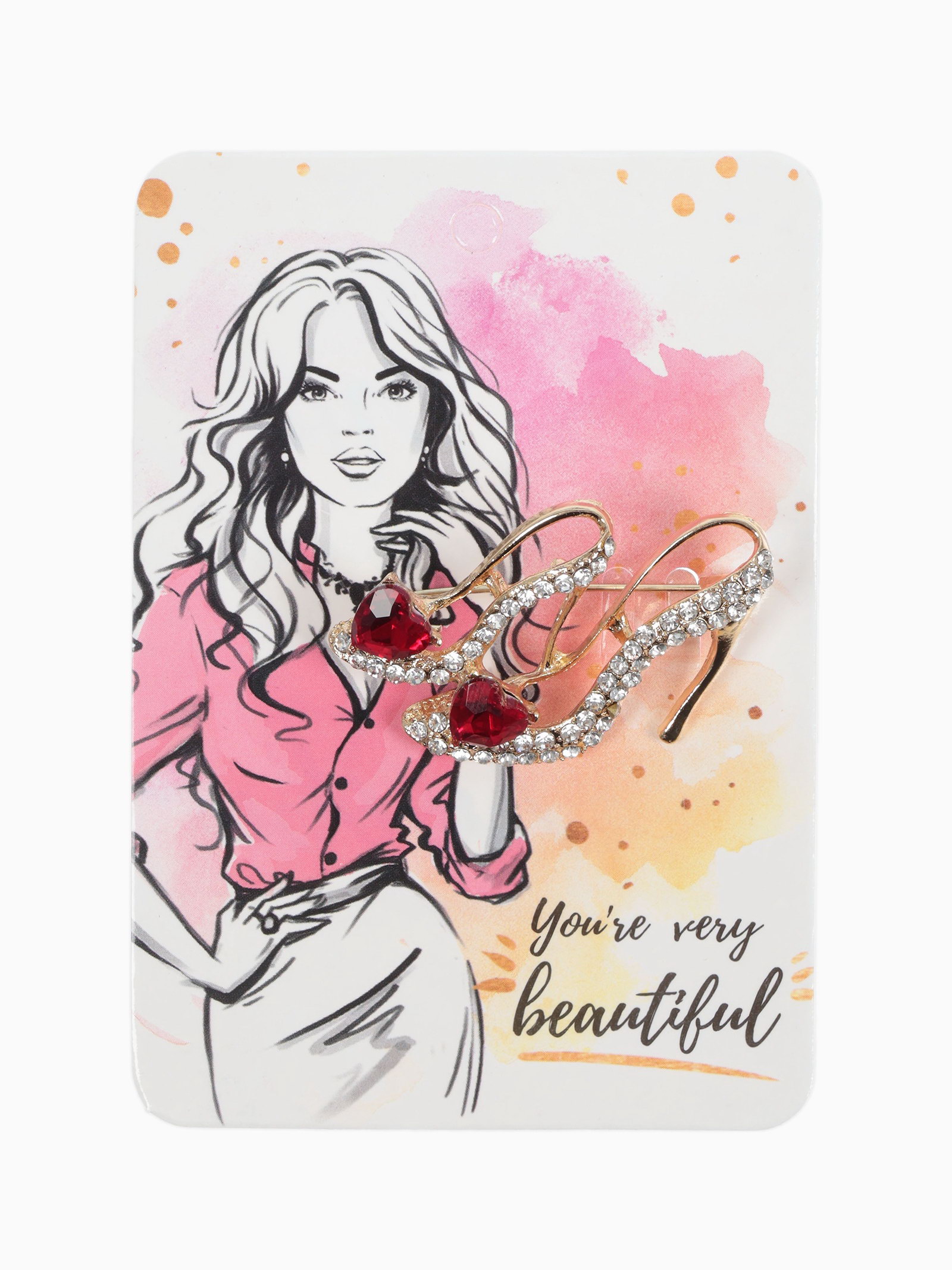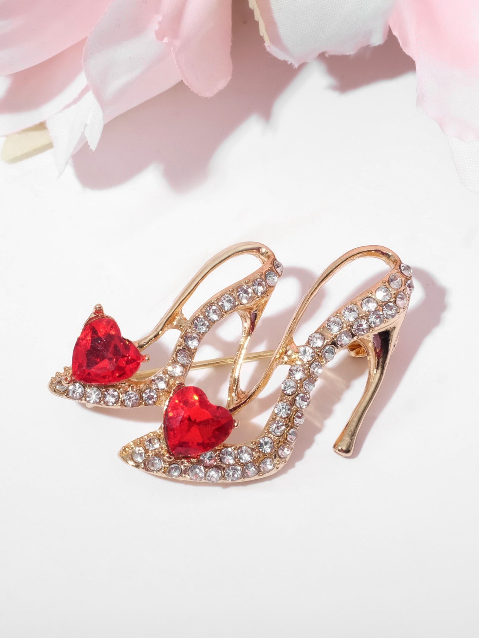 Брошь "Туфель пара", красная, белый в золоте, 4x3.5x1 см., QF, Китай