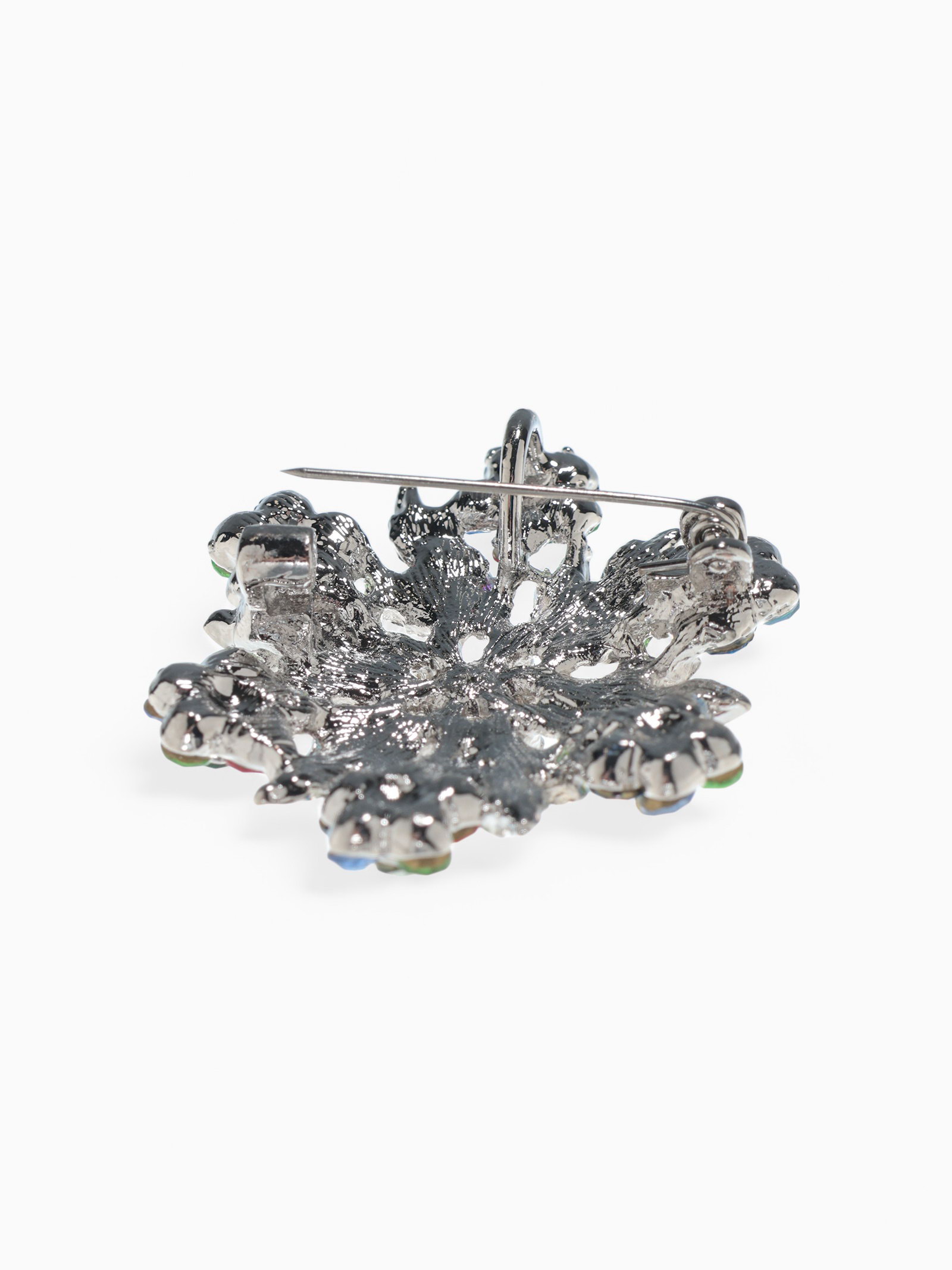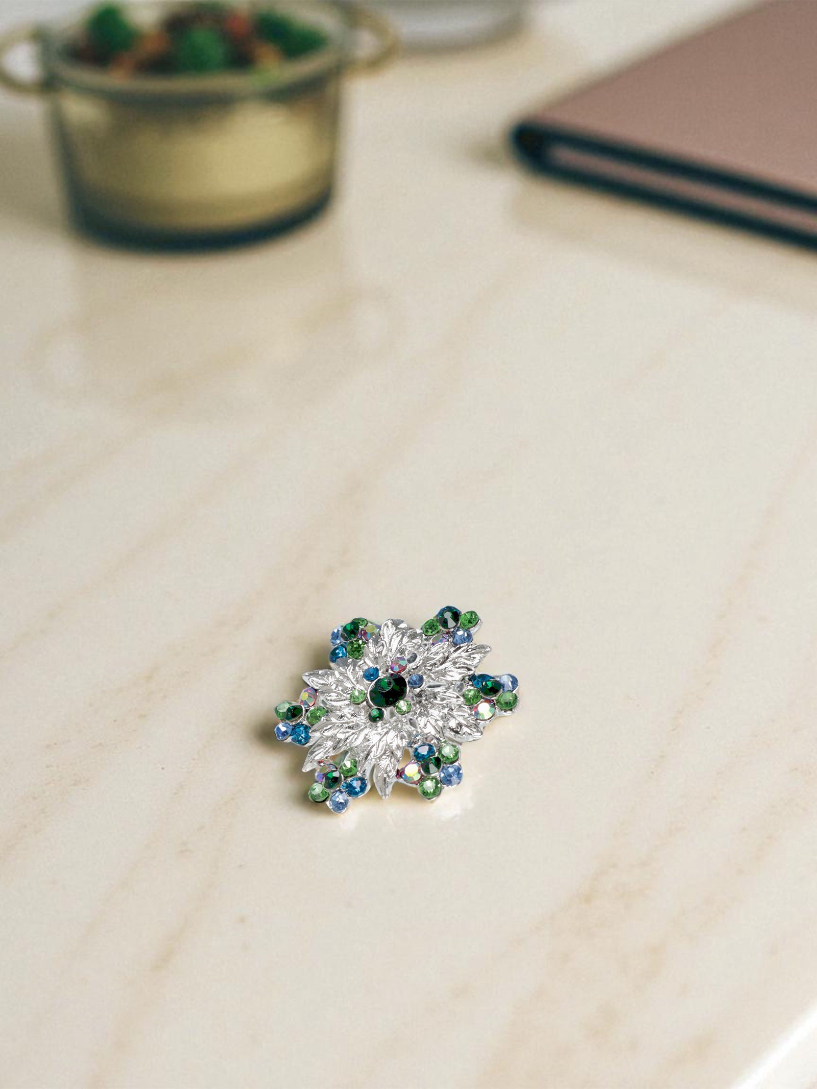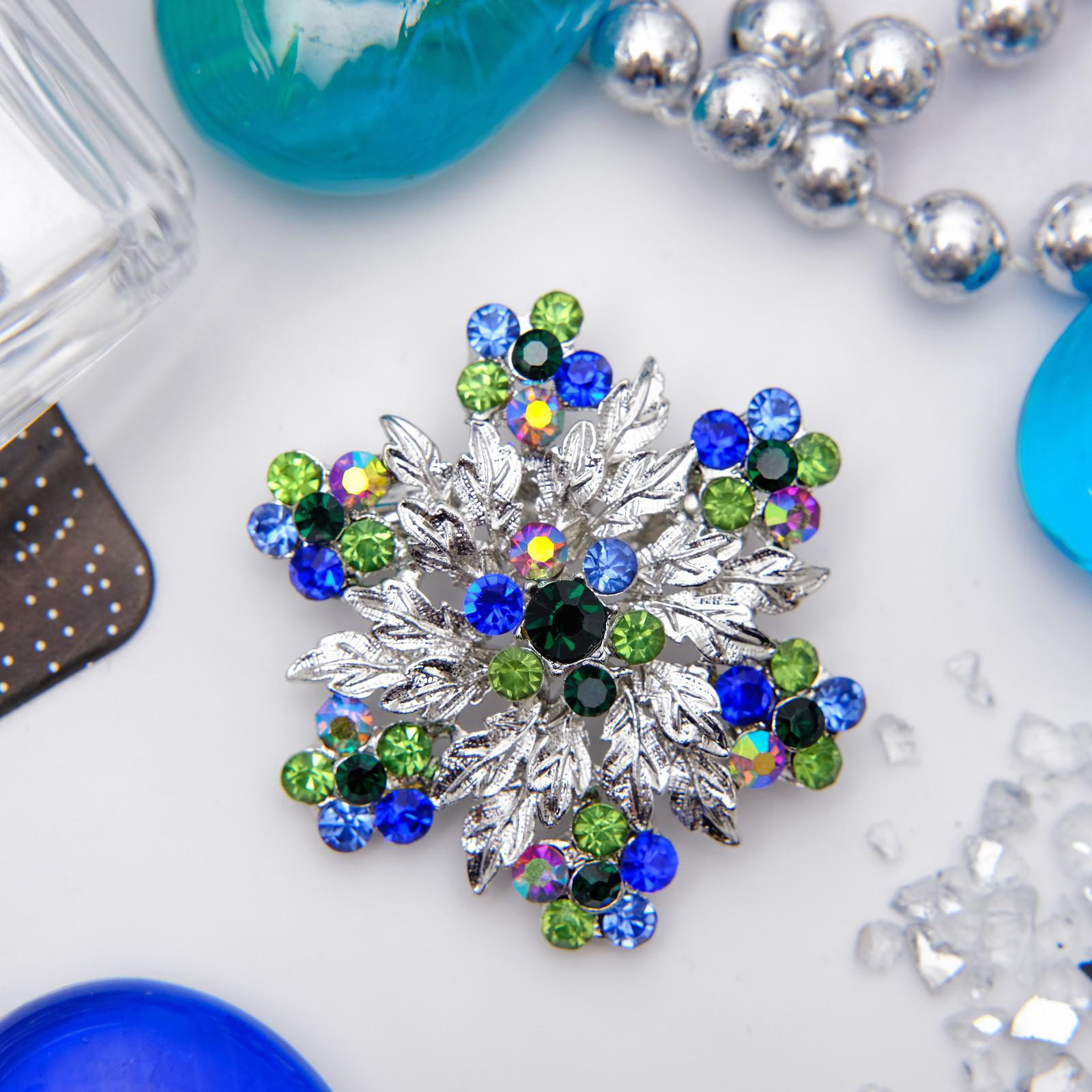 Брошь "Цветок" аралия, сине-зелёная в серебре, 4.5x4.5x1.5 см., QF, Китай